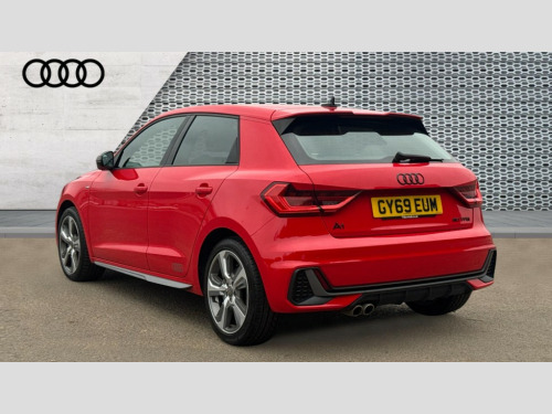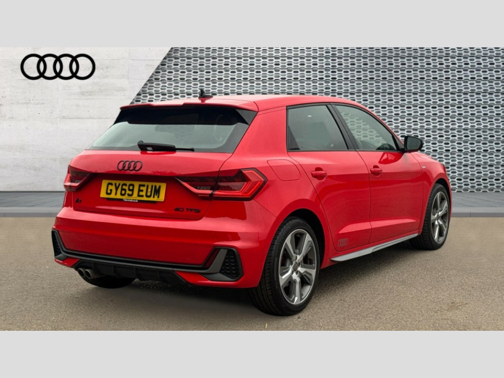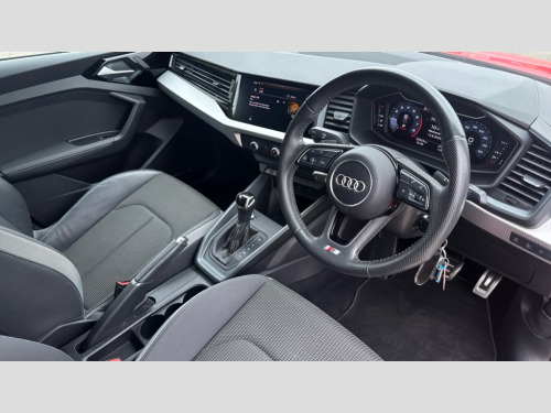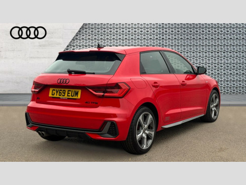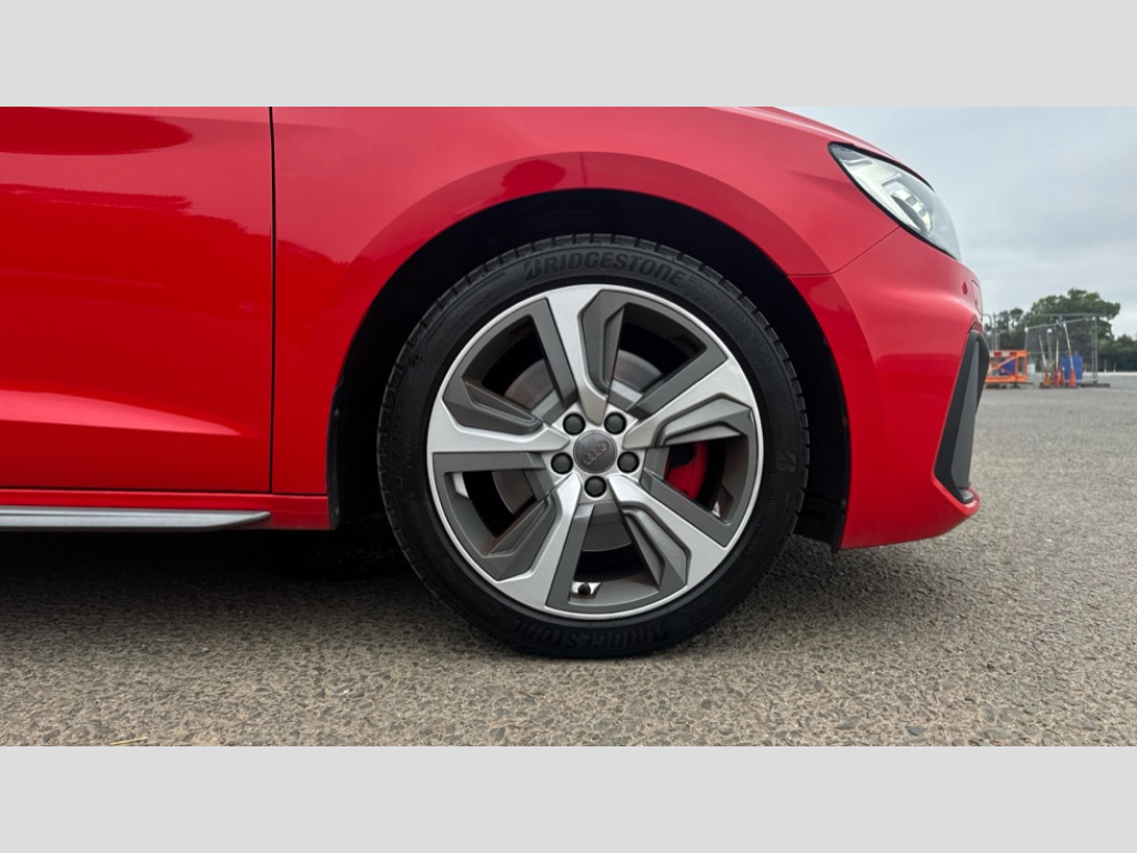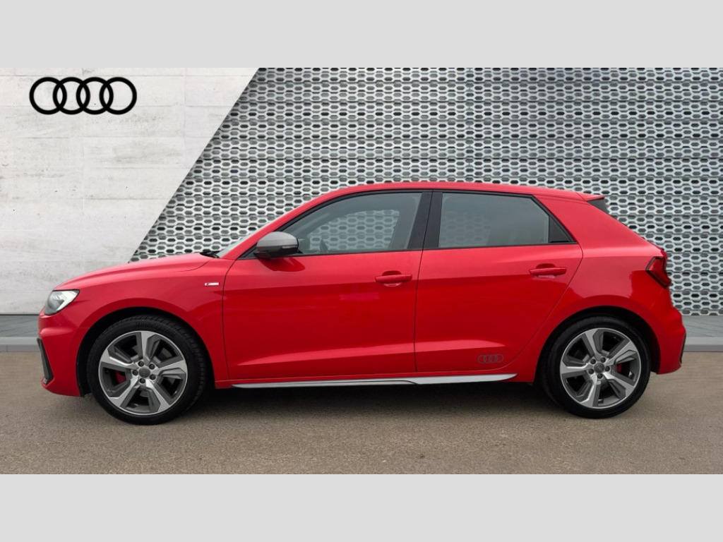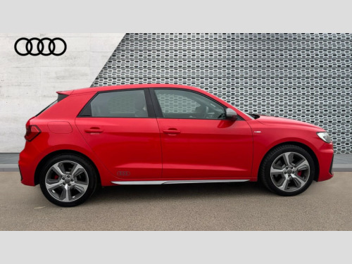 Audi A1 40 TFSI S Line Competition 5dr S Tronic 10.25" Digital instrument cluster display classis style instrument dials + speed,odometer,time,outside temperature,telephone menu + fuel level warning, Audi connect safety emergency and service including E-call, Audi drive select - power steering assistance + engine + gear shift 3 preset modes (auto, dynamic, efficiency and an Individual mode), Audi smartphone interface with connect compatible smartphone via USB directly MMI display + Nav,music, third party apps controlled via MMI controller, Automatic start/stop system, Bluetooth interface, Cruise control, Driver's information system, Electromechanical power steering, Lane departure warning system, Rear parking sensor, Service interval indicator, Speed limiter, Voice control system, Washer fluid level indicator, Sports suspension with adjustable dampers, 1 x SDXC card reader, 1 x USB type C and 1 USB type A charging points, DAB Digital radio, MMI radio plus with 8.8" colour MMI display screen and MMI touch, Audi rings logo foil in platinum grey, Auto dimming rear view mirror, Deletion of engine technology designation at rear, Door mirrors in platinum grey, Door sills with aluminium inlays and S Line logo, Electric front and rear windows, Electrically adjustable, heated, folding door mirrors with integrated LED side indicator, Front side air inlets in grained matt black and C frame in titanium black, Heat insulating glass windscreen and side windows, Heated rear windscreen, LED headlights with LED rear lights + dynamic rear indicators + headlight adjustment and high beam, turning light + LED daytime running lights, Radiator grille and rear diffuser in matt titanium black, Radiator protective grille frame in matt aluminium silver, Rain and light sensors, Rear fog lights, Rear wiper, S line badges on front wings, Side front spoiler lips in grained matt black, Visible tailpipes, 12V socket in centre console with two cup holders, 3 rear seats with headrests, 40:60 Split folding rear seat or folded fully, Black cloth headlining, Driver and passenger seat with manual height adjust with forward and backwards adjustment, Front and rear black floor mats with contrast stitching in fine silver, Front head restraints, Height and reach adjustable steering wheel, ISOFIX child seat mounting for front passenger and outer rear seats including top tether attachment point of outer rear seats, Leather gear knob with aluminium trim, Luggage compartment light with front and rear reading lights, Manually adjustable lumbar support in front seats, Stainless steel pedals, LED interior lighting pack - A1, Luggage compartment pack - A1, S line exterior styling pack - A1 Sportback, 3x3 point rear seatbelts, Audi pre-sense front with pedestrain and cyclist recognition, Brake assist function, Driver and front passenger airbag with front side and head airbags, Electronic Stability Control including ABS, EBD, ASR and EDL, Front and rear seatbelt reminder, Front passenger airbag deactivation switch, Hill hold assist, Red brake calipers, Seatbelt height adjustment for front seats, Seatbelt monitoring, Tyre pressure warning light, Warning triangle and first aid kit, Anti theft alarm, Anti theft wheel bolts and loose wheel warning, Immobiliser, Remote central locking with 2 foldaway keys, Aluminium trim for control switches, air vents and digital instrument cluster, Silver grey inlays polygon structure in diamond paint finish, Structured grey accent areas including air vents, door handle recesses and centre console in quartz paint finish