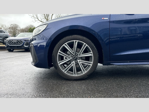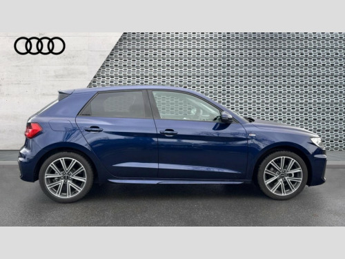 Audi A1 30 TFSI S Line 5dr S Tronic 10.25" Digital instrument cluster display classis style instrument dials + speed,odometer,time,outside temperature,telephone menu + fuel level warning, Advanced driver attention and drowsiness monitor, Audi connect emergency call and service, Audi drive select, Audi remote connect and control, Audi smartphone interface, Bluetooth interface, Camera based traffic sign recognition, Cruise control, Driver's information system, Electromechanical power steering, Lane departure warning system, Rear parking sensor, Service interval indicator, Speed limiter, Start stop system with recuperation, Voice control system, Washer fluid level indicator, Sports suspension, 2 x USB type C connection points, 6 loudspeakers, DAB Digital radio, MMI radio plus with 10.1" colour MMI display screen and MMI touch, Auto dimming rear view mirror, Body coloured door mirrors, Door sill trims with aluminium inlays and S line logo in front, Electric front and rear windows, Electrically adjustable, heated, folding door mirrors with integrated LED side indicator, Front side air inlets in grained matt black and C frame in anthracite black, Headlight cleaning system, Heat insulating glass windscreen and side windows, Heated rear windscreen, High level LED brake light, LED daytime running lights, LED headlights with range control LED rear lights + dynamic rear indicators, Light and rain sensors, Privacy glass, Radiator grille and rear diffuser in matt anthracite black, Radiator protective grille frame in matt aluminium silver, Rear fog lights, Rear side wing doors, Rear wiper, S line badges on front wings, Side front spoiler lips in grained matt black, 12V socket in centre console with two cup holders, 3 rear seats with headrests, 3 seat bench in 2nd row, 3 spoke leather multi-function plus steering wheel features S badging and grips in perforated leather with contrast stitching, 40:60 Split folding rear seat or fully collapsed, Black cloth headlining, Front and rear velour black floor mats with contrast stitching in fine silver, Front head restraints, Front passenger seat, Height and reach adjustable steering wheel, Interior lighting includes roof module, front and rear reading lights and right luggage compartment lighting, ISOFIX child seat mounting for front passenger and outer rear seats including top tether attachment point of outer rear seats, Leather gear knob with aluminium trim, Leather handbrake grip, Manual air conditioning, Manual height adjustable for driver and front passenger seat, Manually adjustable lumbar support in front seats, Stainless steel pedals, Ambient lighting package - A1, Luggage compartment pack - A1, S line exterior styling pack - A1 Sportback, 3x3 point rear seatbelts, Audi pre-sense front with pedestrain and cyclist recognition, Brake assist function, Driver and front passenger airbag with front side and head airbags, Electronic Stability Control including ABS, EBD, ASR and EDL, Front passenger airbag deactivation switch, Hill hold assist, Manual rear child locks, Seatbelt height adjustment for front seats, Seatbelt monitoring, Tyre pressure loss indicator, Warning triangle and first aid kit, Anti theft alarm, Anti theft wheel bolts, Immobiliser, Remote control key with safelock, Aluminium trim for control switches, air vents and digital instrument cluster, Black dashboard, Silver grey inlays polygon structure in diamond paint finish, Structured grey accent surfaces insert of air vents, interior door handle recesses and centre console in quartz paint finish