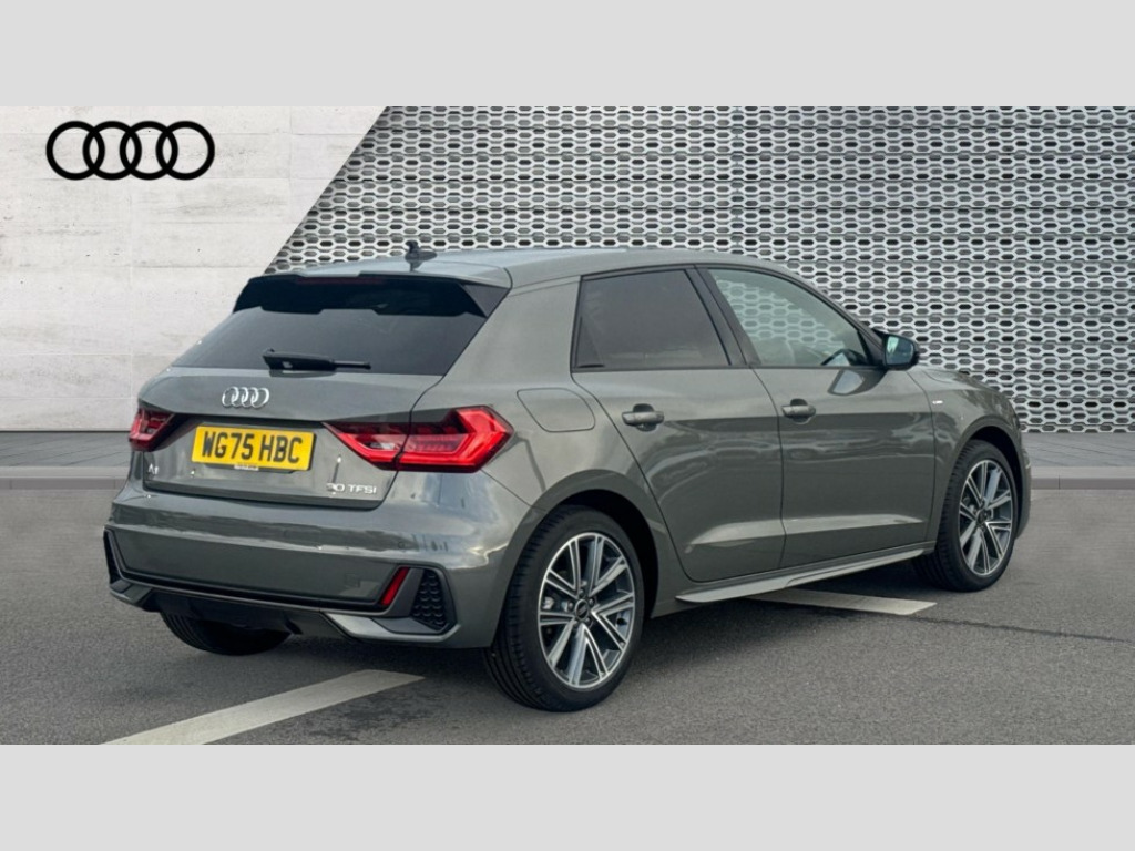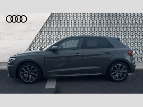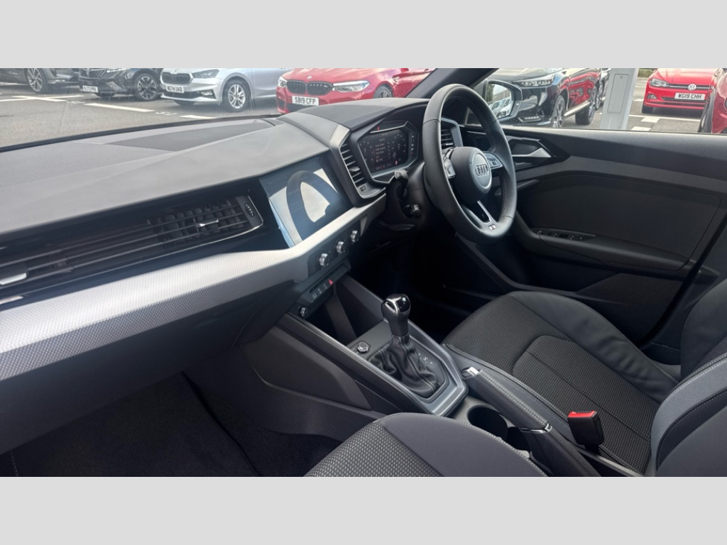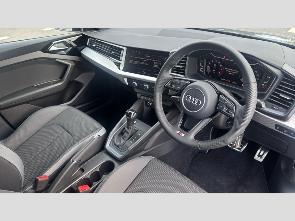 Audi A1 30 TFSI S Line 5dr S Tronic 10.25" Digital instrument cluster display classis style instrument dials + speed,odometer,time,outside temperature,telephone menu + fuel level warning, Advanced driver attention and drowsiness monitor, Audi connect emergency call and service, Audi drive select, Audi remote connect and control, Bluetooth interface, Camera based traffic sign recognition, Cruise control, Driver's information system, Electromechanical power steering, Lane departure warning system, Rear parking sensor, Service interval indicator, Smartphone interface, Speed limiter, Start stop system with recuperation, Voice control system, Washer fluid level indicator, Sports suspension, 2 x USB type C connection points, 6 loudspeakers, DAB Digital radio, MMI radio plus with 10.1" colour MMI display screen and MMI touch, Auto dimming rear view mirror, Body coloured door mirrors, Door sill trims with aluminium inlays and S line logo in front, Electric front and rear windows, Electrically adjustable, heated, folding door mirrors with integrated LED side indicator, Front side air inlets in grained matt black and C frame in anthracite black, Headlight cleaning system, Heat insulating glass windscreen and side windows, Heated rear windscreen, High level LED brake light, LED daytime running lights, LED headlights with range control LED rear lights + dynamic rear indicators, Light and rain sensors, Privacy glass, Radiator grille and rear diffuser in matt anthracite black, Radiator protective grille frame in matt aluminium silver, Rear fog lights, Rear side wing doors, Rear wiper, Side front spoiler lips in grained matt black, 12V socket in centre console with two cup holders, 3 rear seats with headrests, 3 seat bench in 2nd row, 3 spoke leather multi-function plus steering wheel features S badging and grips in perforated leather with contrast stitching, 40:60 Split folding rear seat or fully collapsed, Black carpets, Black cloth headlining, Front and rear velour black floor mats with contrast stitching in fine silver, Front head restraints, Front passenger seat, Height and reach adjustable steering wheel, Interior lighting includes roof module, front and rear reading lights and right luggage compartment lighting, ISOFIX child seat mounting for front passenger and outer rear seats including top tether attachment point of outer rear seats, Leather gear knob with aluminium trim, Leather handbrake grip, Manual air conditioning, Manual height adjustable for driver and front passenger seat, Manually adjustable lumbar support in front seats, Stainless steel pedals, Ambient lighting package - A1, Luggage compartment pack - A1, S line exterior styling pack - A1 Sportback, 3x3 point rear seatbelts, Audi pre-sense front with pedestrain and cyclist recognition, Brake assist function, Driver and front passenger airbag with front side and head airbags, Electronic Stability Control including ABS, EBD, ASR and EDL, Front passenger airbag deactivation switch, Hill hold assist, Manual rear child locks, Seatbelt height adjustment for front seats, Seatbelt monitoring, Tyre pressure loss indicator, Warning triangle and first aid kit, Anti theft alarm, Anti theft wheel bolts, Immobiliser, Remote control key with safelock, Aluminium trim for control switches, air vents and digital instrument cluster, Black dashboard, Silver grey inlays polygon structure in diamond paint finish, Structured grey accent surfaces insert of air vents, interior door handle recesses and centre console in quartz paint finish