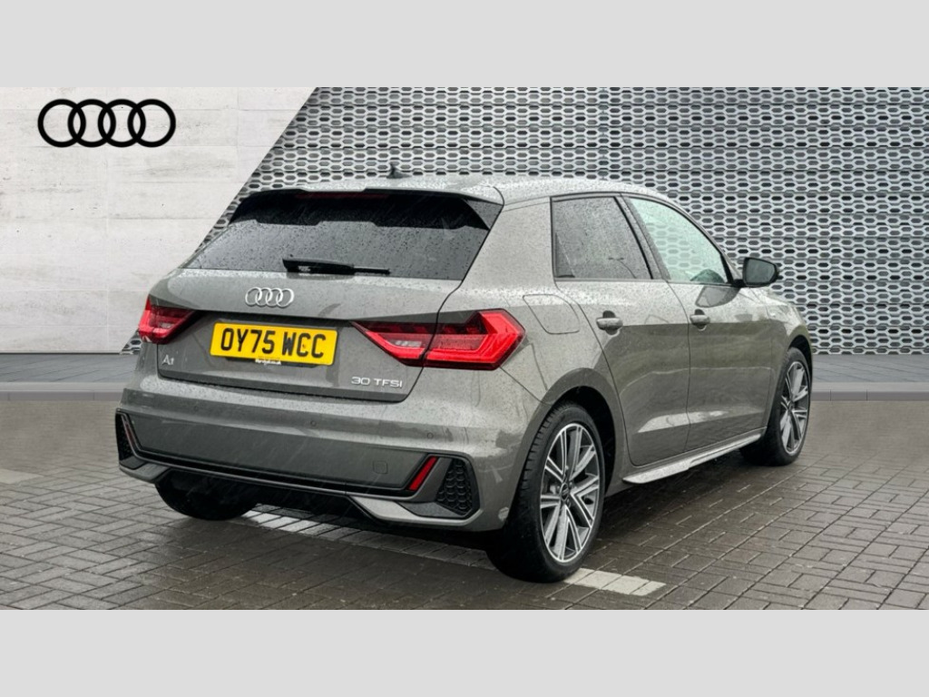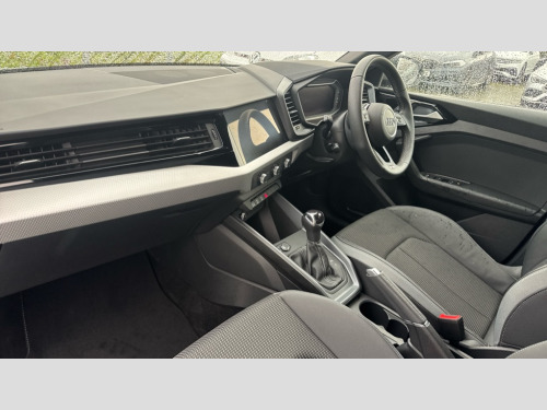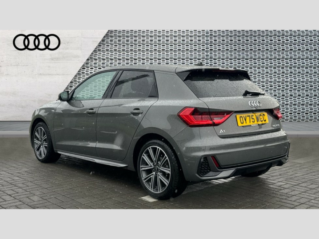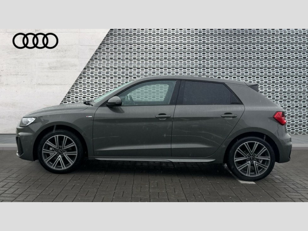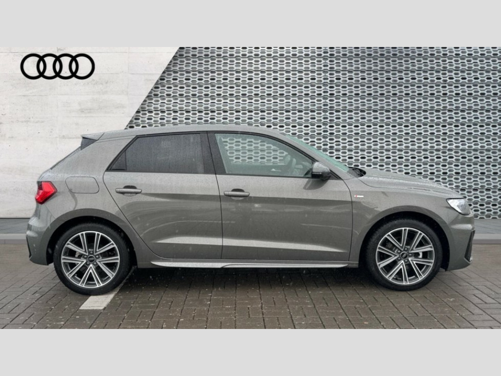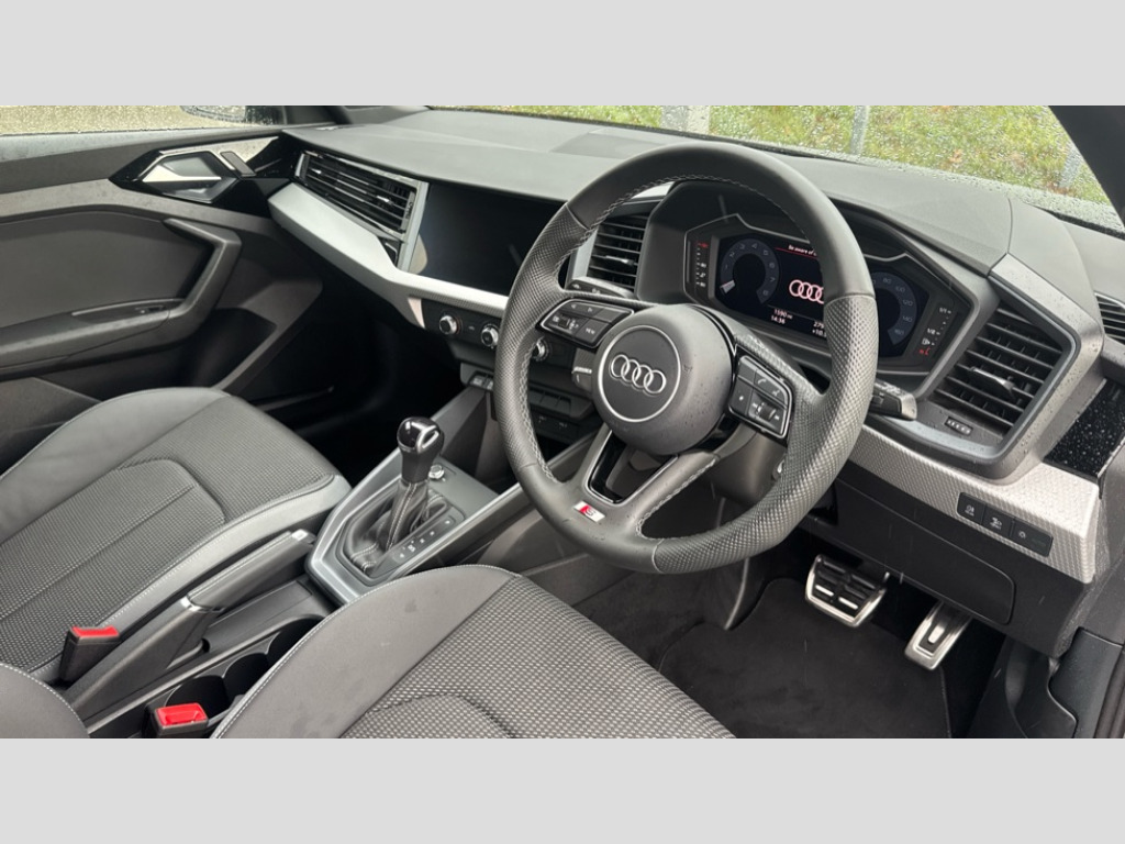 Audi A1 30 TFSI S Line 5dr S Tronic 10.25" Digital instrument cluster display classis style instrument dials + speed,odometer,time,outside temperature,telephone menu + fuel level warning, Advanced driver attention and drowsiness monitor, Audi connect emergency call and service, Audi drive select, Audi remote connect and control, Audi smartphone interface, Bluetooth interface, Camera based traffic sign recognition, Cruise control, Driver's information system, Electromechanical power steering, Lane departure warning system, Rear parking sensor, Service interval indicator, Speed limiter, Start stop system with recuperation, Voice control system, Washer fluid level indicator, Sports suspension, 2 x USB type C connection points, 6 loudspeakers, DAB Digital radio, MMI radio plus with 10.1" colour MMI display screen and MMI touch, Auto dimming rear view mirror, Body coloured door mirrors, Door sill trims with aluminium inlays and S line logo in front, Electric front and rear windows, Electrically adjustable, heated, folding door mirrors with integrated LED side indicator, Front side air inlets in grained matt black and C frame in anthracite black, Headlight cleaning system, Heat insulating glass windscreen and side windows, Heated rear windscreen, High level LED brake light, LED daytime running lights, LED headlights with range control LED rear lights + dynamic rear indicators, Light and rain sensors, Privacy glass, Radiator grille and rear diffuser in matt anthracite black, Radiator protective grille frame in matt aluminium silver, Rear fog lights, Rear side wing doors, Rear wiper, S line badges on front wings, Side front spoiler lips in grained matt black, 12V socket in centre console with two cup holders, 3 rear seats with headrests, 3 seat bench in 2nd row, 3 spoke leather multi-function plus steering wheel features S badging and grips in perforated leather with contrast stitching, 40:60 Split folding rear seat or fully collapsed, Black cloth headlining, Front and rear velour black floor mats with contrast stitching in fine silver, Front head restraints, Front passenger seat, Height and reach adjustable steering wheel, Interior lighting includes roof module, front and rear reading lights and right luggage compartment lighting, ISOFIX child seat mounting for front passenger and outer rear seats including top tether attachment point of outer rear seats, Leather gear knob with aluminium trim, Leather handbrake grip, Manual air conditioning, Manual height adjustable for driver and front passenger seat, Manually adjustable lumbar support in front seats, Stainless steel pedals, Ambient lighting package - A1, Luggage compartment pack - A1, S line exterior styling pack - A1 Sportback, 3x3 point rear seatbelts, Audi pre-sense front with pedestrain and cyclist recognition, Brake assist function, Driver and front passenger airbag with front side and head airbags, Electronic Stability Control including ABS, EBD, ASR and EDL, Front passenger airbag deactivation switch, Hill hold assist, Manual rear child locks, Seatbelt height adjustment for front seats, Seatbelt monitoring, Tyre pressure loss indicator, Warning triangle and first aid kit, Anti theft alarm, Anti theft wheel bolts, Immobiliser, Remote control key with safelock, Aluminium trim for control switches, air vents and digital instrument cluster, Black dashboard, Silver grey inlays polygon structure in diamond paint finish, Structured grey accent surfaces insert of air vents, interior door handle recesses and centre console in quartz paint finish