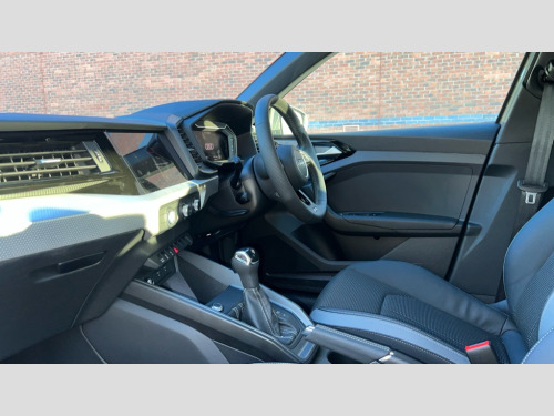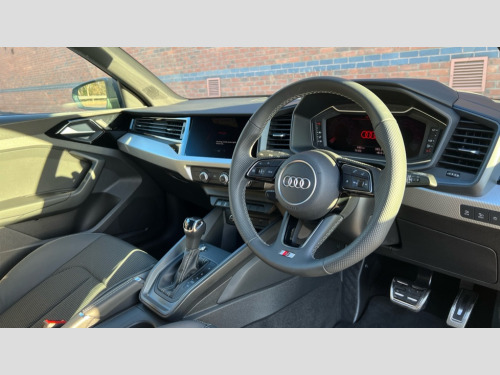 Audi A1 30 TFSI S Line 5dr S Tronic 10.25" Digital instrument cluster display classis style instrument dials + speed,odometer,time,outside temperature,telephone menu + fuel level warning, Advanced driver attention and drowsiness monitor, Audi connect emergency call and service, Audi drive select, Audi remote connect and control, Audi smartphone interface, Bluetooth interface, Camera based traffic sign recognition, Cruise control, Driver's information system, Electromechanical power steering, Lane departure warning system, Rear parking sensor, Service interval indicator, Speed limiter, Start stop system with recuperation, Voice control system, Washer fluid level indicator, Sports suspension, 2 x USB type C connection points, 6 loudspeakers, DAB Digital radio, MMI radio plus with 10.1" colour MMI display screen and MMI touch, Auto dimming rear view mirror, Body coloured door mirrors, Door sill trims with aluminium inlays and S line logo in front, Electric front and rear windows, Electrically adjustable, heated, folding door mirrors with integrated LED side indicator, Front side air inlets in grained matt black and C frame in anthracite black, Headlight cleaning system, Heat insulating glass windscreen and side windows, Heated rear windscreen, High level LED brake light, LED daytime running lights, LED headlights with range control LED rear lights + dynamic rear indicators, Light and rain sensors, Privacy glass, Radiator grille and rear diffuser in matt anthracite black, Radiator protective grille frame in matt aluminium silver, Rear fog lights, Rear side wing doors, Rear wiper, S line badges on front wings, Side front spoiler lips in grained matt black, 12V socket in centre console with two cup holders, 3 rear seats with headrests, 3 seat bench in 2nd row, 3 spoke leather multi-function plus steering wheel features S badging and grips in perforated leather with contrast stitching, 40:60 Split folding rear seat or fully collapsed, Black cloth headlining, Front and rear velour black floor mats with contrast stitching in fine silver, Front head restraints, Front passenger seat, Height and reach adjustable steering wheel, Interior lighting includes roof module, front and rear reading lights and right luggage compartment lighting, ISOFIX child seat mounting for front passenger and outer rear seats including top tether attachment point of outer rear seats, Leather gear knob with aluminium trim, Leather handbrake grip, Manual air conditioning, Manual height adjustable for driver and front passenger seat, Manually adjustable lumbar support in front seats, Stainless steel pedals, Ambient lighting package - A1, Luggage compartment pack - A1, S line exterior styling pack - A1 Sportback, 3x3 point rear seatbelts, Audi pre-sense front with pedestrain and cyclist recognition, Brake assist function, Driver and front passenger airbag with front side and head airbags, Electronic Stability Control including ABS, EBD, ASR and EDL, Front passenger airbag deactivation switch, Hill hold assist, Manual rear child locks, Seatbelt height adjustment for front seats, Seatbelt monitoring, Tyre pressure loss indicator, Warning triangle and first aid kit, Anti theft alarm, Anti theft wheel bolts, Immobiliser, Remote control key with safelock, Aluminium trim for control switches, air vents and digital instrument cluster, Black dashboard, Silver grey inlays polygon structure in diamond paint finish, Structured grey accent surfaces insert of air vents, interior door handle recesses and centre console in quartz paint finish