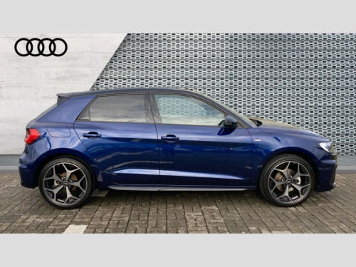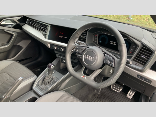 Audi A1 35 TFSI Black Edition 5dr S Tronic 10.25" Digital instrument cluster display classis style instrument dials + speed,odometer,time,outside temperature,telephone menu + fuel level warning, Advanced driver attention and drowsiness monitor, Audi connect emergency call and service, Audi drive select, Audi remote connect and control, Audi smartphone interface, Bluetooth interface, Camera based traffic sign recognition, Cruise control, Driver's information system, Electromechanical power steering, Lane departure warning system, Rear parking sensor, Service interval indicator, Speed limiter, Start stop system with recuperation, Voice control system, Washer fluid level indicator, Sports suspension, 2 x USB type C connection points, 6 loudspeakers, DAB Digital radio, MMI radio plus with 10.1" colour MMI display screen and MMI touch, Auto dimming rear view mirror, Black side skirts, Body coloured bumpers, Door sill trims with aluminium inlays and logo, Electric front and rear windows, Electrically adjustable, heated, folding door mirrors with integrated LED side indicator, Front side air inlets in grained matt black and C frame in anthracite black, Front wing badges, Headlight cleaning system, Heat insulating glass windscreen and side windows, Heated rear windscreen, High level LED brake light, LED daytime running lights, LED headlights with range control LED rear lights + dynamic rear indicators, Light and rain sensors, Privacy glass, Radiator grille and rear diffuser in matt anthracite black, Radiator protective grille frame in matt aluminium silver, Rear fog lights, Rear side wing doors, Rear wiper, Side front spoiler lips in grained matt black, 12V socket in centre console with two cup holders, 3 rear seats with headrests, 3 seat bench in 2nd row, 3 spoke flat bottomed multi-function plus leather steering wheel with S badging, grips in preforated leather, contrast stitching and paddle shift, 40:60 Split folding rear seat or fully collapsed, Black cloth headlining, Front and rear velour black floor mats with contrast stitching in fine silver, Front head restraints, Front passenger seat, Height and reach adjustable steering wheel, Interior lighting includes roof module, front and rear reading lights and right luggage compartment lighting, ISOFIX child seat mounting for front passenger and outer rear seats including top tether attachment point of outer rear seats, Leather gear knob with aluminium trim, Leather handbrake grip, Manual air conditioning, Manual height adjustable for driver and front passenger seat, Manually adjustable lumbar support in front seats, Stainless steel pedals, Ambient lighting package - A1, Black styling pack - A1 Sportback Black Edition, Luggage compartment pack - A1, 3x3 point rear seatbelts, Audi pre-sense front with pedestrain and cyclist recognition, Brake assist function, Driver and front passenger airbag with front side and head airbags, Electronic Stability Control including ABS, EBD, ASR and EDL, Front passenger airbag deactivation switch, Hill hold assist, Manual rear child locks, Seatbelt height adjustment for front seats, Seatbelt monitoring, Tyre pressure loss indicator, Warning triangle and first aid kit, Anti theft alarm, Anti theft wheel bolts, Immobiliser, Remote control key with safelock, Aluminium trim for control switches, air vents and digital instrument cluster, Black dashboard, Silver grey inlays polygon structure in diamond paint finish, Structured grey accent surfaces insert of air vents, interior door handle recesses and centre console in quartz paint finish