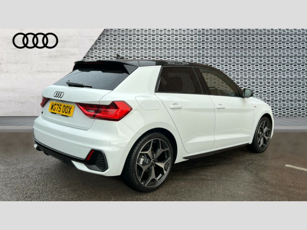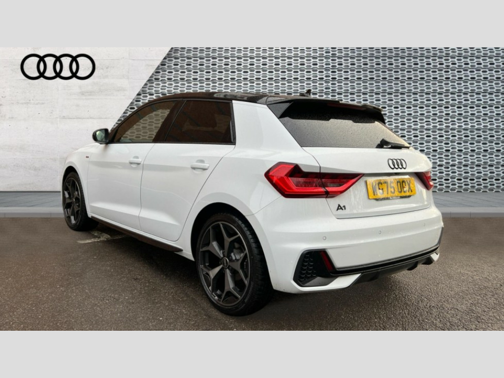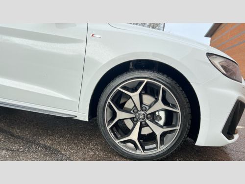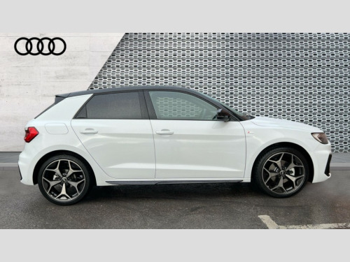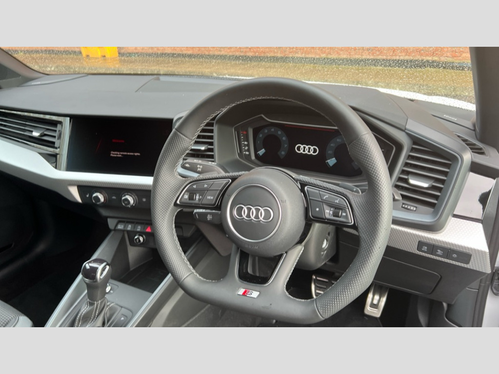 Audi A1 35 TFSI Black Edition 5dr S Tronic 10.25" Digital instrument cluster display classis style instrument dials + speed,odometer,time,outside temperature,telephone menu + fuel level warning, Advanced driver attention and drowsiness monitor, Audi connect emergency call and service, Audi drive select, Audi remote connect and control, Bluetooth interface, Camera based traffic sign recognition, Cruise control, Driver's information system, Electromechanical power steering, Lane departure warning system, Rear parking sensor, Service interval indicator, Smartphone interface, Speed limiter, Start stop system with recuperation, Voice control system, Washer fluid level indicator, Sports suspension, 2 x USB type C connection points, 6 loudspeakers, DAB Digital radio, MMI radio plus with 10.1" colour MMI display screen and MMI touch, Auto dimming rear view mirror, Black door mirror housings, Black side skirts, Body coloured bumpers, Door sill trims with aluminium inlays and logo, Electric front and rear windows, Electrically adjustable, heated, folding door mirrors with integrated LED side indicator, Front side air inlets in grained matt black and C frame in anthracite black, Front wing badges, Headlight cleaning system, Heat insulating glass windscreen and side windows, Heated rear windscreen, High level LED brake light, LED daytime running lights, LED headlights with range control LED rear lights + dynamic rear indicators, Light and rain sensors, Privacy glass, Radiator grille and rear diffuser in matt anthracite black, Radiator protective grille frame in matt aluminium silver, Rear fog lights, Rear side wing doors, Rear wiper, Side front spoiler lips in grained matt black, 12V socket in centre console with two cup holders, 3 rear seats with headrests, 3 seat bench in 2nd row, 3 spoke flat bottomed multi-function plus leather steering wheel with S badging, grips in preforated leather, contrast stitching and paddle shift, 40:60 Split folding rear seat or fully collapsed, Black carpets, Black cloth headlining, Front and rear velour black floor mats with contrast stitching in fine silver, Front head restraints, Front passenger seat, Height and reach adjustable steering wheel, Interior lighting includes roof module, front and rear reading lights and right luggage compartment lighting, ISOFIX child seat mounting for front passenger and outer rear seats including top tether attachment point of outer rear seats, Leather gear knob with aluminium trim, Leather handbrake grip, Manual air conditioning, Manual height adjustable for driver and front passenger seat, Manually adjustable lumbar support in front seats, Stainless steel pedals, Ambient lighting package - A1, Black styling pack - A1 Sportback Black Edition, Luggage compartment pack - A1, 3x3 point rear seatbelts, Audi pre-sense front with pedestrain and cyclist recognition, Brake assist function, Driver and front passenger airbag with front side and head airbags, Electronic Stability Control including ABS, EBD, ASR and EDL, Front passenger airbag deactivation switch, Hill hold assist, Manual rear child locks, Seatbelt height adjustment for front seats, Seatbelt monitoring, Tyre pressure loss indicator, Warning triangle and first aid kit, Anti theft alarm, Anti theft wheel bolts, Immobiliser, Remote control key with safelock, Aluminium trim for control switches, air vents and digital instrument cluster, Black dashboard, Silver grey inlays polygon structure in diamond paint finish, Structured grey accent surfaces insert of air vents, interior door handle recesses and centre console in quartz paint finish