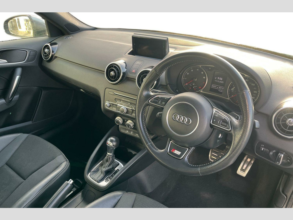 This Audi A1 TFSI S line offers an impressive blend of performance and efficiency. Its 1.4 litre petrol engine delivers a brisk 0-60mph acceleration in just 7.6 seconds, a figure that highlights its responsiveness compared to many other vehicles in its class. Furthermore, it achieves an excellent fuel economy of 59 miles per gallon, demonstrating its cost effectiveness for everyday driving. The vehicle also benefits from low CO2 emissions, making it an environmentally conscious choice. 17in Alloy Wheels - 10-Spoke Design High Gloss, AMI - Audi Music Interface, AUX-IN Socket, Adaptive Brake Lights, Air Conditioning, Air Vent Sleeves - High Gloss Black, Aluminium Trim for Control Switches-Glove Compartment-Door Handles-Door Sills, Anti Theft Locking Wheel Bolts, Audi Drive Select, Audi Hill Hold Assist, Body Coloured Door Mirrors, Centre Console with Two Cup Holders and 12V Socket, Cloth Headlining in Black, Concert Radio, Connectivity Package, DAB Digital Radio, Display Screen - 6.5in High Gloss Black, Door Mirrors - Electrically Adjustable and Heated, Door Sill Trims - Aluminium with S Line Logo, Driver - Front Passenger - Front Side and Head Airbag System, Driver and Front Passenger Seats with Manual Height-Forwards and Backwards Adjustment, Drivers Information System - DIS, ESC - Electronic Stabilisation Control, Electric Windows - Front and Rear, Electromechanical Power Steering, First Aid Kit and Warning Triangle, Front Floor Mats, Front Fog Lights, Front Passenger Airbag Deactivation Switch, Glovebox - Illuminated, Handbrake Grip - Leather, Head Restraints - Rear, Heat Insulating Glass - Windscreen and Side Windows, Heated Rear Windscreen, ISOFIX Child Seat Mounting, LED Interior Light Package, LED Rear Lights, Manually Adjustable Lumbar Support in Front Seats, Mobile Telephone Preparation - Bluetooth Interface, Non-Smoking Package, Polished Tailpipes, Rear Fog Lights, Remote Central Locking with 2 Fold Away Keys, S Line Badges on the Front Wings, S Line Design Body Styling, S Line Roof Spoiler, S Line Sports Suspension, SD Card Reader, SD Card Reader x2, Seat Belt Height Adjustment for Front Seats, Seat Belt Monitoring, Secondary Collision Brake Assist, Split Folding Rear Seat, Sports Gear Knob with Aluminium Trim, Steering Wheel - 3-Spoke Leather - Multi-function - Sports - Shift Paddles, Steering Wheel - Height and Reach Adjustable, Thatcham Category 1 Alarm and Immobiliser, Tool Kit and Car Jack, Tyre Pressure Monitoring System, Tyre Repair Kit, Washer Fluid Level Indicator, Xenon Plus Headlights
