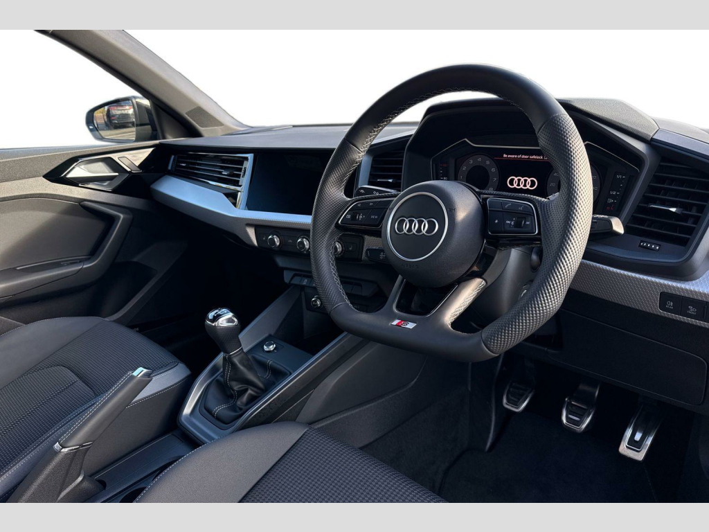 Vehicle price shown includes a deposit contribution of £800 when purchased on finance by 05/01/2026. Solutions Personal Contract Plan. 8.9% APR Representative. Audi Financial Services. Terms and Conditions Apply. 18in Alloy Wheels - 5-Y-Spoke Design - Phantom Black High Gloss, Technology Pack, 1 x SDXC Card Reader, 10.25in Digital Instrument Cluster, 18in Alloy Wheels - 7.5J 7-Spoke Rotor Design - Gloss Anthracite Black - Diamond Turned, 2 USB-C Connection Points, 3-Spoke Leather Multi-Function Plus Steering Wheel with S Badging - Grips in Perforated Leather and Contrast Stitching, 6 Passive Loud Speakers, Accent Areas in Structured Grey - Quartz Paint Finish, Aluminium Trim for Control Switches - Air Vents and Digital Instrument Cluster, Anti-Theft Alarm, Anti-Theft Wheel Bolts and Wheel Loosening Warning, Audi Connect Safety and Service - e-call, Audi Pre-Sense Front with Pedestrian and Cyclist Recognition, Audi Smartphone Interface, Auto-Dimming Rear-View Mirror, Black Styling Package, Bluetooth Interface, Centre Console with Two Cup Holders and 12V Socket, Cloth Headlining in Black, Contrast Roof - Mythos Black - Metallic, Cruise Control, DAB Digital Radio, Door Mirrors - Folding - Electrically Adjustable and Heated with Integrated LED Side Indicators, Door Sill Trims with Aluminium Inlays and S Logo, Driver - Front Passenger - Front Side and Head Airbags, ESC - Electronic Stabilisation Control inc ABS - EBD - ASR - EDL, Electric Windows - Front and Rear, Electromechanical Power Steering, Exterior Mirrors and Side Skirts in Black, First Aid Kit and Warning Triangle, Front Passenger Airbag Deactivation Switch, Front Sports Seats, Front and Rear Floor Mats in Black with Contrast Stitching in Fine Silver, Gear Knob in Leather with Aluminium Trim, Heat Insulating Glass - Windscreen and Side Windows, Heated Rear Windscreen, Hill Hold Assist, ISOFIX Child Seat Mounting for Front Passenger and Rear Outer Seats, Inlays in Polygon Structure - Silver Grey with Diamond Paint, LED Headlights with LED Rear Lights and Dynamic Rear Indicators, LED Interior Light Package, Lane Departure Warning, Leatherette Handbrake Grip, Light and Rain Sensor, Luggage Compartment Package, MMI Radio Plus with 8.8 MMI Colour Display Screen and MMI Touch, Manual Air Conditioning, Manually Adjustable Lumbar Support in Front Seats, Pedals in Stainless Steel, Privacy Glass, Rear Fog Lights, Rear Parking Sensors, Remote Central Locking with 2 Fold Away Keys, S Line Badges on Front Wings, Seat Belt Height Adjustment for Front Seats, Seat Belt Monitoring, Speed Limiter, Split Folding Rear Seat Bench - 60-40 or Fully, Sport Suspension, Tool Kit, Tyre Pressure Warning Light, Tyre Repair Kit, Voice Control, Washer Fluid Level Indicator