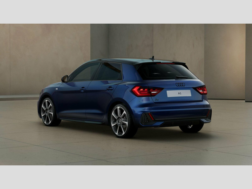 This Brand New Audi A1 Sportback Black Edition brings a bold and modern look to the compact hatchback world. Finished in the stunning metallic Navarra Blue with a contrasting black roof, this car stands out with its sharp lines and sophisticated colour palette. As a Black Edition model, it swaps traditional chrome for sleek black badging and trim, giving it a much more aggressive and sporty feel on the road. The exterior is perfectly finished with 18-inch 7-Spoke Rotor Design alloy wheels that fill the arches beautifully.