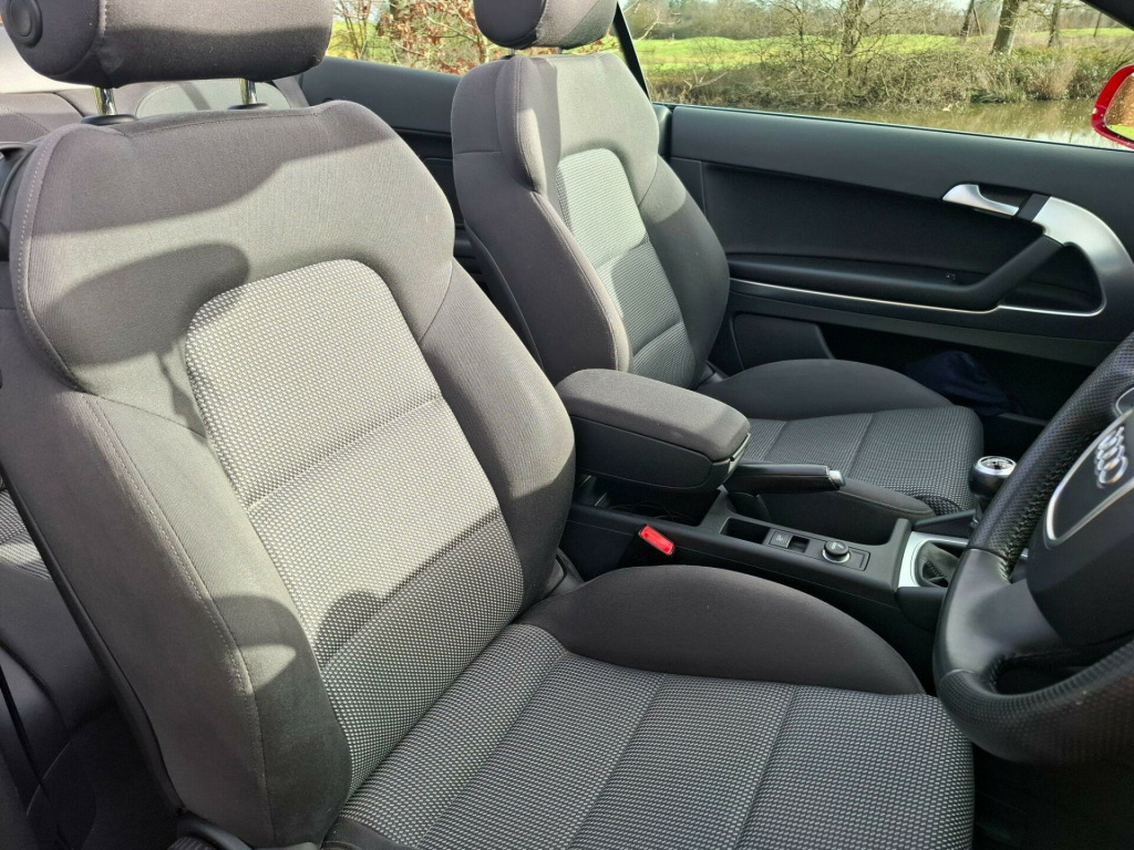 I HAVE NEVER SEEN A NICER ONE... IMMACULATE !! This 2011 Audi A3 Cabriolet TFSI Sport Is an absolute credit to its previous lady owner i can genuinely say i have never seen a nicer one. Also the car benefits from full service history and being the 1.2 tfsi is chain driven so no pesky cam belt to worry about. It boasts exceptionally low mileage for its age, having covered just 41,900 miles, and comes with a full service history for your peace of mind. This stylish convertible features a 1.2 litre petrol engine and is presented in the desirable Sport trim. You can drive away with confidence knowing it will be provided with 12 months MOT.This Audi A3 Cabriolet offers excellent running costs, achieving an impressive 50 miles per gallon, which is better than many similar vehicles. Its low CO2 emissions and low insurance group also contribute to its affordability. Furthermore, you'll appreciate the surprisingly large boot space, making it a practical choice for everyday use as well as weekend getaways. All of our cars are FULLY HPI CHECKED AND CLEAR AND GO THROUGH OUR COMPREHENSIVE 130 POINT PRE DELIVERY INSPECTION FOR YOUR PEACE OF MIND. Affordable finance options are available and we are currently paying £500 over autotrader valuations on all part exchanges (subject to condition and history). If you have any questions or you would like to book a test drive please call Dan or Sarah on 01622 890933 and we will be happy to help you. in 5 arm kinetic design alloy wheels, 17in 5spoke star design alloy wheels, 3spoke leather sports steering wheel, aluminium door handle strips, aluminium roll bars, aluminium shoulder line trim, black headlining, concert single cd player with mp3 facility & aux in, deletion of model & engine designation at rear, medial aluminium inlay, non smoking pack, silver headlining