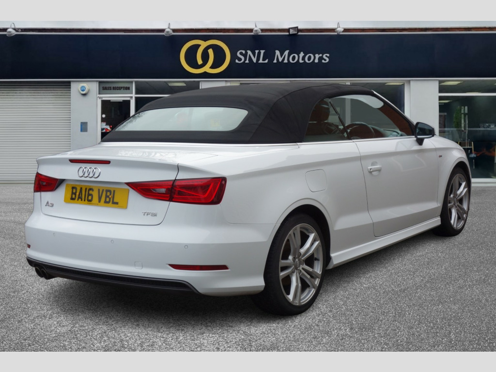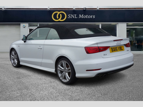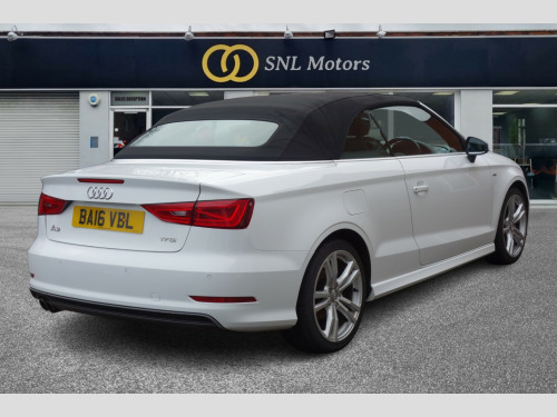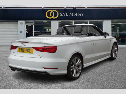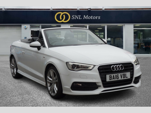 A stunning example of Audi A3 Cabriolet TFSI S Line. This stylish convertible features a 1.4 litre petrol engine and meets Euro 6 emissions standards. Inside, youll find dual zone electronic climate control for personalised comfort, and a Bluetooth interface for seamless mobile phone connectivity. Navigation is made easy with full European map data and 7 digit postcode recognition, while automatic headlights ensure optimal visibility. It comes with a service history. , The Audi A3 Cabriolet TFSI S line stands out with its impressive fuel economy, achieving a remarkable 55 miles per gallon, which is better than many similar vehicles. It also boasts low CO2 emissions, making it a more environmentally conscious choice. Furthermore, youll appreciate the generous boot space, offering practicality for your journeys. , All vehicles are thoroughly checked before sale and sold with a fresh 12 months MOT and service. 3 months comprehensive warranty and 12 months AA breakdown cover is included as standard. Extended warranty and Finance packages available. Part exchange welcome. Please contact SNL Motors for further information and to arrange a viewing.