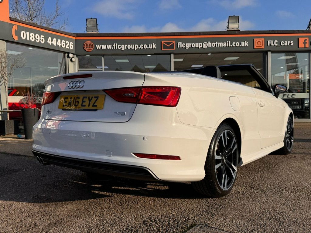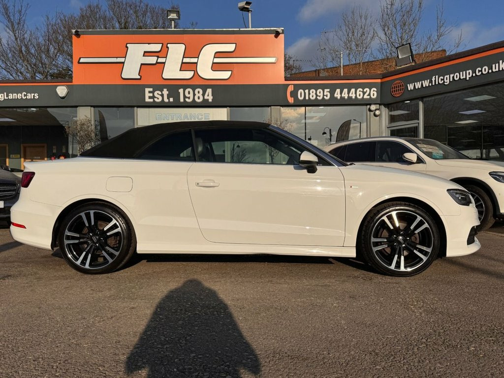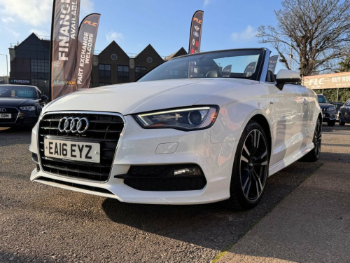FLC is proud to present this Audi A3 Cabriolet S Line, a stylish convertible that blends premium design with everyday usability. Finished in Ibis White and sitting on 18" 5-Spoke Alloy Wheels in Gloss Black & Diamond Cut, this A3 Cabriolet delivers presence with its sleek lines and open-top appeal. This example is in excellent overall condition, supported by great service history - recently carried out at 58,172 miles, a valid MOT until August 2026 with no advisories and showing only minor age-related blemishes. Inside, the interior reflects Audi's commitment to quality and technology. Featuring Sat-Nav, Media Connections, Dual Climate Control, Rear Parking Aid, Flat Bottom Steering Wheel and Auto Headlights, it offers a well-equipped, modern cabin that combines comfort with convenience. From supportive seating to thoughtful touches throughout, every detail enhances the driving experience. All part exchanges considered – contact FLC today to arrange a viewing. Biathlon Cloth-Pearl Nappa Leather - Bla, Headlights - Adaptive with Xenon Plus, Ibis White, Audi Sound System, 18in Alloy Wheels - 5-Arm Structured Des, Satellite Navigation System - SD Card Ba, USB Connection, 2 x SDXC Card Readers, Display Screen Colour - 5.8in, Xenon Plus Headlights, Steering Wheel - Gear Shift Paddles, Front Sports Seats, MMI Control Panel, 12V Power Socket - Centre Console, AMI - Audi Music Interface, Headlining - Black, 12V Power Socket - Luggage Compartment, 12V Power Socket - Rear Centre Console, Bumpers - S line Front, 50 Station Memory with Dynamic Station L, 7-Digit Postcode Recognition, ABS - Anti-Lock Braking System, ASR - Anti Slip Regulation, Acoustic Hood -