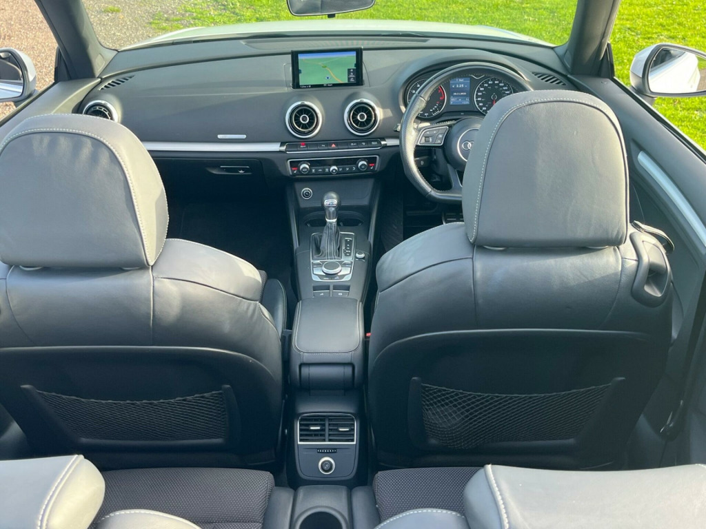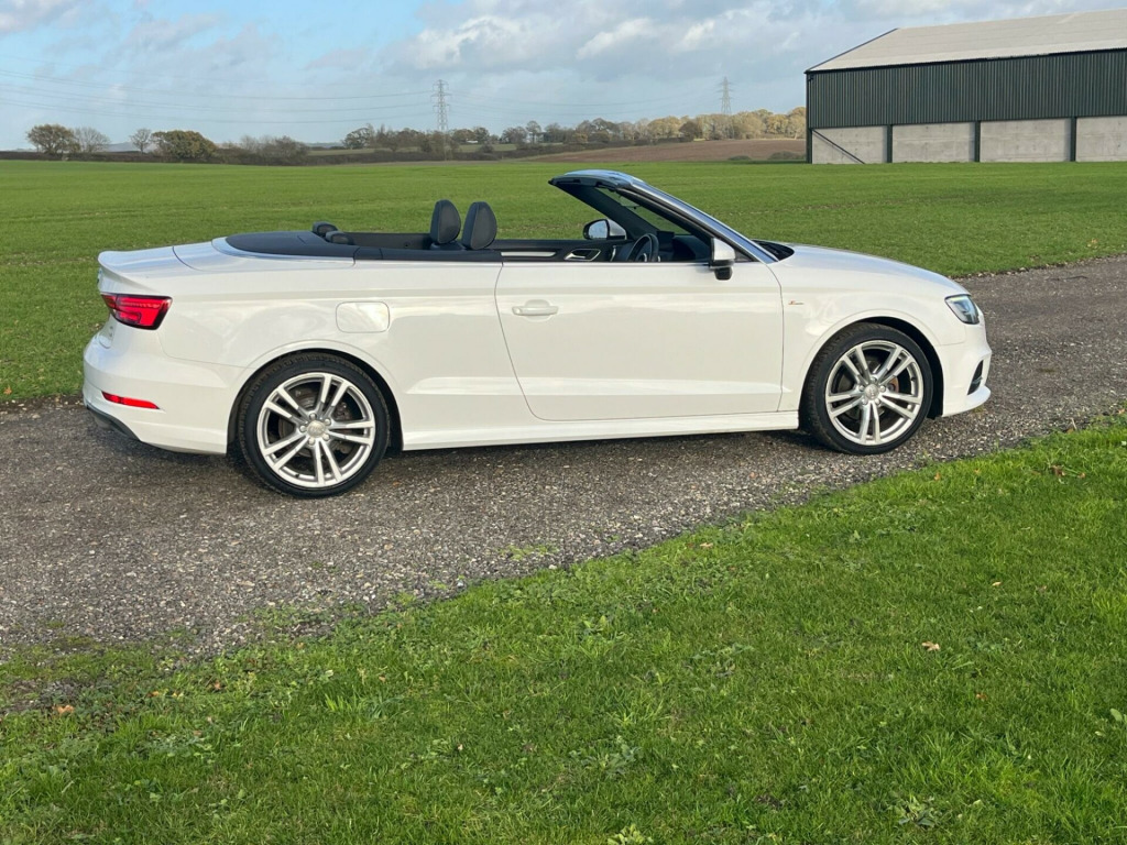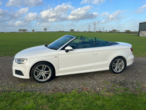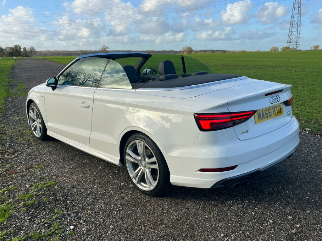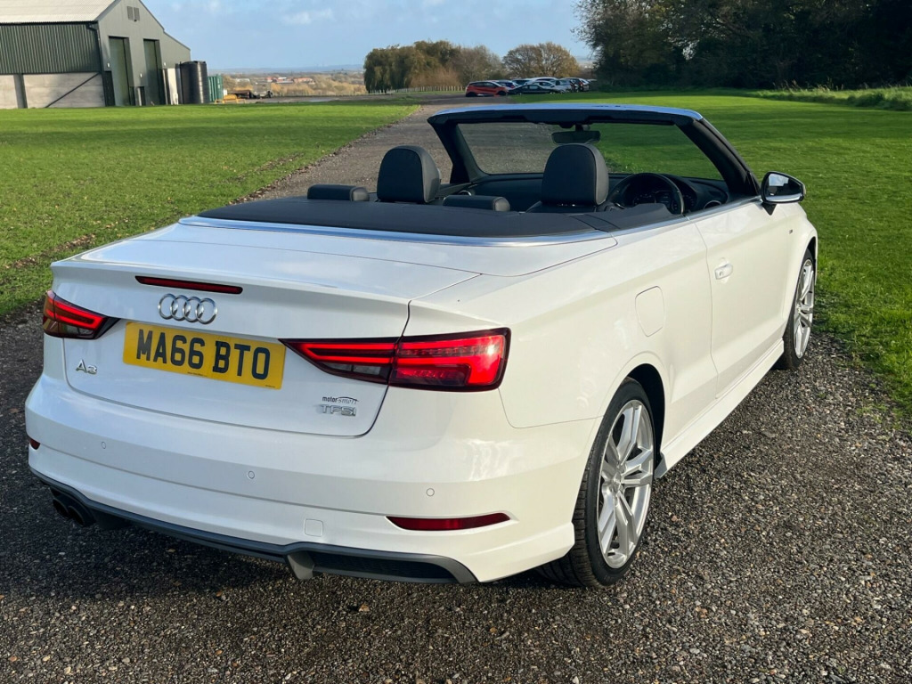 SOLDBoasting a full service history and only two previous owners, this 2016 Audi A3 Cabriolet TFSI S line represents excellent provenance. This stylish convertible features a 1.4 litre Euro 6 compliant petrol engine, offering an impressive fuel economy of 55 miles per gallon and low CO2 emissions. The S line trim enhances its sporty appeal, and you'll appreciate the convenience of the Technology Package, which includes Bluetooth connectivity. Manoeuvring is made simple with the Audi Parking System Plus and Park Assist, both equipped with front and rear sensors. Further enhancing comfort and practicality are the heated front seats and heated, electrically adjustable, folding, and auto dimming door mirrors.This Audi A3 Cabriolet stands out with its generous boot space, providing ample room for your luggage. The MOT is valid until October 2026, and the vehicle has a clear history check, offering peace of mind. The last service was completed on 25th November 2025 at 56,429 miles, and a 3 month warranty is included. These details, combined with its efficient performance and desirable features, indicate that this A3 Cabriolet offers a superior ownership experience compared to similar vehicles on the market.Please call 07976 200011 for further information.Appointment only, in alloy wheels - 5-parallel spoke design with diamond cut finish, 2 x usb charging ports and 1 x aux-in, acoustic hood - fully automatic, active bonnet, active roll-over protection system, adaptive brake lights, air vents - aluminium look, airbags, aluminium interior elements, aluminium window trims, anti theft locking wheel bolts, anti-theft alarm, audi connect infotainment services - 3 month trial, audi drive select, audi smartphone interface, black hood, bluetooth interface, body coloured door mirrors, cd drive, chrome-plated exhaust tailpipe trim, cloth headlining in black, colour drivers information system - dis, cruise control, cupholders, dab digital radio, door mirrors - electrically adjustable and heated with integrated led side indicators, dual-zone electronic climate control, esc - electronic stabilisation control, electric windows - front and rear, electromechanical parking brake, electromechanical power steering, emergency braking function, first aid kit and warning triangle, flat-bottomed 3-spoke leather-trimmed multi-function sport steering wheel with gear-shift paddles, floor mats - front and rear in velour, front centre armrest, front sports seats, gear knob - perforated leather, high mounted third brake light, hood lining - black, isofix child seat mounting and top tether for front passenger and outer rear seats, illuminated door sill trims with s logo, inlays - matt brushed aluminium, integrated aerial concealed under side panel trim, keyless go with remote central locking, led headlights with led rear lights and dynamic rear indicators, led interior light package, light and rain sensor, luggage compartment - lashing points x4, mmi navigation - sd card based, mmi radio plus with 7in electrically retractable colour mmi screen, multi collision brake assist, non-smoking package, pedals in stainless steel, radiator grille - high gloss dark chrome, rear parking sensors, rest recommendation system, s line badges on the front wings, s line design body styling, seat belt reminder for all seats, seats - split folding rear - 50-50 or fully, space saver spare wheel, speakers x8, sport suspension, storage compartments in the door side trims-centre console-under drivers seat, storage package, sun visors - folding and swivelling on drivers and front passengers side with covered vanity mirror, tool kit and car jack, tyre pressure warning light, voice control system, windscreen - acoustic with sunband, seats - heated front, door mirrors - heated-electrically adjustable-folding-auto-dimming, audi parking system plus, park assist, technology package
