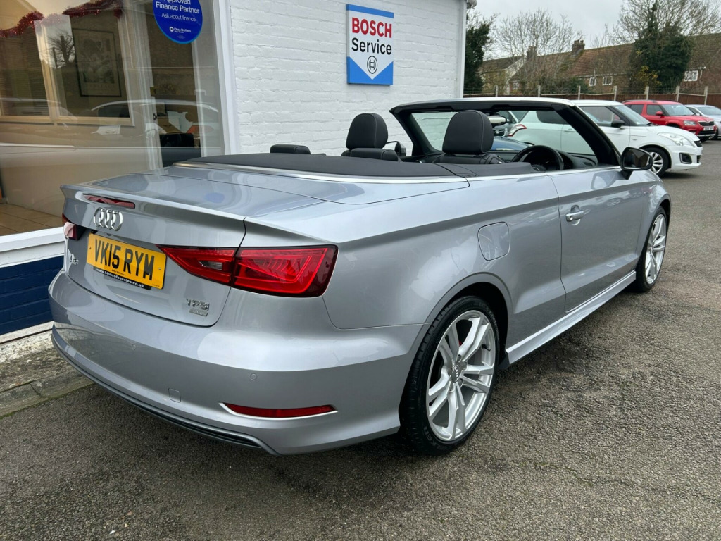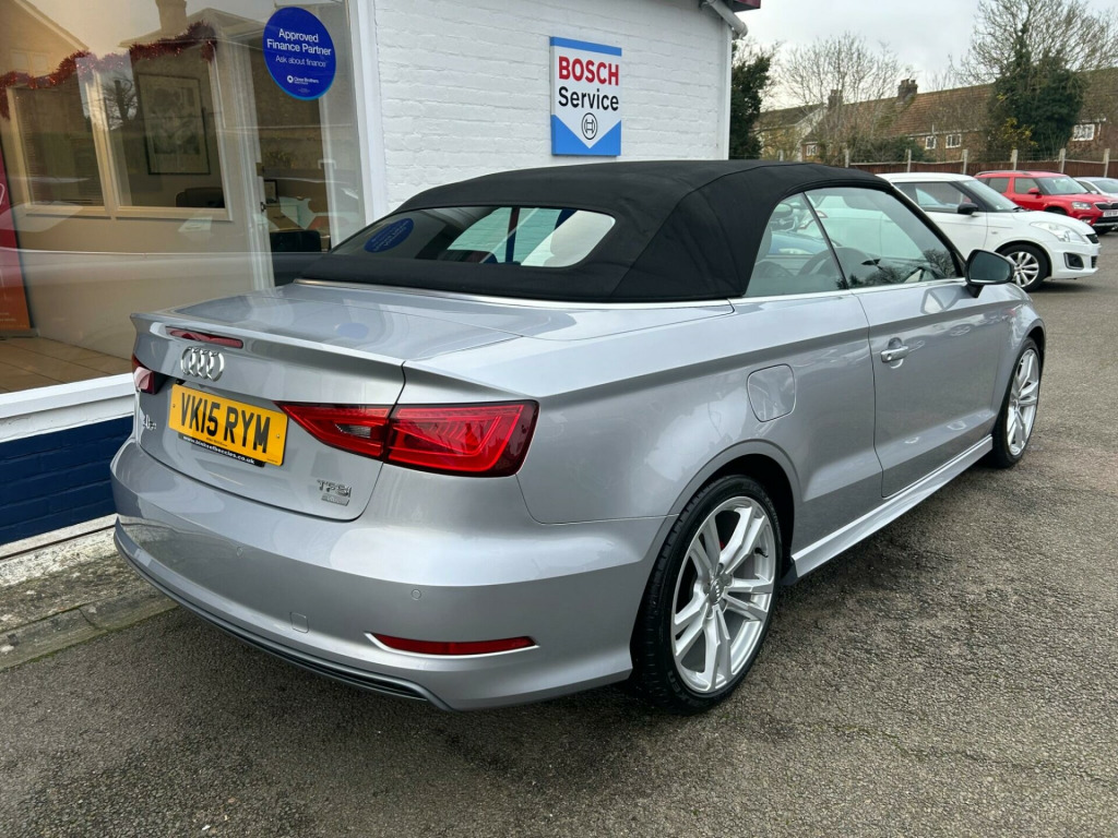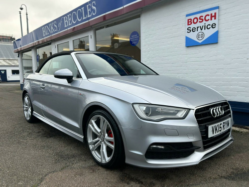 This 2015 Audi A3 Cabriolet 1.4 TFSI CoD S line S Tronic Euro 6 (s/s) 2dr Convertible is currently available for £12,799 in Beccles Suffolk with Petrol engine and Automatic gearbox. For more information or to arrange a viewing, click here to send us an email using form below.