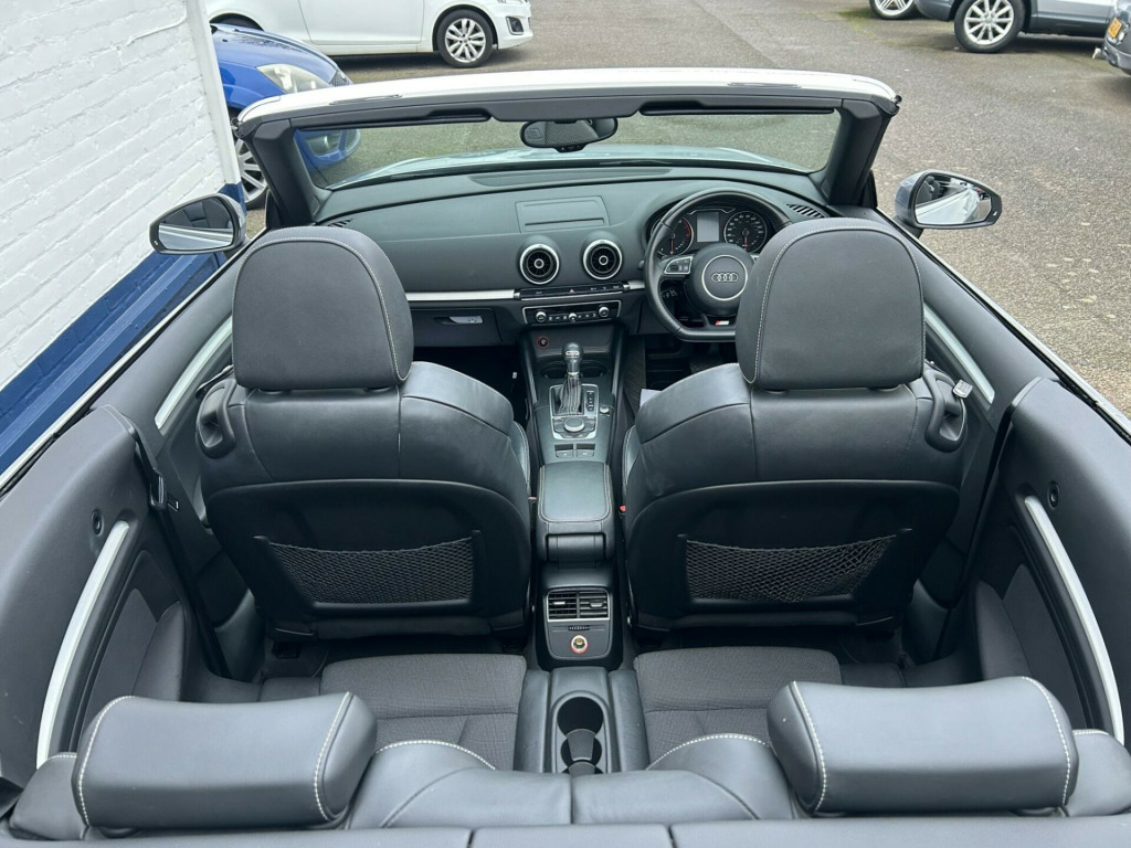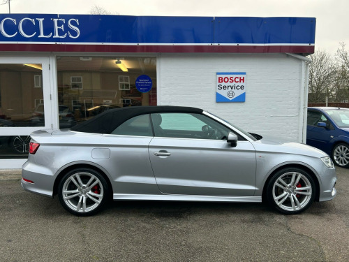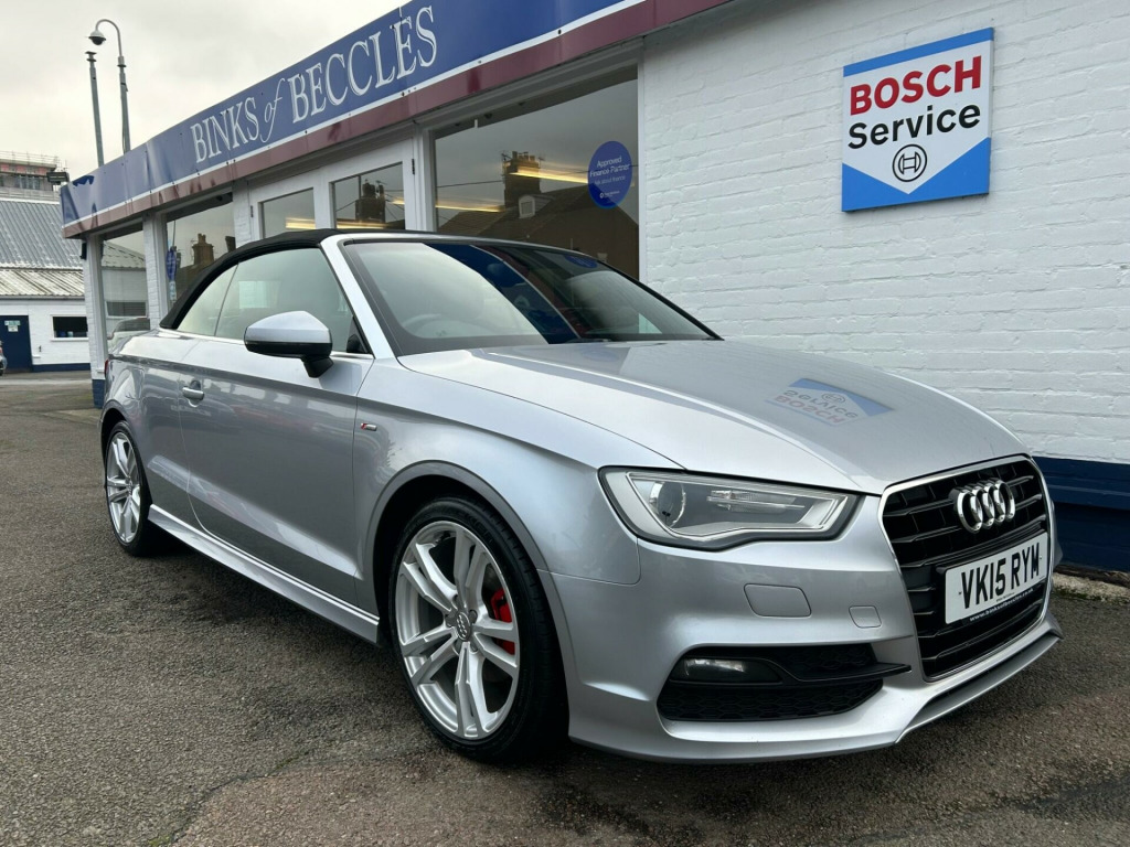This 2015 Audi A3 Cabriolet TFSI S line offers exceptional value with its remarkably low mileage of just 52,000 miles for its age. This stylish convertible boasts a 1.4 litre petrol engine and meets Euro 6 emissions standards. It comes with a 6 month warranty for your peace of mind, and a full 12 months MOT will be provided upon purchase. While the service history is partial, 3 stamps, the last service was completed at 52,000 miles. Notable features include the Audi Parking System with rear sensors, a Comfort Package, and Dual-Zone Electronic Climate Control. For enhanced visibility, it is equipped with automatic activation and Bi-Xenon Plus headlights.This Audi A3 Cabriolet stands out with its impressive fuel economy, achieving up to 55 miles per gallon, which is a significant advantage over many other vehicles in its class. Furthermore, its low CO2 emissions are a testament to its efficient design. You'll also appreciate the generous boot space, offering practicality for your everyday needs and weekend getaways. These highlights demonstrate how this A3 Cabriolet provides a superior ownership experience.RESERVE ONLINE TODAY + ULEZ COMPLIANT +0% DEPOSIT FINANCE AVAILABLE + PLEASE MAKE YOUR APPOINTMENT TO VIEW TODAY + Our family owned business was founded in 1992 and our aim is to offer a friendly and efficient service and to make our customer's buying experience as easy and enjoyable as possible. Our experienced staff will offer advice, if required, to help ensure our customers find the most suitable car to match their motoring needs. Part Exchange welcome. Although every effort is made to ensure the accuracy of these details please contact the dealer to verify any particular details prior to making a purchase. + All our cars are HPi checked to offer our customers peace of mind and therefore ensuring there is no outstanding finance or insurance write offs listed against them+ *Finance subject to status+ Third party finance agreements attract a £400 Administration fee+. 12V Power Socket - Centre Console, 12V Power Socket - Luggage Compartment, 12V Power Socket - Rear Centre Console, 18in Alloy Wheels - 5-Parallel Spoke Design Partly Polished, 2 x SDXC Card Readers, 50 Station Memory with Dynamic Station List, ABS - Anti-Lock Braking System, AMI - Audi Music Interface, ASR - Anti Slip Regulation, Acoustic Hood - Fully Automatic, Active Bonnet, Active Roll-Over Protection System, Adaptive Brake Lights, Air Vents - Aluminium Look, Airbags - Driver, Airbags - Drivers Knee, Airbags - Front Passenger, Airbags - Front Side, Airbags - Head Level Side For Front and Rear, Alarm - Thatcham Category 1, Aluminium Interior Elements, Anti Theft Locking Wheel Bolts, Audi Drive Select, Automatic Wipers with Rain Sensor, Black Hood, Brake Lights - LED, Bumpers - S line Front, Car Jack, Chrome-Plated Exhaust Tailpipe Trim, Colour Drivers Information System - DIS, Connection for Apple iPod from 4th Generation and iPhone, Cup Holders - Rear x2, Cup Holders - x2 in Centre Console, DAB Digital Radio, Diffuser - Rear - Platinum Grey Insert - S Line Design, Display Screen Colour - 5.8in, Door Mirrors - Body Coloured with Integrated LED Indicators, Door Mirrors - Electrically Adjustable and Heated, Door Sill Trims with S Line Logo, Dual-Zone Electronic Climate Control, EBD - Electronic Brakeforce Distribution, EDL - Electronic Differential Lock, ESP - Electronic Stability Programme, Electric Windows - Front and Rear, Electromechanical Parking Brake, Electromechanical Power Steering, Exhaust Tailpipe - Twin, FM-AM Radio, First Aid Kit, Fog Lights - High Gloss Black Surrounds, Front Centre Armrest, Front Fog Lights, Front Passenger Airbag Deactivation Switch, Front Sports Seats, Front and Rear Floor Mats, Gear Knob - Perforated Leather, Head Restraints - Front Adjustable, Headlights - Automatic Activation, Headlights - Automatic Dynamic Range Control, Headlights - Bi-Xenon Plus, Headlights - Coming-Leaving Home Function, Headlights - Washer System, Headlining - Black, Heated Windscreen Washer Jets, High Mounted Third Brake Light, Hood Lining - Black or Lunar Silver, Hydraulic Brake Assist, ISOFIX Child Seat Mounting for Front Passenger, Illuminated Vanity Mirrors, Inlays - Matt Brushed Aluminium, Integrated Aerial Concealed Under Side Panel Trim, Interior Lighting, LED Daytime Running Lights, LED Rear Indicators, LED Rear Lights, Leather Front Centre Armrest, Luggage Compartment - Additional Multi-Fastening Point, Luggage Compartment - LED Light, Luggage Compartment - Lashing Points x4, Luggage Compartment - Net, MMI Radio, MP3 - WMA and AAC Compatible CD Player, Mobile Telephone Preparation - Bluetooth Interface, Model and Engine Technology Badges at Rear, Net in the Side Compartment, Outside Temperature Display, Pollen Filter, Preparation for SD Card-Based Navigation System, Radiator Grille - High Gloss Black, Remote Central Locking, Rest Recommendation System, S Line Badges on Front Wings, S Line Design Body Styling, Seat Belt Reminder for All Seats, Seats - Backrests - Storage Net, Seats - Convenience Entry - Enhanced Front Folding Function, Seats - Drivers Manual Height Adjustment, Seats - Front Passenger Manual Height Adjustment, Seats - Split Folding Rear - 50-50 or Fully, Secondary Collision Brake Assist, Side Sills - S Line, Smoking Package, Space Saver Spare Wheel, Speakers x8, Speed Dependent Volume Control, Sport Suspension, Steering Wheel - 3-Spoke Leather Flat Bottomed, Steering Wheel - Gear Shift Paddles, Steering Wheel - Height and Reach Adjustable, Steering Wheel - Multi-function, Steering Wheel - Silver Contrast Stitching, Storage Comparment Under the Rear Seat, Storage Compartment Under Drivers Seat, Storage Compartments in the Door Side Trims - in the Centre Console and under the Front Drivers Seat, Storage Net in the Front Passenger Footwell, Storage and Luggage Compartment Package, Tool Kit, Tow Away Protection and Interior Monitoring, Two Fold Away Keys, Tyre Pressure Monitoring System, USB C