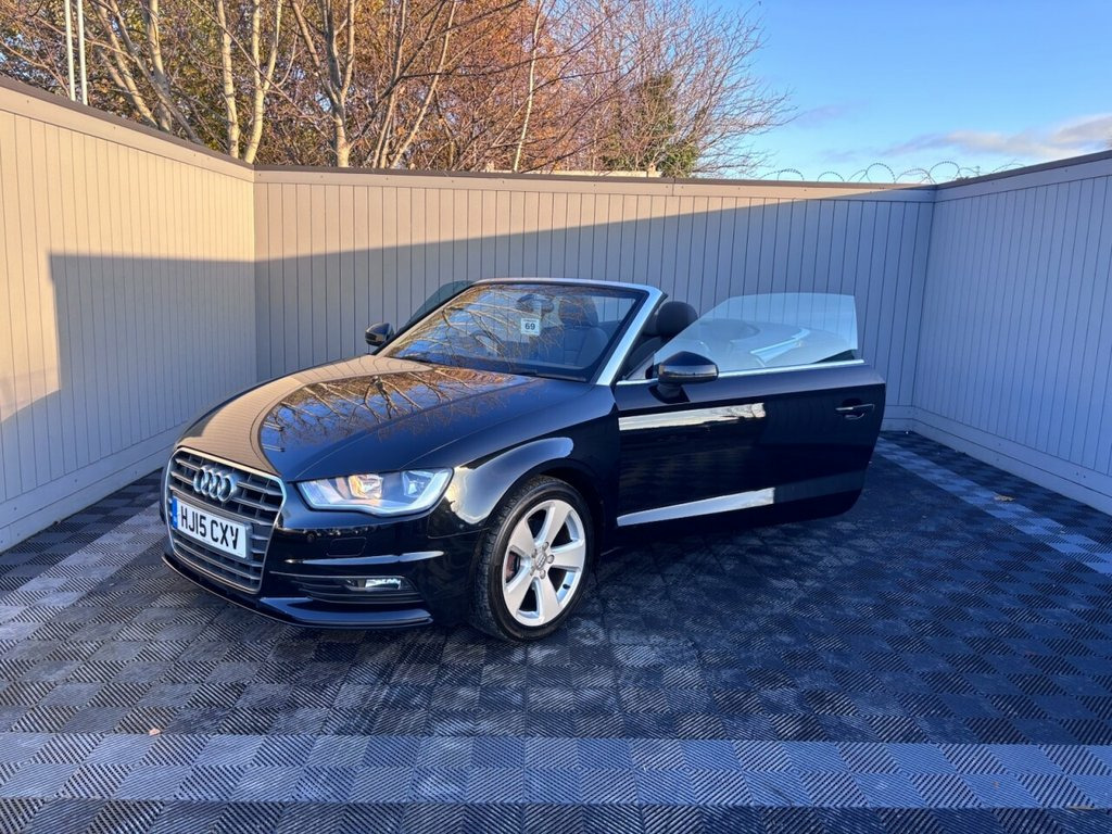 TAKE A LOOK AT OUR 2015 AUDI A3 CABRIOLET TFSI SPORT STYLISH CONVERTIBLE FEATURES A 1.4 LITRE PETROL ENGINE AND IS A EURO 6 EMISSION CLASS VEHICLE. INSIDE, YOU'LL FIND DUAL ZONE ELECTRONIC CLIMATE CONTROL TO KEEP EVERYONE COMFORTABLE, AND THE CONVENIENCE OF MOBILE TELEPHONE PREPARATION WITH A BLUETOOTH INTERFACE. AUTOMATIC ACTIVATION FOR THE HEADLIGHTS ENSURES YOU ALWAYS HAVE OPTIMAL VISIBILITY. WITH AN IMPRESSIVE FUEL ECONOMY OF 58 MILES PER GALLON, THIS AUDI A3 CABRIOLET IS DESIGNED FOR EFFICIENT DRIVING. ITS LOW CO2 EMISSIONS ALSO INDICATE A MORE ENVIRONMENTALLY CONSCIOUS CHOICE COMPARED TO MANY OTHER VEHICLES. THIS COMBINATION OF ECONOMICAL RUNNING COSTS AND DESIRABLE FEATURES MAKES THIS SPORT TRIM A3 CABRIOLET A COMPELLING OPTION. THE CAR COMES WITH A FRESH 12 MONTHS MOT AND A SERVICE UPON POINT OF SALE. YOU WILL STRUGGLE TO FIND ANOTHER CAR FOR THIS VALUE SO PLEASE PLEASE CHECK OUT WHAT OVER 1000 CUSTOMERS HAVE SAID ABOUT THEIR BUYING EXPERIENCE AND AFTER SALES PACKAGE WE OFFER ON AUTO TRADER REVIEW PAGE AND POP OVER TO MEET OUR TEAM WHO WILL HELP YOU EVERY STEP OF THE WAY WITH YOUR NEXT CAR PURCHASE. WE ARE A GROWING FAMILY BUSINESS AND CUSTOMER CARE AND SATISFACTION IS PARAMOUNT TO OUR SUCCESS. FREE DELIVERY CAN BE ARRANGED. CUSTOMER SATISFACTION IS OUR PRIORITY ALWAYS. LIVE WALK AROUND VIDEOS CAN BE ARRANGED UPON REQUEST 12V Power Socket - Centre Console, 17in Alloy Wheels - 5-Arm Design, 2 x SDXC Card Readers, 50 Station Memory with Dynamic Station L, ABS - Anti-Lock Braking System, AMI - Audi Music Interface, ASR - Anti Slip Regulation, Acoustic Hood - Fully Automatic, Active Bonnet, Active Roll-Over Protection System, Adaptive Brake Lights, Air Vents - Aluminium Look, Airbags - Driver, Airbags - Drivers Knee, Airbags - Front Passenger, Airbags - Front Side, Airbags - Head Level Side For Front and , Alarm - Thatcham Category 1, Aluminium Interior Elements, Anti Theft Locking Wheel Bolts, Audi Drive Select, Automatic Wipers with Rain Sensor, Black Hood, Car Jack, Chrome-Plated Exhaust Tailpipe Trim, Colour