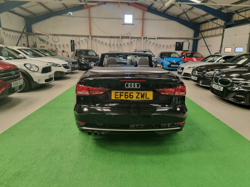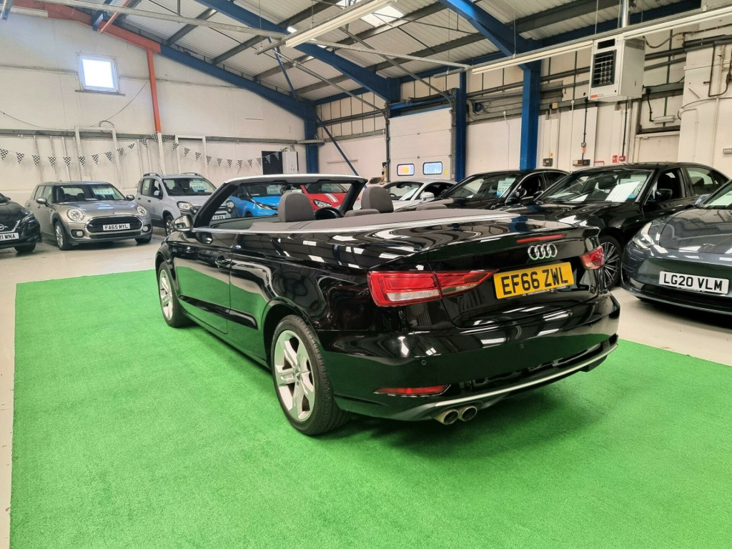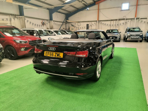 New Front and Rear Brake Discs & Pads.....This 2017 Audi A3 Cabriolet has a clear vehicle history check, offering you peace of mind. As a TFSI Sport model with the Sport trim, it combines style and performance. The 1.4L petrol engine delivers a smooth and responsive driving experience. Equipped with rear parking sensors, including parking assistance, manoeuvring is made easier. Xenon headlights with LED daytime running lights ensure excellent visibility, while the light and rain sensor automatically adjusts to changing conditions. The dual-zone electronic climate control maintains a comfortable environment inside, and the Bluetooth interface allows for seamless connectivity.The Audi A3 Cabriolet stands out with its large boot space, offering practicality that rivals similar vehicles. With low CO2 emissions and a fuel economy of 58 mpg, this Euro 6 compliant car is an efficient choice. These features make it an appealing option for those looking to minimise their environmental impact and running costs.. 17in Alloy Wheels - 5-Arm Design, 2 x USB Charging Ports and 1 x AUX-IN, 3-Spoke Leather-Trimmed Multi-Function Sport Steering Wheel - Height and Reach Adjustable, Acoustic Hood - Fully Automatic, Active Bonnet, Active Roll-Over Protection System, Adaptive Brake Lights, Air Vents - Aluminium Look, Airbags, Aluminium Interior Elements, Aluminium Window Trims, Anti Theft Locking Wheel Bolts, Anti-Theft Alarm, Audi Connect Infotainment Services - 3 Month Trial, Audi Drive Select, Audi Smartphone Interface, Black Hood, Bluetooth Interface, Body Coloured Door Mirrors, CD Drive, Chrome-Plated Exhaust Tailpipe Trim, Colour Drivers Information System - DIS, Cruise Control, Cupholders, DAB Digital Radio, Door Mirrors - Electrically Adjustable and Heated with Integrated LED Side Indicators, Door Sill Trims with Aluminium Inlay, Dual-Zone Electronic Climate Control, Dynamic Suspension, ESC - Electronic Stabilisation Control, Electric Windows - Front and Rear, Electromechanical Parking Brake, Electromechanical Power Steering, Emergency Braking Function, First Aid Kit and Warning Triangle, Floor Mats - Front and Rear in Velour, Front Centre Armrest, Front Sports Seats, High Mounted Third Brake Light, Hood Lining - Black, ISOFIX Child Seat Mounting and Top Tether for Front Passenger and Outer Rear Seats, Inlays - Aluminium Mistral Silver, Integrated Aerial Concealed Under Side Panel Trim, Interior Lighting, Keyless Go with Remote Central Locking, Light and Rain Sensor, Luggage Compartment - Lashing Points x4, MMI Navigation - SD Card Based, MMI Radio Plus with 7in Electrically Retractable Colour MMI Screen, Multi Collision Brake Assist, Non-Smoking Package, Rear Parking Sensors, Rest Recommendation System, Seat Belt Reminder for All Seats, Seats - Split Folding Rear - 50-50 or Fully, Space Saver Spare Wheel, Speakers x8, Sport Side Air Inlet Grille and Diffuser Insert, Storage Compartments in the Door Side Trims-Centre Console-Under Drivers Seat, Sun Visors - Folding and Swivelling on Drivers and Front Passengers Side with Covered Vanity Mirror, Tool Kit and Car Jack, Tyre Pressure Warning Light, Voice Control System, Windscreen - Acoustic with Sunband, Xenon Headlights with LED Daytime Running Lights, Seats - Heated Front, Audi Hill Hold Assist, Rallye Cloth - Sports Seats - Black with Headlining in Rock Grey. Full service history