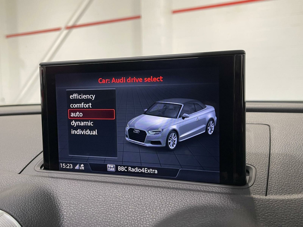FINANCE & PART EXCHANGE AVAILABLE* - Only 2 registered keepers & 68,748 miles from new, AUDI MAIN DEALER SERVICE HISTORY, 2 KEYS - this FANTASTIC AUDI A3 1.5 TFSI SPORT CONVERTIBLE is finished in stunning sports blue metallic & is complimented with contrasting sports trim and extends itself to the following additional features - Audi Sports styling, on board satellite navigation system, dual zone climate control / automatic air conditioning, trip computer, cruise control, leather trimmed multi function steering wheel with paddle shift, front & rear park distance control, driver & passenger heated front seats, Bluetooth telephone prep, DAB digital radio, media input, Apple CarPlay / Android Auto, start / stop, Audi drive select, speed warning, rest recommend, electric folding & heated exterior mirrors, LED auto headlights, rain sensor, power assisted steering, abs, airbags, electric mirrors, electric windows, remote central locking, head restraints, Audi 17'' sports alloy wheels, Audi anti theft system. ***FINANCE AVAILABLE - subject to status. T&C's apply.***PART EXCHANGE AVAILABLE***ALL VEHICLES ARE HPI & NATIONAL MILEAGE REGISTER CHECKED***THE AA WARRANTY IS SUBJECT TO TERMS & CONDITIONS AND DOES NOT COVER VEHICLES THAT ARE BEING USED FOR TAXI, PRIVATE HIRE, CHAUFFEURING PURPOSES OR FOR REWARD.***Please note, that the specifications/components/features etc. are generic to that vehicle of the type advertised but may not be included in the specific vehicle that is for sale. It is for the intended purchaser to satisfy themselves of the presence or absence of any specifications/components/features before sale. Please ask if you are uncertain of anything and we will see if we can assist.. 17in Alloy Wheels - 5-Arm Design, 2 x USB Charging Ports and 1 x AUX-IN, 3-Spoke Leather-Trimmed Multi-Function Sport Steering Wheel with Paddles - Height and Reach Adjustable, 8 Passive Loudspeakers, Acoustic Hood - Fully Automatic, Active Roll-Over Protection System, Airbags, Aluminium Interior Elements, Aluminium Window Trims, Anti Theft Locking Wheel Bolts, Anti-Theft Alarm, Audi Connect Infotainment Services - 3 Month Trial, Audi Drive Select, Audi Smartphone Interface, Auto-Dimming Rear-View Mirror, Black Hood, Bluetooth Interface, Body Coloured Door Mirrors, CD Drive, Chrome-Plated Exhaust Tailpipe Trim, Colour Drivers Information System - DIS, Cruise Control, DAB Digital Radio, Door Mirrors - Electrically Adjustable and Heated with Integrated LED Side Indicators, Door Sill Trims with Aluminium Inlay, Dual-Zone Electronic Climate Control, Dynamic Suspension, ESC - Electronic Stabilisation Control inc ABS - ASR and EDL, Electric Windows - Front, Electromechanical Parking Brake, Electromechanical Power Steering, Email and Text Messages can be Displayed on your Vehicles MMI, First Aid Kit and Warning Triangle, Front Centre Armrest, Front and Rear Floor Mats, Heated Windscreen Washer Jets, Hill Hold Assist, ISOFIX Child Seat Mounting and Top Tether, Inlays - Aluminium Mistral Silver, Interior Lighting, Lashing Points in Luggage Compartment, Light and Rain Sensor, MMI Navigation - SD Card Based, MMI Radio Plus with 7in Electrically Retractable Colour MMI Screen, Model and Engine Technology Badges at Rear, Non-Smoking Package, Online Media Streaming - Audi MMI Connect App Required, Rear Parking Sensors, Remote Central Locking with 2 Fold Away Keys, Seat Belt Monitoring, Seats - Split Folding Rear - 50-50 or Fully, Space Saver Spare Wheel, Sport Side Air Inlet Grille and Diffuser Insert, Storage Compartments in the Door Side Trims-Centre Console-Under Drivers Seat, Tool Kit and Car Jack, Tyre Pressure Warning Light, Xenon Headlights with LED Daytime Running Lights, Seats - Heated Front, Door Mirrors - Heated-Electrically Adjustable-Folding-Auto-Dimming.