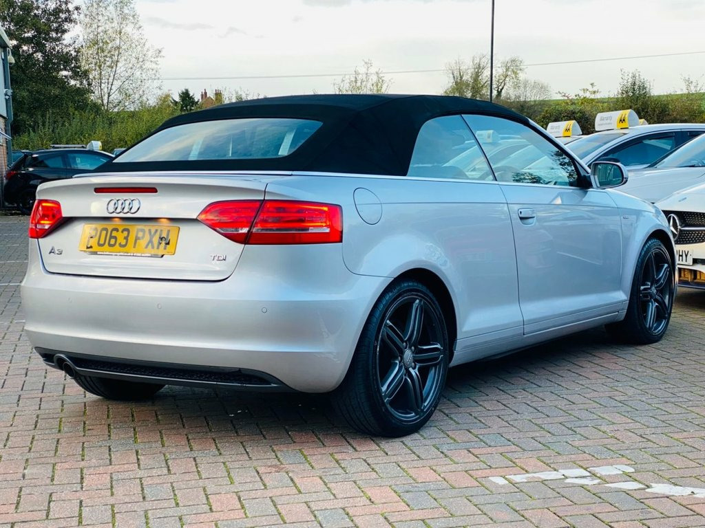 **AUDI A3 CABRIOLET 1.6 TDI S LINE FINAL EDITION CONVERTIBLE 2DR DIESEL MANUAL EURO 5 (2013)** 2 KEYS + GOOD SERVICE HISTORY + FRESH SERVICE + MOT Valid till 26/22/2026 + 18" ALLOY WHEELS + LEATHER S LINE INTERIOR + MULTIFUNCTION FLAT-BOTTOM STEERING WHEEL + DUAL-ZONE CLIMATE CONTROL + CRUISE CONTROL + BLUETOOTH CONNECTIVITY + DAB RADIO + REAR PARKING SENSORS + LED DAYTIME RUNNING LIGHTS + ELECTRIC WINDOWS + ISOFIX SEATS + WIND DEFLECTOR + EURO 5 ULEZ COMPLIANT (CHECK YOUR AREA) + FINANCE & WARRANTY OPTIONS AVAILABLE + NATIONWIDE DELIVERY + **90 DAYS COMPLIMENTARY WARRANTY** + CALL **01525 210700** TO BOOK A VIEWING OR TEST DRIVE! ------SERVICE HISTORY----- 1. 03/09/2015 @ 12038 MILES (AUDI) 2. 10/03/2017 @ 16267 MILES (AUDI) 3. 03/09/2018 @ 19193 MILES (AUDI) 4. 03/05/2019 @ 23247 MILES (AUDI) 5.16/04/2021 @ 32385 MILES (AUDI) 6.15/02/2023 @ 46231 MILES 7. 18/08/2023 @ 48369 MILES 8. 22/01/2024 @ 51157 MILES 9.07/02/2025 @ 58051 MILES 10.07/11/2025 @ 64120 MILES 17in Alloy Wheels - 5-Arm Kinetic Design, 18in Alloy Wheels - 5-Segment-Spoke Desi, 6.5in Display Screen, ABS - Anti-Lock Braking System, AMI - Audi Music Interface, ASR - Anti Slip Regulation, AUX-IN Socket, Acoustic Parking System - Rear, Airbags - Driver, Airbags - Front Passenger, Airbags - Front Side System, Alarm - Thatcham Category 1, Amplifier - 6 Channel, Anti Theft Locking Wheel Bolts, Auto-Dimming Rear-View Mirror and Door M, Automatic Wipers with Rain Sensor, BOSE Premium Sound System, Car Jack, Comfort Package, Cruise Control, DIS - Drivers Information System - Monoc, Daytime Running Lights, Door Handles - Chrome, Door Mirrors - Body Coloured with Integr, Door Mirrors - Electric