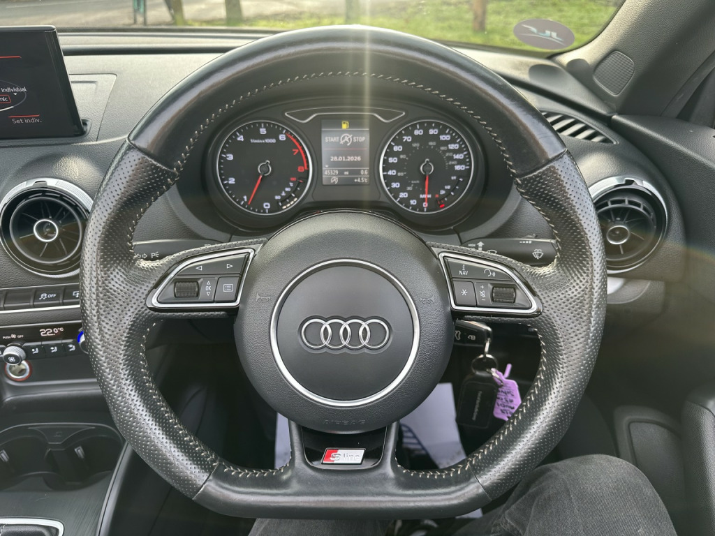 Drive away in this lovely, low mileage Audi A3 S Line Convertible TFSi with the better 1.8 turbo engine and 6 speed manual gearbox!, , This car is in superb overall condition and has covered a genuinely low 45k miles!! Its finished in metallic silver which shines from top to toe and is in excellent overall condition! The car is HPI clear, has 4 excellent premium tyres and comes with a Full and Comprehensive Service History. MOT runs until February 2027. , This car has been well maintained since new by its owners! It has a lovely service history with no less than 10 services, all of which are at Audi/Audi specialists. It was last serviced in February 2025 and will be freshly serviced ready for the new owner! It comes complete with 2 keys, invoices, digital service record and V5C. , The interior is in great overall condition with only minor wear! The exterior is exceptional for the year, though being a used car may have tiny marks/stone chips etc. Any prospective buyer will not be disappointed. , This is the desirable S Line variant which includes remote central locking (2 keys), loads of airbags, power steering, dual zone climate control with ice cold air conditioning, alloy wheels, electric windows, heated rear screen, electrically adjustable mirrors, onboard trip computer, adjustable steering wheel, automatic lights , daytime running lights, rear parking sensors, automatic wipers, heated seats and loads more!, , The engine and drive train is silky smooth, and can genuinely return 40mpg! This car has just ticked over 45k miles; this is absolutely nothing for one of these superb Audi tfsi petrol engines, especially considering its history! Suspension is knock free and the engine is a delight! This is a lovely example and drives exceptionally.