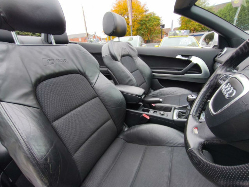 This Audi A3 Cabriolet TFSI S line from 2008 offers excellent long term peace of mind with its MOT valid until August 2026. This stylish convertible features the desirable S line trim and is powered by a responsive 1.8 litre petrol engine.Enjoy an impressive fuel economy of 42 miles per gallon, making this A3 Cabriolet an economical choice for your journeys. Furthermore, its low insurance group and low CO2 emissions indicate that running costs are kept to a minimum, setting it apart from many other vehicles in its class.. 18in 7 Twin Spoke Alloy Wheels, Aluminium door handle strips, Aluminium roll bars, Aluminium shoulder line Trim, Black gear knob, Black stitching, Brushed Aluminium inlay, Concert single CD player with MP3 facility & Aux in, Deletion of model & engine designation at Rear, Inlay- Black Piano finish, Non smoking Pack, Silver stitching.