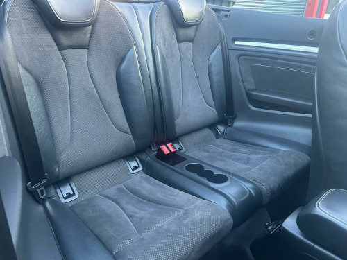 This 2015 Audi A3 Cabriolet TFSI S line offers a superb blend of open top driving pleasure and refined German engineering. Finished in the desirable S line trim, this 1.8 litre petrol model is Euro 6 compliant, ensuring cleaner emissions. Inside, you'll find the convenience of Mobile Telephone Preparation with a Bluetooth interface, allowing for seamless connectivity. The Bi-Xenon Plus headlights with automatic activation provide excellent visibility, while the Dual-Zone Electronic Climate Control ensures comfort for both driver and passenger.This Audi A3 Cabriolet also boasts impressive practicality. With a fuel economy of up to 49 miles per gallon, it offers an economical driving experience. Furthermore, its low CO2 emissions are better than many similar vehicles, and it features a surprisingly large boot space, making it a versatile choice for both daily commutes and longer journeys. v power socket - centre console, 12v power socket - luggage compartment, 12v power socket - rear centre console, 18in alloy wheels - 5-parallel spoke design partly polished, 2 x sdxc card readers, 50 station memory with dynamic station list, abs - anti-lock braking system, ami - audi music interface, asr - anti slip regulation, acoustic hood - fully automatic, active bonnet, active roll-over protection system, adaptive brake lights, air vents - aluminium look, airbags - driver, airbags - drivers knee, airbags - front passenger, airbags - front side, airbags - head level side for front and rear, alarm - thatcham category 1, aluminium interior elements, anti theft locking wheel bolts, audi drive select, automatic wipers with rain sensor, black hood, brake lights - led, bumpers - s line front, car jack, chrome-plated exhaust tailpipe trim, colour drivers information system - dis, connection for apple ipod from 4th generation and iphone, cup holders - rear x2, cup holders - x2 in centre console, dab digital radio, diffuser - rear - platinum grey insert - s line design, display screen colour - 5.8in, door mirrors - body coloured with integrated led indicators, door mirrors - electrically adjustable and heated, door sill trims with s line logo, dual-zone electronic climate control, ebd - electronic brakeforce distribution, edl - electronic differential lock, esp - electronic stability programme, electric windows - front and rear, electromechanical parking brake, electromechanical power steering, exhaust tailpipe - twin, fm-am radio, first aid kit, fog lights - high gloss black surrounds, front centre armrest, front fog lights, front passenger airbag deactivation switch, front sports seats, front and rear floor mats, gear knob - perforated leather, head restraints - front adjustable, headlights - automatic activation, headlights - automatic dynamic range control, headlights - bi-xenon plus, headlights - coming-leaving home function, headlights - washer system, headlining - black, heated windscreen washer jets, high mounted third brake light, hood lining - black or lunar silver, hydraulic brake assist, isofix child seat mounting for front passenger, illuminated vanity mirrors, inlays - matt brushed aluminium, integrated aerial concealed under side panel trim, interior lighting, led daytime running lights, led rear indicators, led rear lights, leather front centre armrest, luggage compartment - additional multi-fastening point, luggage compartment - led light, luggage compartment - lashing points x4, luggage compartment - net, mmi radio, mp3 - wma and aac compatible cd player, mobile telephone preparation - bluetooth interface, model and engine technology badges at rear, net in the side compartment, outside temperature display, pollen filter, preparation for sd card-based navigation system, radiator grille - high gloss black, remote central locking, rest recommendation system, s line badges on front wings, s line design body styling, seat belt reminder for all seats, seats - backrests - storage net, seats - convenience entry - enhanced front folding function, seats - drivers manual height adjustment, seats - front passenger manual height adjustment, seats - split folding rear - 50-50 or fully, secondary collision brake assist, side sills - s line, smoking package, space saver spare wheel, speakers x8, speed dependent volume control, sport suspension, steering wheel - 3-spoke leather flat bottomed, steering wheel - gear shift paddles, steering wheel - height and reach adjustable, steering wheel - multi-function, steering wheel - silver contrast stitching, storage comparment under the rear seat, storage compartment under drivers seat, storage compartments in the door side trims - in the centre console and under the front drivers seat, storage net in the front passenger footwell, storage and luggage compartment package, tool kit, tow away protection and interior monitoring, two fold away keys, tyre pressure monitoring system, usb connection, voice control - telephone, warning triangle, washer fluid level indicator, window surrounds - aluminium side windows, windscreen - acoustic with sunband