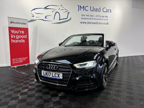 If you love the idea of a drop-top premium diesel convertible, and you find a well-maintained example of this Audi A3 Cabriolet 2.0 TDI S line in good condition, then this is a very compelling car. It offers a strong blend of performance, economy and style. Award-Winning Family Business | Premium Customer Service & Aftercare Located just off Junction 24 of the M8 in Glasgow, we offer an impressive range of quality used cars, all displayed in our indoor showroom. Each vehicle is meticulously prepared to meet our high standards, ensuring you're driving away with complete confidence. We welcome part exchanges and offer tailored finance and warranty packages to suit every budget. Need help choosing the right car? Our team is here to provide expert advice and support. Can't make it in person? No problem! We offer live video walkarounds of our cars upon request, and you can complete all finance agreements securely online. For more details or to arrange a viewing, contact Martin today. Door Mirrors - Heated-Electrically Adjus, Auto-Dimming Rear-View Mirror, Comfort and Sound Package, Rear-View Camera, Bang and Olufsen Sound System, Technology Package, Mythos Black, Seats - Heated Front, 18in Alloy Wheels - 5-Parallel Spoke Des, 2 x USB Charging Ports and 1 x AUX-IN, Acoustic Hood - Fully Automatic, Active Bonnet, Active Roll-Over Protection System, Adaptive Brake Lights, Air Vents - Aluminium Look, Airbags, Aluminium Interior Elements, Aluminium Window Trims, Anti Theft Locking Wheel Bolts, Anti-Theft Alarm, Audi Connect Infotainment Services - 3 M, Audi Drive Select, Audi Smartphone Interface, Black Hood, Bluetooth Interface, Body Coloured Door Mirrors, CD Drive, Chrome-P