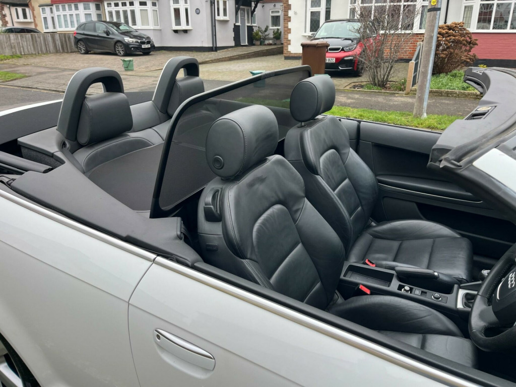 THIS REALLY IS A STUNNING LOW MILEAGE EXAMPLE, LAST OWNER FOR THE PAST 16 YEARS AND A FULL SERVICE HISTORY INCLUDING CAMBELT CHANGE , DIAMOND WHITE WITH CONTRASTING BLACK HEATED NAPPA LEATHER SEATS, BLACK ELECTRIC SOFT TOP, WIND DEFLECTROR, BOSE SOUND SYSTEM , AIR CONDITIONING, MULTI SPOKE ALLOY WHEELS,REAR PARKING SENSORS, LOOKS AND DRIVES FANTASTIC, GET READY FOR SUMMER!!!! 2 SETS OF KEYS, 3 MONTHS WARRANTY. oustic parking system- rear, cloth hood- black- audi, heated front seats, leather- fine nappa- black, 17in 5spoke star design alloy wheels, 3spoke leather sports steering wheel, aluminium door handle strips, aluminium roll bars, aluminium shoulder line trim, black headlining, concert single cd player with mp3 facility & aux in, deletion of model & engine designation at rear, medial aluminium inlay, non smoking pack, silver headlining