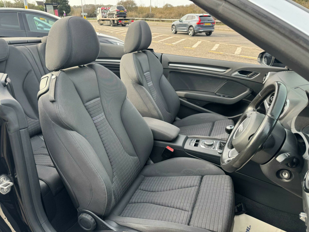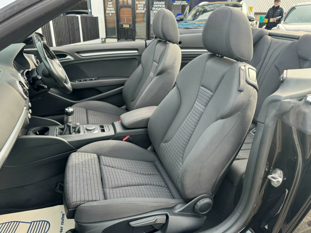FIVE BELLS CAR SALES HAVE THE PLEASURE IN OFFERING THIS STUNNING AUDI A3 CABRIOLET 2.0 TDI SPORT EURO 6 ULEZ COMPLIANT EXTRAS INCLUDE, AIR CON, BLUETOOTH, ELECTRIC WINDOWS, FULL ELECTRIC ROOF, ALLOY WHEELS, ELECTRIC HEATED WING MIRRORS, STUNNING COLOUR, VERY ECONOMICAL DRIVES FAULTLESS WE ARE AA APPROVED DEALER AA BREAKDOWN COVER INCLUDED,JUST ARRIVED, ANY INSPECTION WELCOME, SUPERB VALUE, LOCATED IN BASILDON JUST OFF A13 PLEASE CALL 01268 555888 AT YOUR CONVENIENCE TO ARRANGE A VIEWING FINANCE AVAILABLE,PX WELCOME,AA APPROVED DEALER OPEN 7 DAYS, £6975 Free 12 Months AA Breakdown Cover On All Our Cars. 12V Power Socket - Centre Console, 17in Alloy Wheels - 5-Arm Design, 2 x SDXC Card Readers, 50 Station Memory with Dynamic Station List, ABS - Anti-Lock Braking System, AMI - Audi Music Interface, ASR - Anti Slip Regulation, Acoustic Hood - Fully Automatic, Active Bonnet, Active Roll-Over Protection System, Adaptive Brake Lights, Air Vents - Aluminium Look, Airbags - Driver, Airbags - Drivers Knee, Airbags - Front Passenger, Airbags - Front Side, Airbags - Head Level Side For Front and Rear, Alarm - Thatcham Category 1, Aluminium Interior Elements, Anti Theft Locking Wheel Bolts, Audi Drive Select, Automatic Wipers with Rain Sensor, Black Hood, Car Jack, Chrome-Plated Exhaust Tailpipe Trim, Colour Drivers Information System - DIS, Connection for Apple iPod from 4th Generation and iPhone, Cup Holders - Rear x2, Cup Holders - x2 in Centre Console, DAB Digital Radio, Daytime Running Lights, Display Screen Colour - 5.8in, Door Mirrors - Body Coloured with Integrated LED Indicators, Door Mirrors - Electrically Adjustable and Heated, Door Sill Trims, Dual-Zone Electronic Climate Control, EBD - Electronic Brakeforce Distribution, EDL - Electronic Differential Lock, ESP - Electronic Stability Programme, Electric Windows - Front and Rear, Electromechanical Parking Brake, Electromechanical Power Steering, Exhaust Tailpipe - Twin, FM-AM Radio, First Aid Kit, Fog Lights - Chrome Surrounds, Front Centre Armrest, Front Fog Lights, Front Passenger Airbag Deactivation Switch, Front Sports Seats, Front and Rear Floor Mats, Gear Change Indicator, Halogen Headlights, Head Restraints - Front Adjustable, Headlights - Automatic Activation, Headlights - Coming-Leaving Home Function, Headlights - Electric Range Control, Heated Windscreen Washer Jets, High Mounted Third Brake Light, Hood Lining - Black or Lunar Silver, Hydraulic Brake Assist, ISOFIX Child Seat Mounting for Front Passenger, Inlays - Aluminium Mistral Silver, Integrated Aerial Concealed Under Side Panel Trim, Interior Lighting, Luggage Compartment - Lashing Points x4, MMI Radio, MP3 - WMA and AAC Compatible CD Player, Mobile Telephone Preparation - Bluetooth Interface, Model and Engine Technology Badges at Rear, Outside Temperature Display, Pollen Filter, Preparation for SD Card-Based Navigation System, Remote Central Locking, Rest Recommendation System, Seat Belt Reminder for All Seats, Seats - Convenience Entry - Enhanced Front Folding Function, Seats - Drivers Manual Height Adjustment, Seats - Front Passenger Manual Height Adjustment, Seats - Split Folding Rear - 50-50 or Fully, Secondary Collision Brake Assist, Smoking Package, Space Saver Spare Wheel, Speakers x8, Speed Dependent Volume Control, Sport Suspension, Steering Wheel - 3-Spoke Leather Trimmed Sports, Steering Wheel - Height and Reach Adjustable, Steering Wheel - Multi-function, Storage Compartments in the Door Side Trims - in the Centre Console and under the Front Drivers Seat, Sun Visors - with Covered Vanity Mirrors, Tool Kit, Tow Away Protection and Interior Monitoring, Two Fold Away Keys, Tyre Pressure Monitoring System, USB Connection, Voice Control - Telephone, Warning Triangle, Washer Fluid Level Indicator, Window Surrounds - Aluminium Side Windows, Windscreen - Acoustic with Sunband.