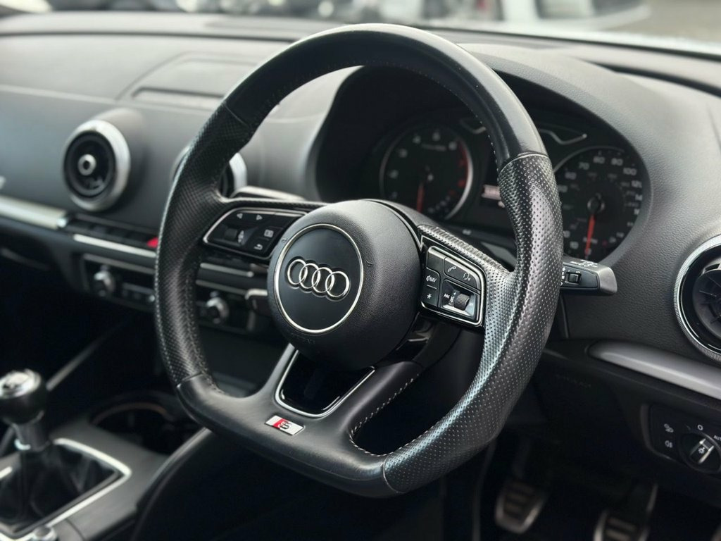 The Audi A3 1.0 TFSI 30 Black Edition Sportback 5dr Petrol Manual is a sleek and efficient premium hatchback that blends sporty styling with everyday usability. Powered by a responsive 1.0-litre turbocharged petrol engine producing around 114 bhp and paired with a smooth 6-speed manual gearbox, it delivers confident performance with excellent fuel efficiency, making it well suited to both urban and motorway driving. The Black Edition trim enhances its road presence with 18-inch alloy wheels, black exterior styling accents and privacy glass, while inside the cabin offers a high-quality finish with aluminium detailing, dual-zone climate control, supportive sports seats and a modern infotainment system with smartphone connectivity. Practical, refined and unmistakably Audi, the A3 Sportback Black Edition is a well-rounded choice for drivers seeking style, comfort and efficiency in a compact UK hatchback. 18in Alloy Wheels - 10-Spoke Design Matt, 2 x USB Charging Ports and 1 x AUX-IN, 6-Airbag System with Knee Airbag for Dri, Aluminium Interior Elements, Anti Theft Locking Wheel Bolts, Anti-Theft Alarm, Audi Connect, Audi Connect Infotainment Services - 3 M, Audi Drive Select, Audi Smartphone Interface, Audi Sound System, Auto-Dimming Rear-View Mirror with Light, Black Styling Package, Bluetooth Interface, CD Drive, Chrome-Plated Exhaust Tailpipe Trim, Cloth Headlining in Black, Colour Drivers Information System - DIS, Cruise Control, DAB Digital Radio, Door Mirrors - Black Housing, Door Mirrors - Electrically Adjustable a, Dual-Zone Electronic Climate Control, ESC - Electronic Stabilisation