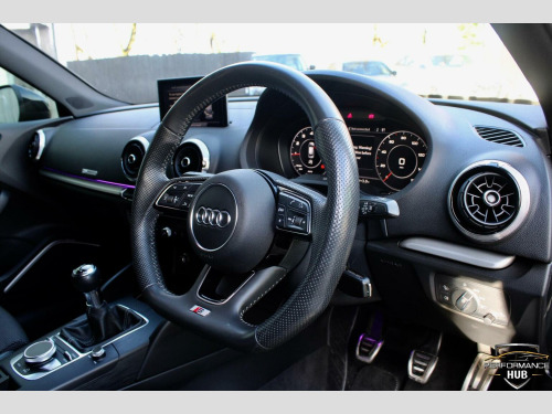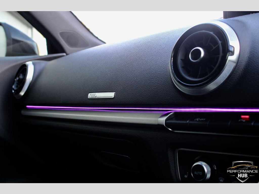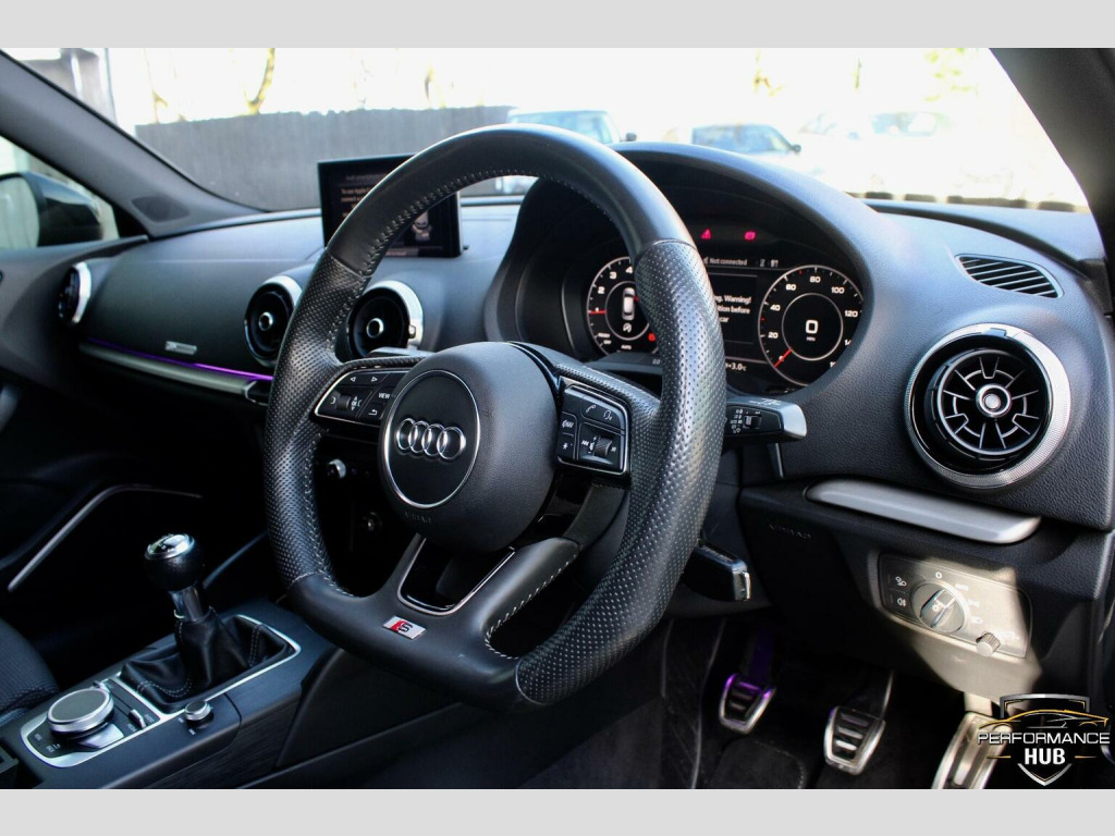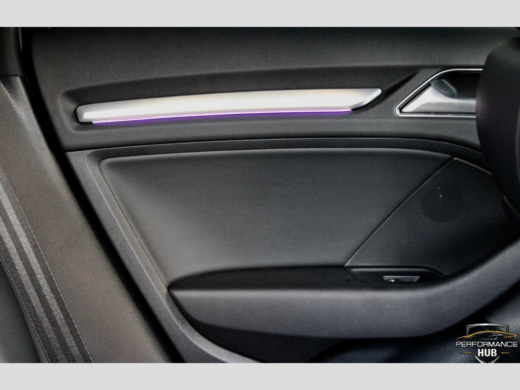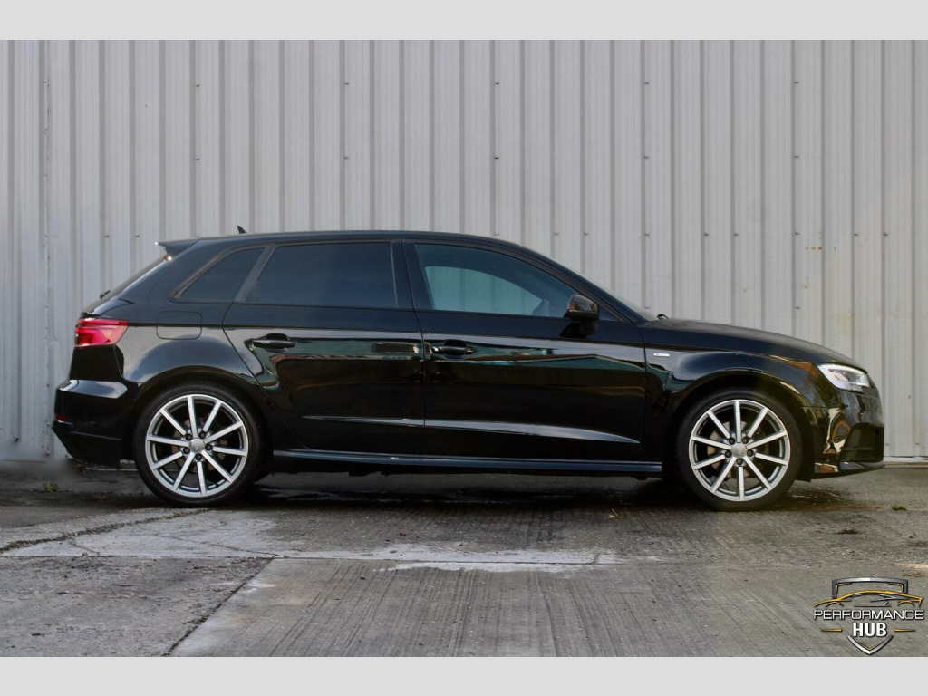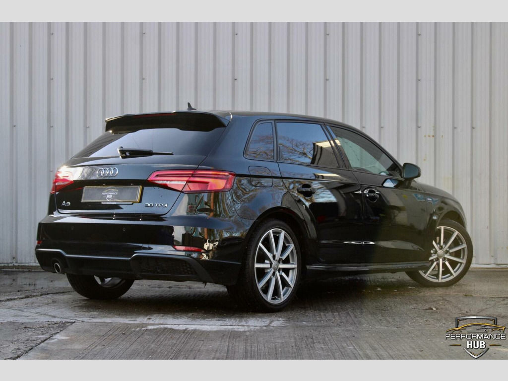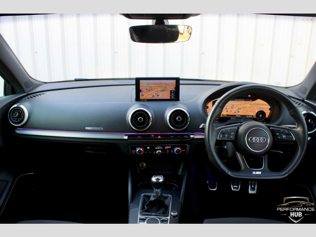 We are proud to offer this stunning Audi A3 TSFI Black Edition for sale finished in the beautiful Brilliant Black with Black sequence cloth/leather interior with rock grey stitching. This car comes with, comfort and sound pack, Bang & Olufsen sound system, virtual cockpit, flat bottom steering wheel, technology pack advanced, telephone wireless charging, folding door mirrors, daytime running headlights, dual zone clime control, DAB, half leather interior, Multifunctional steering wheel, 18 S Line gloss alloys, Audi drive select, upgraded ambient lighting, upgraded starlight roofing, tyre pressure warning light, dab radio, satellite navigation, electronic stabilisation control, black styling, privacy glass, cruise control, xenon headlights, plus much more