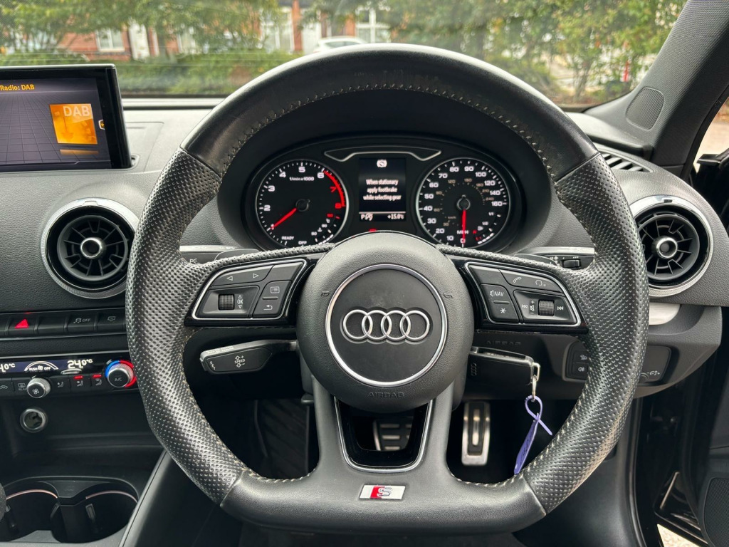 Mot till:09/05/2026, 1 former owner from new, cruise control, U LEZ Compliant, multifunctional steering wheel, alloys chromium grey, with tyres not long changed, five service invoices stop start air-conditioning automatic headlights front and rear fog light, multimedia connectivity aux USB Bluetooth, rear parking sensors, This 2019 Audi A3 TFSI Black Edition offers a compelling blend of style and practicality, making it an excellent choice for those seeking a premium compact car. Powered by an efficient 1.0 litre Euro 6 compliant petrol engine, this model boasts a responsive 0-62mph acceleration time of 9.9 seconds. The Black Edition trim enhances its sporty appeal, while the interior features a 3-spoke leather multifunction flat bottomed steering wheel with shift paddles, providing an engaging driving experience. Comfort is assured with dual-zone electronic climate control and an auto-dimming rear-view mirror that works in conjunction with the light and rain sensor.Further enhancing the driving experience are the advanced LED headlights with dynamic rear indicators, ensuring excellent visibility and a modern aesthetic. Parking is made simpler with the inclusion of rear parking sensors. The Audi A3 also offers generous boot space, a practical advantage for everyday use and longer journeys. Audi A3 TFSI Black Edition provides a superior ownership proposition, stock code:120151, 110gbp doc fees applies, low finance rates available on our newer cars in house. Specification information is supplied by CAP,HPI and may vary to the actual car. DEAR FINANCE CUSTOMERS Our finance companies we use for you are FREE YES FREE for you to arrange via Cg Motorland's website.. we will then attach a £210 for an Rac warranty with it which can be also extended if required. IF you decide to arranged OUTSIDE of our website finance company. It is compulsory to pay there charges what ever they will charge you/usplus ours standard £320 which as part of a package BUT WE will ALSO give you as a bonus an Rac warranty with it which can be also extended if required. in alloy wheels - 10-spoke design matt titanium look with diamond cut finish, 2 x usb charging ports and 1 x aux-in, 6-airbag system with knee airbag for driver, aluminium interior elements, anti theft locking wheel bolts, anti-theft alarm, audi connect, audi connect infotainment services - 3 month trial, audi drive select, audi smartphone interface, audi sound system, auto-dimming rear-view mirror with light and rain sensor, black styling package, bluetooth interface, cd drive, chrome-plated exhaust tailpipe trim, cloth headlining in black, colour drivers information system - dis, cruise control, dab digital radio, door mirrors - black housing, door mirrors - electrically adjustable and heated with integrated led side indicators, dual-zone electronic climate control, esc - electronic stabilisation control inc abs - asr and edl, electric windows - front and rear, electromechanical parking brake, electromechanical power steering, first aid kit and warning triangle, front centre armrest, front and rear floor mats, heated windscreen washer jets, hill hold assist, isofix child seat mounting and top tether, illuminated door sill trims with s logo, inlays - matt brushed aluminium, led headlights with led rear lights and dynamic rear indicators, led interior light package, lashing points in luggage compartment, mmi navigation - sd card based, mmi radio plus with 7in electrically retractable colour mmi screen, manual seat adjustment, non-smoking package, pedals in stainless steel, privacy glass, rear parking sensors, remote central locking with 2 fold away keys, s line badges on the front wings, s line design body styling, seat belt monitoring, split folding rear seat bench - 60-40 or fully, sport suspension, steering wheel - 3-spoke leather-multifunction-flat bottomed-shift paddles, storage compartments in the door side trims-centre console-under drivers seat, storage package, tool kit, tyre pressure warning light, tyre repair kit, voice control system