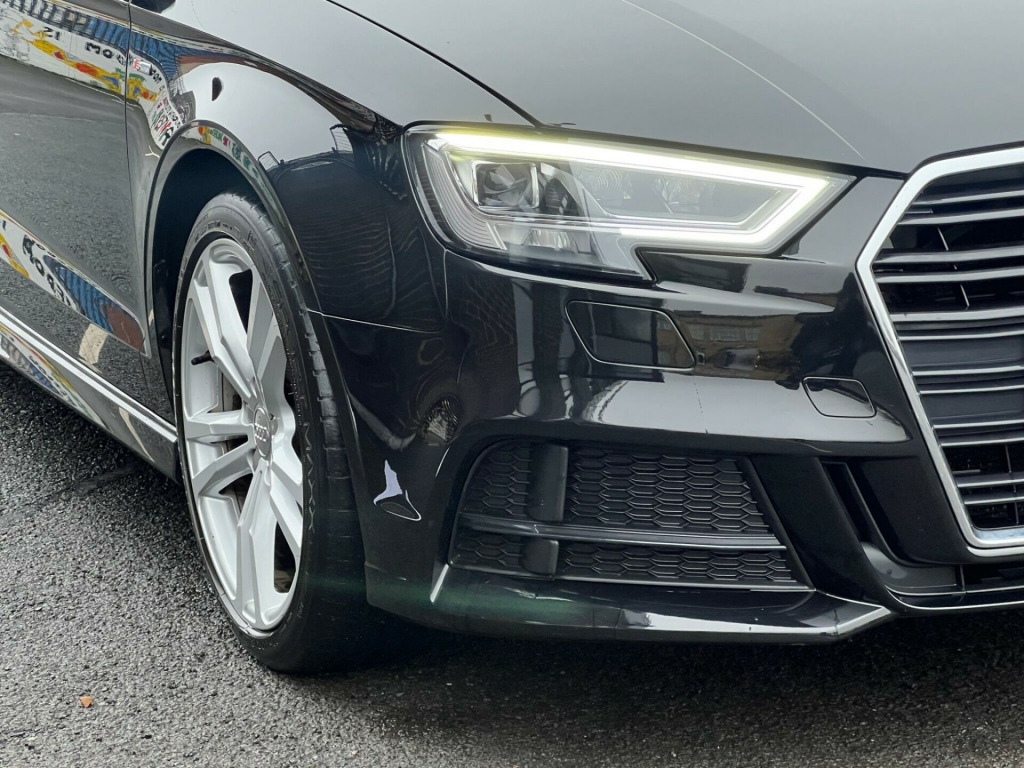 AUDI A3 -1.0 PETROL - S LINE - MANUAL - DONE 90920 MILES - IN BLACK - WITH GREY CLOTH / PART LEATHER - PARTIAL SERVICE HISTORY - LONG MOT - SAT NAV - CRUISE CONTROL - REAR PARKING SENSORS - PARKING HOLD BRAKE - FLAT BOTTOM STEERING WHEEL - MULTIFUNCTION STEERING WHEEL - AUTO LIGHTS - 18 INCH ALLOY WHEELS - AIR CON - FINANCE AVAILABLE - WARRANTY PROVIDED - NATIONWIDE DELIVERY SERVICE CAN BE ARRANGED - RESERVE TODAY WITH A £99 DEPOSIT - VIEW MANY MORE CARS ON - WWW.MOTOPORIUM.COM. 18in Alloy Wheels - 5-Parallel Spoke Design with Diamond Cut Finish, 2 x USB Charging Ports and 1 x AUX-IN, 6-Airbag System with Knee Airbag for Driver, Aluminium Interior Elements, Aluminium Window Trims, Anti Theft Locking Wheel Bolts, Anti-Theft Alarm, Audi Connect, Audi Connect Infotainment Services - 3 Month Trial, Audi Drive Select, Audi Smartphone Interface, Audi Sound System, Auto-Dimming Rear-View Mirror with Light and Rain Sensor, Bluetooth Interface, Body Coloured Door Mirrors, CD Drive, Chrome-Plated Exhaust Tailpipe Trim, Cloth Headlining in Black, Colour Drivers Information System - DIS, Cruise Control, DAB Digital Radio, Door Mirrors - Electrically Adjustable and Heated with Integrated LED Side Indicators, Dual-Zone Electronic Climate Control, ESC - Electronic Stabilisation Control inc ABS - ASR and EDL, Electric Windows - Front, Electromechanical Parking Brake, Electromechanical Power Steering, First Aid Kit and Warning Triangle, Front Centre Armrest, Front and Rear Floor Mats, Heated Windscreen Washer Jets, Hill Hold Assist, ISOFIX Child Seat Mounting and Top Tether, Illuminated Door Sill Trims with S Logo, Inlays - Matt Brushed Aluminium, LED Headlights with LED Rear Lights and Dynamic Rear Indicators, LED Interior Light Package, Lashing Points in Luggage Compartment, MMI Navigation - SD Card Based, MMI Radio Plus with 7in Electrically Retractable Colour MMI Screen, Model and Engine Technology Badges at Rear, Non-Smoking Package, Pedals - Brushed Stainless Steel, Rear Parking Sensors, S Line Badges on Front Wings, S Line Design Body Styling, Seat Belt Monitoring, Split Folding Rear Seat Bench - 60-40 or Fully, Sport Side Air Inlet Grille and Diffuser Insert, Sport Suspension, Steering Wheel - 3-Spoke Leather-Multifunction-Flat Bottomed, Storage Compartments in the Door Side Trims-Centre Console-Under Drivers Seat, Storage Package, Tool Kit, Tyre Pressure Warning Light, Tyre Repair Kit.