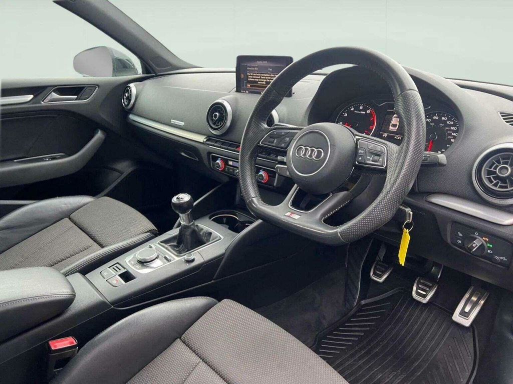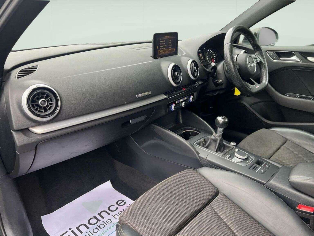 Audi A3 1.0 Petrol S Line manual, finished in black with a grey cloth and part leather interior. This stylish hatchback has covered 90,920 miles and comes with partial service history and a long MOT, offering great value and peace of mind.The S Line specification includes satellite navigation, cruise control, rear parking sensors, hill hold assist, air conditioning and 18-inch alloy wheels. Interior features include a flat-bottom multifunction steering wheel and auto lights, combining sporty design with everyday comfort.Well known for its refined drive and efficiency, the A3 is an ideal choice for commuters or those looking for a practical yet premium hatchback. Finance options are available, warranty is provided, and nationwide delivery can be arranged. Reserve today with just a £99 deposit.???? Call now for further information.???? View many more cars on request.. 18in Alloy Wheels - 5-Parallel Spoke Design with Diamond Cut Finish, 2 x USB Charging Ports and 1 x AUX-IN, 6-Airbag System with Knee Airbag for Driver, Aluminium Interior Elements, Aluminium Window Trims, Anti Theft Locking Wheel Bolts, Anti-Theft Alarm, Audi Connect, Audi Connect Infotainment Services - 3 Month Trial, Audi Drive Select, Audi Smartphone Interface, Audi Sound System, Auto-Dimming Rear-View Mirror with Light and Rain Sensor, Bluetooth Interface, Body Coloured Door Mirrors, CD Drive, Chrome-Plated Exhaust Tailpipe Trim, Cloth Headlining in Black, Colour Drivers Information System - DIS, Cruise Control, DAB Digital Radio, Door Mirrors - Electrically Adjustable and Heated with Integrated LED Side Indicators, Dual-Zone Electronic Climate Control, ESC - Electronic Stabilisation Control inc ABS - ASR and EDL, Electric Windows - Front, Electromechanical Parking Brake, Electromechanical Power Steering, First Aid Kit and Warning Triangle, Front Centre Armrest, Front and Rear Floor Mats, Heated Windscreen Washer Jets, Hill Hold Assist, ISOFIX Child Seat Mounting and Top Tether, Illuminated Door Sill Trims with S Logo, Inlays - Matt Brushed Aluminium, LED Headlights with LED Rear Lights and Dynamic Rear Indicators, LED Interior Light Package, Lashing Points in Luggage Compartment, MMI Navigation - SD Card Based, MMI Radio Plus with 7in Electrically Retractable Colour MMI Screen, Model and Engine Technology Badges at Rear, Non-Smoking Package, Pedals - Brushed Stainless Steel, Rear Parking Sensors, S Line Badges on Front Wings, S Line Design Body Styling, Seat Belt Monitoring, Split Folding Rear Seat Bench - 60-40 or Fully, Sport Side Air Inlet Grille and Diffuser Insert, Sport Suspension, Steering Wheel - 3-Spoke Leather-Multifunction-Flat Bottomed, Storage Compartments in the Door Side Trims-Centre Console-Under Drivers Seat, Storage Package, Tool Kit, Tyre Pressure Warning Light, Tyre Repair Kit.