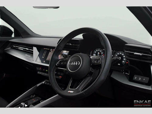 This 2021 Audi A3 TFSI S line boasts a single owner and a clear vehicle history check, offering you peace of mind. This stylish A3 features a 1.0 litre petrol engine, meeting Euro 6 emissions standards, and is presented in the desirable S line trim. It comes equipped with an impressive Comfort and Sound Package, which includes a luxury branded sound system, front and rear parking sensors, a rear camera, and heated seats for ultimate comfort. Further enhancing its appeal are the striking 18 inch 5 spoke V-style diamond cut alloy wheels and advanced LED headlights with dynamic rear indicators. Experience exceptional fuel economy with this Audi A3, achieving a highlight of 53 miles per gallon, and benefit from its low CO2 emissions. The dual zone electronic climate control ensures a comfortable cabin temperature for all occupants, while the Bluetooth interface allows for seamless connectivity on the go. These features, combined with its efficient performance and premium Audi S line styling, make this A3 a standout choice compared to other vehicles in its class. Mythos Black, Comfort and Sound Package, 18in Alloy Wheels - 5-Spoke V-Style - Di, 12v Socket and Storage Compartment in Fr, 18in Alloy Wheels - 5-Arm Dynamic Design, 2 USB-C Ports with Charge and Data Funct, 6 Passive Loudspeakers, Airbags - Driver and Front Passenger wit, Aluminium Interior Elements, Aluminium Window Trims, Anti Theft Locking Wheel Bolts, Anti-Theft Alarm, Audi Connect Emergency Call and Service, Audi Connect Navigation and Infotainment, Audi Drive Select, Audi Pre-Sense Front with Pedestrian and, Audi Smartphone Interface, Audi Virtual Cockpit, Auto Dimming and Frameless Rear View Mir, Automatic Start-Stop System with Recuper, Bluetooth Interface, Body Coloured Door Mirro