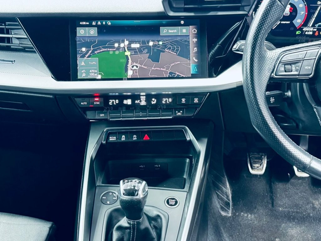 Audi A3 1.0 TFSI 30 S line Sportback 5dr Petrol Manual Euro 6 (s/s) (110 ps) Registration: WP70ZPM | 45,000 miles | Service History | Mythos Black A smart and sporty Audi A3 S line Sportback offering efficient petrol performance, sharp styling and everyday usability. Powered by the 1.0 TFSI engine producing 110 ps and paired with a smooth manual gearbox, this A3 delivers a lively yet economical drive with the premium feel expected from Audi. Fully Euro 6 compliant and ULEZ friendly. Key Features 1.0 TFSI petrol engine producing 110 ps Manual transmission S line styling and interior enhancements Euro 6 – ULEZ compliant Touchscreen infotainment system Bluetooth and media connectivity Cruise control Air conditioning Sport seats with S line detailing LED daytime running lights Practical 5 door Sportback layout Optional Equipment Mythos Black metallic paint Dark spectrum aluminium interior inlays Twin leather upholstery with S embossing in black Warranty Warranty packages available for additional cost. HPI & Finance HPI clear. Finance available with flexible packages. Part exchange welcome. Dealer Statement Nationwide delivery available. Get in touch for a walk-around video, test drive or more information. *Preparation fee £199 added to the list price of the vehicle. Mythos Black, 12v Socket and Storage Compartment in Fr, 18in Alloy Wheels - 5-Arm Dynamic Design, 2 USB-C Ports with Charge and Data Funct, 6 Passive Loudspeakers, Airbags - Driver and Front Passenger wit, Aluminium Interior Elements, Aluminium Window Trims, Anti Theft Locking Wheel Bolts, Anti-Theft Alarm, Audi Connect Emergency Call and Service, Audi Connect Navigation and Infotainment, Audi Drive Select, Audi Pre-Sense Front with Pedestrian and, Audi Smartphone Interface, Audi Virtual Cockpit, Auto Dimming and Frameless Rear View Mir, Automatic Start-Stop System with Recuper, Bluetooth Interface, Body Coloured Door Mirrors, Cloth Headlining in Black, Collision Avoidance Assistant, Cruise