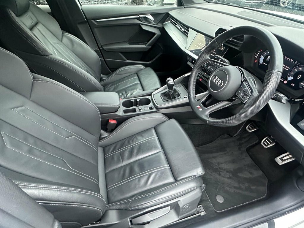 This 2024 Audi A3 TFSI S line is a superb example, boasting a clear vehicle history and having been owned by just one person. This stylish hatchback features a responsive 1.0 litre petrol engine, meeting Euro 6 emissions standards, and comes equipped with striking LED headlights and dynamic rear indicators for enhanced visibility. Inside, you'll appreciate the convenience of a light and rain sensor that automatically activates the headlights, along with rear parking sensors to assist with manoeuvring. Stay connected effortlessly with the integrated Bluetooth interface, and enjoy personalised comfort thanks to the dual zone electronic climate control. The Audi A3 TFSI S line offers a compelling blend of performance and practicality. Its acceleration from 0 to 60 miles per hour in 10.6 seconds demonstrates its agile nature, making it a capable performer on the road. This particular model also benefits from a large boot space, providing ample room for shopping, luggage, or sports equipment, setting it apart from many other vehicles in its class. The combination of its single owner provenance, comprehensive features, and practical design makes this A3 a truly attractive proposition. Please call our sales team for availability or to reserve. We can arrange the best finance deal to suit your budget and take your old car in part exchange. Viewings are strictly appointment only at our dealership. 12v Socket and Storage Compartment in Fr, 18in Alloy Wheels - 5-Arm Dynamic Design, 2 USB-C Ports with Charge and Data Funct, 3-Spoke Leather Multi-Function Steering , 4-Way Lumbar Support for Front Seats, 6 Passive Loudspeakers, Airbags - Driver and Front Passenger wit, Aluminium Interior Elements, Aluminium Window Trims, Anti Theft Locking Wheel Bolts, Anti-Theft Alarm, Audi Connect Navigation and Infotainment, Audi Drive Select, Audi Pre-Sense Front with Pedestrian and, Audi Smartphone Interface, Audi Virtual Cockpit, Auto Dimming and Frameless Rear View Mir, Bluetooth Interface, Body Coloured Door Mirrors, Camera Based Traffic Sign Recognition, Cloth Headlining in Black, Collision Avoida