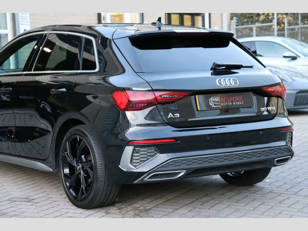 We are pleased to offer this is 2023 Audi A3 1.0 TFSI 30 S Line Sportback, which is finished in Mythos Black. Our example has had 1 owner from new, covered 35,000 miles and benefits from the remainder of the Audi Warranty which runs until May 2026. This car has features including: 18" Gloss Black Alloys, Audi Virtual Cockpit, Acoustic Rear Parking Sensors, Apple CarPlay/Android Auto and Cruise Control. As part of this cars preparation before sale we have fitted two brand new front tyres and performed an oil service. **Cash Price £21,495.00, £2,625.00 Deposit, 48 Monthly Payments of £299.99 Guaranteed Future Minimum Value of £10,181.18, Based on 8,000 Miles Per Annum at 9.9% APR** (a) **FOR AUTOTRADER APP USERS, PLEASE SEE THE BELOW TAB 'THIS CAR COMES WITH' TO SEE THE OTHER SPEC'S ON THIS CAR OR VISIT OUR WEBSITE FOR MORE INFO** Mythos Black, Twin Leather - Front Sport Seats with S , Acoustic Rear Parking Sensors, Apple CarPlay/Android Auto, Audi Virtual Cockpit, Bluetooth, Cruise Control, DAB Radio, Dual Zone Climate Control, Electric Folding & Heated Wing Mirro, Lane Assist, Satellite Navigation, 18" Gloss Black Alloys