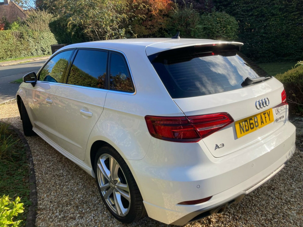 This 2018 Audi A3 TFSI S line presents an exceptional opportunity with its remarkably low mileage of just 31,000 miles. This Euro 6 compliant model boasts a responsive 1.0 litre petrol engine, offering an engaging driving experience with a 0-62mph acceleration time of 9.9 seconds. The S line trim enhances its appeal, and you'll appreciate the convenience of rear parking sensors, a Bluetooth interface for seamless connectivity, and an auto dimming rear view mirror that works in conjunction with the automatic headlights. This lovely little a3 has been in the last lady's ownership since 2022. It's a stunning example that's comes with 2 keys and has been serviced twice by Audi. The last one was done at 27k in December 23. We will be giving this one a service before sale. It will also have a fresh mot. Further enhancing your journey, this Audi A3 features striking LED headlights with dynamic rear indicators and LED rear lights, ensuring excellent visibility. Inside, the dual zone electronic climate control allows for personalised comfort for both driver and passenger. The generous boot space provides ample room for luggage or shopping, making it a practical choice for everyday use. These carefully selected features, combined with its low mileage, position this Audi A3 as a superior option compared to other vehicles in its class., in alloy wheels - 5-parallel spoke design with diamond cut finish, 2 x usb charging ports and 1 x aux-in, 6-airbag system with knee airbag for driver, aluminium interior elements, aluminium window trims, anti theft locking wheel bolts, anti-theft alarm, audi connect, audi connect infotainment services - 3 month trial, audi drive select, audi smartphone interface, audi sound system, auto-dimming rear-view mirror with light and rain sensor, bluetooth interface, body coloured door mirrors, cd drive, chrome-plated exhaust tailpipe trim, cloth headlining in black, colour drivers information system - dis, cruise control, dab digital radio, door mirrors - electrically adjustable and heated with integrated led side indicators, dual-zone electronic climate control, esc - electronic stabilisation control inc abs - asr and edl, electric windows - front and rear, electromechanical parking brake, electromechanical power steering, first aid kit and warning triangle, front centre armrest, front and rear floor mats, heated windscreen washer jets, hill hold assist, isofix child seat mounting and top tether, illuminated door sill trims with s logo, inlays - matt brushed aluminium, led headlights with led rear lights and dynamic rear indicators, led interior light package, lashing points in luggage compartment, mmi navigation - sd card based, mmi radio plus with 7in electrically retractable colour mmi screen, manual seat adjustment, non-smoking package, pedals in stainless steel, rear parking sensors, remote central locking with 2 fold away keys, s line badges on the front wings, s line design body styling, seat belt monitoring, split folding rear seat bench - 60-40 or fully, sport suspension, steering wheel - 3-spoke leather-multifunction-flat bottomed, storage compartments in the door side trims-centre console-under drivers seat, storage package, tool kit, tyre pressure warning light, tyre repair kit, voice control system