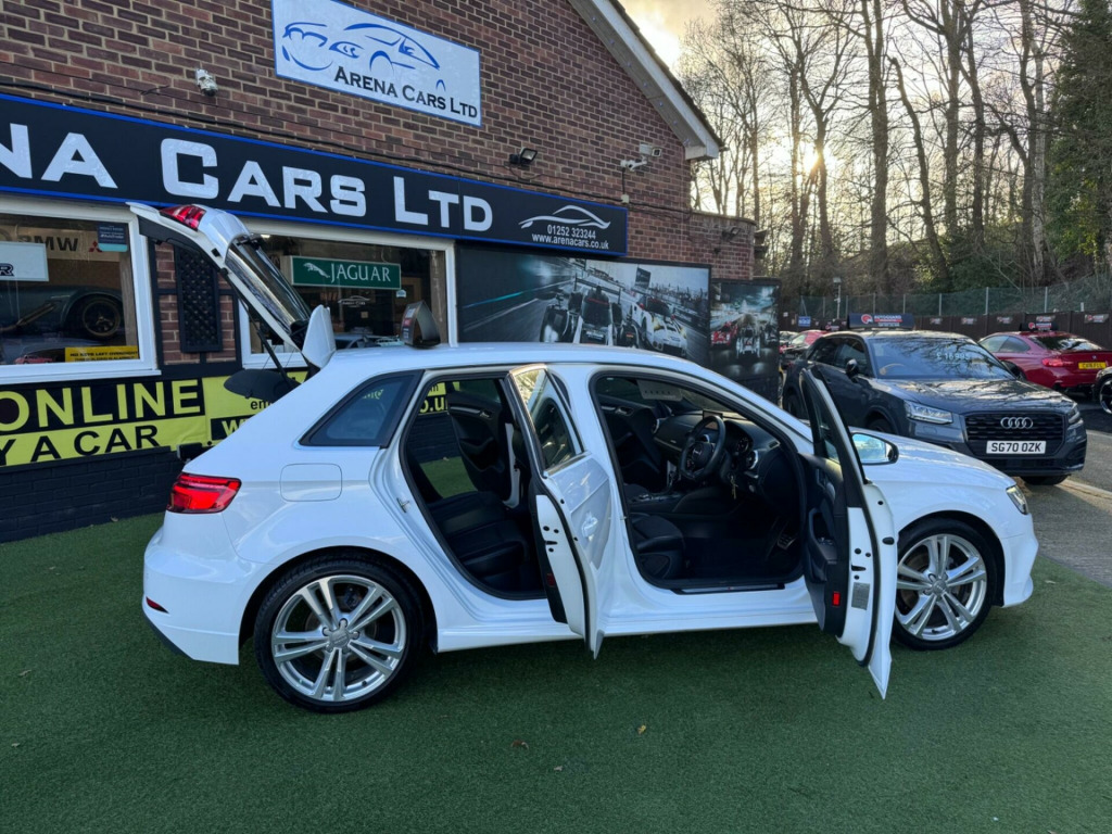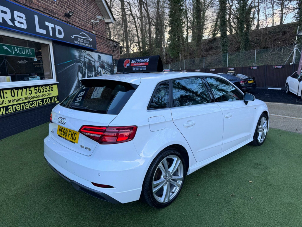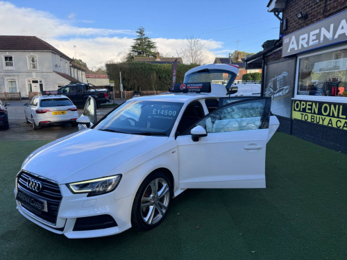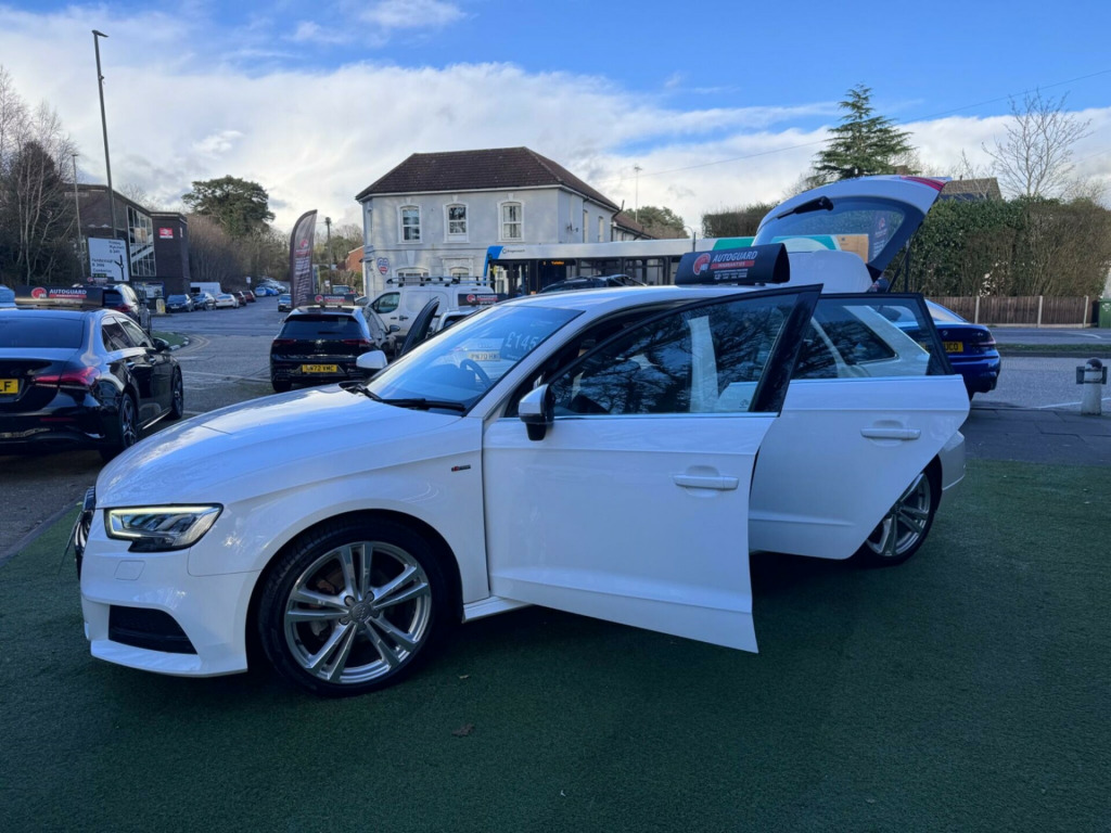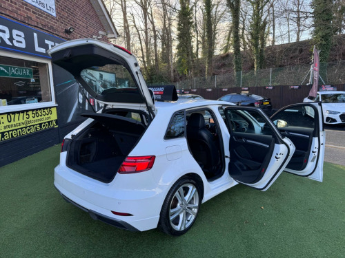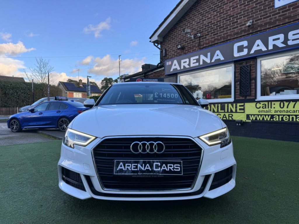 6 months or 12 months warranty available on this car. Finance available subject to status. Rear Parking SensorsCruise ControlSat NavBluetooth & AudioDrive SelectLow Insurance GroupDigital Dual Zone Climate Controlled Air ConFlappy Paddles18'' Diamond Cut & Silver AlloysAuto Lights - XenonsRear DiffuserMulti Functional Flat Bottom Steering WheelRear SpoilerAuto HoldService HistoryStop StartIsofixTraction ControlElectric & Heated Door MirrorsDAB/FM RadioAndroid AutoSide SkirtsAlarmImmobiliserAuto Wipers1/2 Black Leather TrimHeated Front Seats Cup HoldersTwin Air BagsSide Air BagsHeadlight WashersPASRear HeadrestsElectric WindowsCD PlayerSD x 2SimUsb x 2Aux InFront Centre ArmrestAero WipersSpace Saver Spare WheelThis 2018 Audi A3 TFSI S line boasts a single owner and remarkably low mileage for its age, having covered just 46,000 miles. This Euro 6 compliant 1.0 litre petrol model comes with an MOT valid until September 2026 and a clear vehicle history check, offering peace of mind. The S line trim enhances its appeal, featuring a sporty 3-spoke leather steering wheel with multifunction controls and shift paddles, alongside striking LED headlights with dynamic rear indicators. Convenience is also key, with an auto-dimming rear-view mirror, light and rain sensors, rear parking sensors, and dual-zone electronic climate control.The Audi A3 TFSI S line offers a compelling blend of performance and practicality. Its acceleration from 0-62mph in 9.9 seconds is a testament to its efficient 1.0 litre engine, making it a responsive drive. The generous boot space ensures you have ample room for luggage or shopping, a practical advantage over many similar vehicles. Combined with its low owner count and excellent MOT status, this A3 represents a well maintained and desirable option.. Rear Parking Sensors, Cruise Control, Sat Nav, Bluetooth & Audio, Drive Select, Low Insurance Group, Digital Dual Zone Climate Controlled Air Con, Flappy Paddles, 18'' Diamond Cut & Silver Alloys, Auto Lights - Xenons, Rear Diffuser, Multi Functional Flat Bottom Steering Wheel, Rear Spoiler, Auto Hold, Service History, Stop Start, Isofix, Traction Control, Electric & Heated Door Mirrors, DAB/FM Radio, Android Auto, Side Skirts, Alarm, Immobiliser, Auto Wipers, 1/2 Black Leather Trim, Cup Holders, Twin Air Bags, Side Air Bags, Headlight Washers, PAS, Rear Headrests, Electric Windows, CD Player, SD x 2, Sim, Usb x 2, Aux In, Front Centre Armrest, Aero Wipers, Space Saver Spare Wheel, Heated Front Seats, Leather-Alcantara - S Embossed Sports Seats - Black with Rock Grey Stitching.