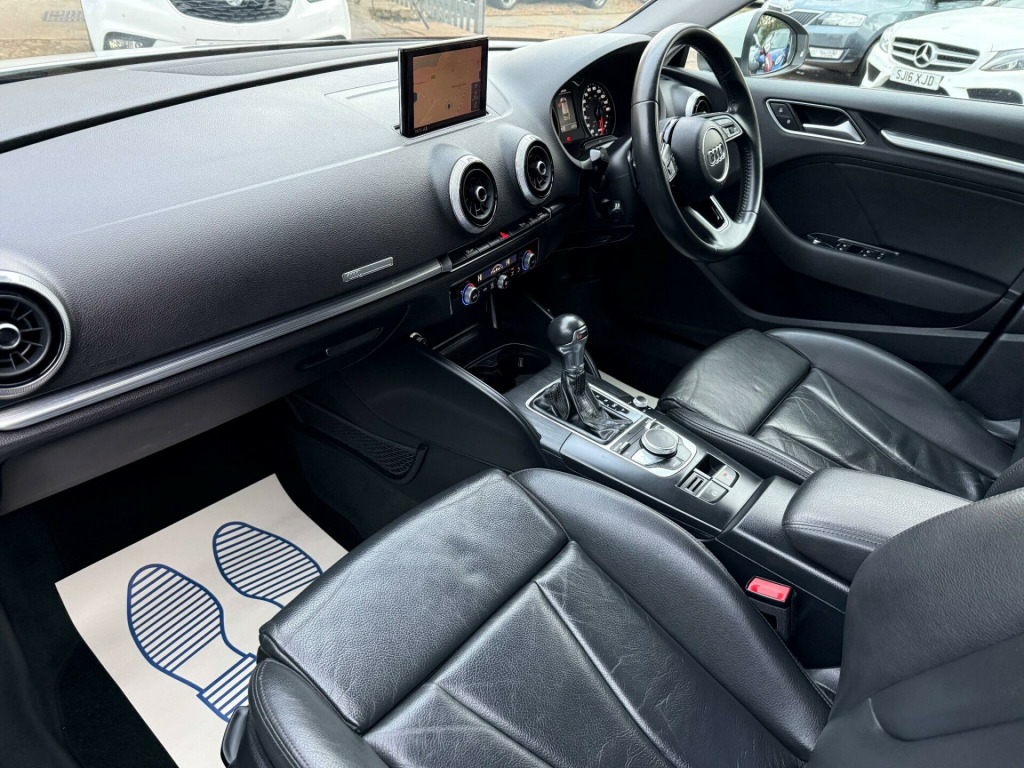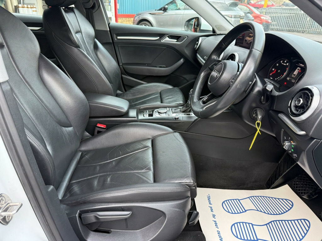 This 2019 Audi A3 TFSI Sport is presented with a clear vehicle history check, offering you peace of mind. This stylish hatchback features a 1.0 litre Euro 6 compliant petrol engine, ensuring efficient performance. The Sport trim level enhances its appeal, and you'll appreciate the convenience of rear parking sensors and the sophisticated Xenon headlights with LED daytime running lights. Inside, the cabin is designed for comfort with dual zone electronic climate control and an auto dimming rear view mirror that activates with the light and rain sensor.The multi function, three spoke leather sports steering wheel includes shift paddles, allowing for an engaging driving experience with a 0-62mph acceleration time of 9.9 seconds. This Audi A3 also boasts a large boot space, making it a practical choice for everyday use and longer journeys. These features collectively demonstrate how this particular Audi A3 TFSI Sport offers a superior combination of technology, comfort, and practicality compared to other vehicles in its class. in alloy wheels - 5-arm design, 2 x usb charging ports and 1 x aux-in, 6-airbag system with knee airbag for driver, 8 passive speakers, aluminium interior elements, aluminium window trims, anti theft locking wheel bolts, anti-theft alarm, audi connect, audi connect infotainment services - 3 month trial, audi drive select, audi smartphone interface, auto-dimming rear-view mirror with light and rain sensor, bluetooth interface, body coloured door mirrors, cd drive, chrome-plated exhaust tailpipe trim, cloth headlining, colour drivers information system - dis, cruise control, dab digital radio, door mirrors - electrically adjustable and heated with integrated led side indicators, door sill trims with aluminium inlay, dual-zone electronic climate control, dynamic suspension, esc - electronic stabilisation control inc abs - asr and edl, electric windows - front and rear, electromechanical parking brake, electromechanical power steering, first aid kit and warning triangle, front centre armrest, front sport seats, front and rear floor mats, heated windscreen washer jets, hill hold assist, isofix child seat mounting and top tether, inlays - aluminium mistral silver, interior lighting, lashing points in luggage compartment, mmi navigation - sd card based, mmi radio plus with 7in electrically retractable colour mmi screen, manual seat adjustment, model and engine technology badges at rear, non-smoking package, radiator grille - matt black, rear parking sensors, remote central locking with 2 fold away keys, roof spoiler - painted in body colour with aerodynamic inserts in high-gloss black at the side, seat belt monitoring, split folding rear seat bench - 60-40 or fully, sport side air inlet grille and diffuser insert, steering wheel - 3-spoke leather - multi-function - sports - shift paddles, storage compartments in the door side trims-centre console-under drivers seat, storage package, tool kit, tyre pressure warning light, tyre repair kit, voice control system, xenon headlights with led daytime running lights