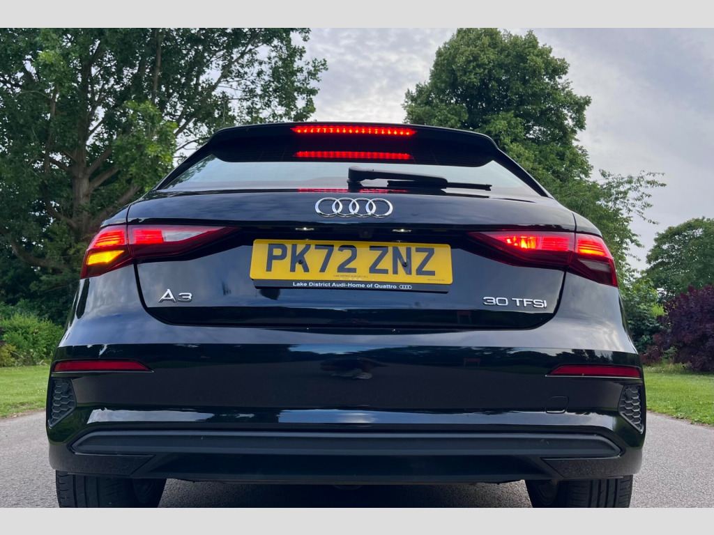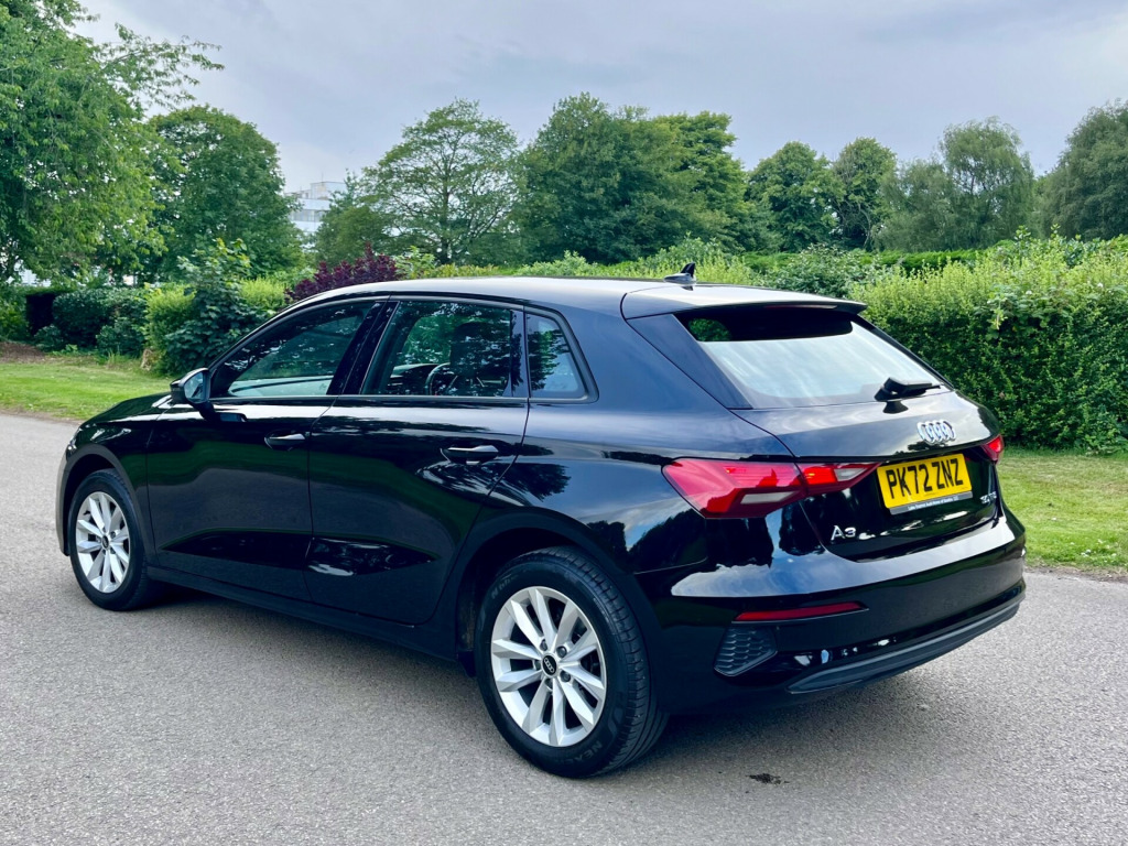 SEPTEMBER SALE!!! Valid until 19th Friday September!1 OWNER FROM NEW !!  FULL MAIN DEALER SERVICE HISTORY !!  LONG MOT - VALID UNTIL 10/07/2026CHEAP INSURANCE !!  GREAT CONDITION !!  BALANCE OF MANUFACTURERS WARRANTY !!  UPGRADED MYTHOS BLACK METALLIC !!  10'3'' MULTIFUNCTIONAL TOUCH SCREEN !!  LEATHER MULTIFUNCTIONAL STEERING WHEEL !!  SAT NAV !!  LANE DEPARTURE WARNING !!  PARKING RADAR !!  PARKING SENSORS !!  REVERSE CAMERA !!  ADAPTIVE CRUISE CONTROL !!  PUSH BUTTON START !!  ELECTRIC FOLDING HEATED MIRRORS !!  AUTOMATIC HEADLIGHTS !!  AUTOMATIC WIPERS !!  AND MUCH MORE !!This 2022 Audi A3 1.0 TFSI 30 Technik Sportback 5dr Petrol Manual Euro 6 (s/s) (110 ps) is a sleek and efficient hatchback with only 29000 miles on the clock. This stylish vehicle is powered by a petrol engine and comes with 5 seats and 5 doors, making it perfect for small families or daily commuters. Not only is it ULEZ compliant, but it also boasts a range of convenient features including Index Cloth - Black interior, a reversing camera, 12v Socket and Storage Compartment in Front Centre Console, 16in Alloy Wheels - 5-Double Arm Design, and 2 USB-C Ports with Charge and Data Functions. With its modern design and impressive performance, this Audi A3 is the perfect blend of style and practicality for any driver looking for a reliable and efficient vehicle.,  v socket and storage compartment in front centre console, 2 usb-c ports with charge and data functions, 6 passive loudspeakers, audi connect emergency call and service, audi connect navigation and infotainment services plus - 3 year subscription, audi smartphone interface, bluetooth interface, dab digital radio, emergency call - e-call, mmi navigation plus with high resolution 10.1in touchscreen colour display, 2xusb-c connection with data and charging functions, 16in alloy wheels - 5-double arm design, anti theft locking wheel bolts, black window trims, body coloured door mirrors, body-coloured roof spoiler, electric windows - front, exterior mirrors - electrically adjustable - heated and folding - automatically dimming on both sides with built-in led side indicators - including automatic kerb-side function for the passenger-side, front spoiler blade in body colour, manual boot compartment lid, radiator grille and frame in grained matt black and honeycomb look, rear diffuser - grained matt black, rear side air outlets - grained matt black, rear window - rear door windows and rear side windows in clear glass, side air inlets in grained matt black, tyre repair kit, windscreen with acoustic glazing, airbags - driver and front passenger with passenger airbag deactivation, anti-theft alarm, audi pre-sense front with pedestrian and cyclist recognition, esc - electronic stabilisation control inc abs - asr and edl, electronically operated child locks, first aid kit and warning triangle and 2 safety vests, front side airbags with head airbags and interaction airbag, hill hold assist, i-size and top tether child seat mounting for the outer rear seats, remote central locking, seat belt monitoring, audi virtual cockpit, auto dimming and frameless rear view mirror, cloth headlining in steel grey, front centre armrest, front and rear floor mats, inlays - silk effect paint in platinum grey, interior lighting, luggage compartment floor covering, manual air conditioning, manual front seat adjustment, split folding rear seat bench - 60-40 or fully, steering wheel - 3-spoke leather-multi-function, tool kit, manually adjustable front seats, automatic start-stop system with recuperation, collision avoidance assistant, cruise control, electromechanical power steering, lane departure warning, standard suspension, tyre pressure loss indicator, voice control system with natural language interaction, audi virtual cockpit - 10.25'' digital and colour instrument cluster, automatic start/stop system with recuperation, lane departure warning system, mmi navigation plus with high resolution 10.1'' colour touch screen display, rear parking sensors, trip computer, led headlights with led daytime-running lights - halogen lights in the rear, light and rain sensor