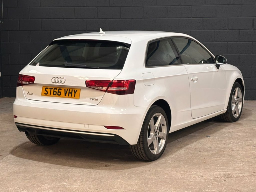 We recently purchased this lovely Audi A3 directly from its most recent owner in part exchange. It looks great finished in white with a grey cloth interior. It is in great condition, both inside and out and is a credit to its previous owners. The car drives exactly as you would expect and really is a joy to drive. The 1.0, 116 Bhp petrol engine is ULEZ compliant & gives great economy with up to 68mpg and the added benefit of just £20 road tax! It comes with service history at 24k, 33k, 34k,, 39k, 44k plus a recent service by us at 52k as part of our pre sale preparation. It also comes with a fresh 12 month MOT without advisories. There is an excellent equipment level with key features such as Satellite Navigation / Bluetooth / DAB Radio / Audi Drive Select / Electric Windows / Electric Mirrors / Alloy Wheels / Air Conditioning & much, much more.. We think this car represents great value for money and will not disappoint any prospective buyer. Please call for more details. 2 x USB Charging Ports and 1 x AUX-IN, 8 Passive Speakers, Audi Connect Infotainment Services - 3 M, Audi Smartphone Interface, Bluetooth Interface, CD Drive, DAB Digital Radio, MMI Navigation - SD Card Based, MMI Radio Plus with 7in Electrically Ret, 17in Alloy Wheels - 5-Arm Design, Aluminium Window Trims, Anti Theft Locking Wheel Bolts, Body Coloured Door Mirrors, Chrome-Plated Exhaust Tailpipe Trim, Door Mirrors - Electrically Adjustable a, Electric Windows - Front, Radiator Grille - Matt Black, Roof Spoiler - Painted in Body Colour wi, Space Saver Spare Wheel, Sport Side Air Inlet Grille and Diffuser, Aluminium Interior Elements, Door Sill Trims with Aluminium Inlay, Dual-Zone Electroni