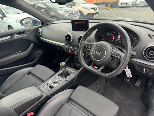 Here is a lovely example of our Audi A3 S Line which comes with the full S Line pack which includes S Line Alloys, S Line interior, ECO & Sports driving modes, Bluetooth Music & Phone, DAB Digital Radio, twin exhausts, S Line exterior body styling, Sport Suspension, leather S Line sports steering wheel, Voice Control, a free 3 month warranty & a brand new full 12 month MOT with NO advisories. We do a FREE Experian HPI Check on every vehicle. We have a huge selection of over 250 cars to choose from & are open 7 days a week. WARRANTY Every car comes with a 3 month parts & labour warranty that can be extended upon request. MOT We complete a full 12 month MOT that will be carried out at the point of sale. You don't have to worry about the previous MOT as we will do a fresh one for you & complete any previous or current advisories. HPI All of our cars have a full HPI check. If any of our cars are showing on finance or any mileage discrepancies then just give us a call as usually Experian just forget to update their system which can always be rectified. VOSA All of our cars have an up to date VOSA history check. PART EXCHANGE We can take your old car in as part exchange no matter what the condition. LOCATION We are situated just opposite the entrance to the old Federation Brewery in Dunston, just off the A1 Motorway, just to the rear of the Metrocentre in Gateshead. PHOTOS Please visit our website for more photos & a video. We can do a 12V Power Socket - Centre Console, 12V Power Socket - Rear, 18in Alloy Wheels - 5-Parallel Spoke Des, ABS - Anti-Lock Braking System, Active Bonnet, Adaptive Brake Lights, Air Vent Sleeves - Aluminium Look, Airbags - Driver, Airbags - Drivers Knee, Airbags - Front Passenger, Airbags - Front Side, Airbags - Head Level Side For Front and , Alarm - Thatcham Category 1, Aluminium Interior Elements, AMI - Audi Music Interface, Anti Theft Locking Wheel Bolts, ASR - Anti Slip Regulation, Audi Drive Select, Car Jack, Chrome-Plated Exhaust Tailpipe Trim, Cloth Headlining in Black, Coat Hooks - B Pillar - Both Sides, Colour Drivers Information System - DIS, Cup Holders - Rear x2, Cup Holders - x2 in C