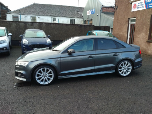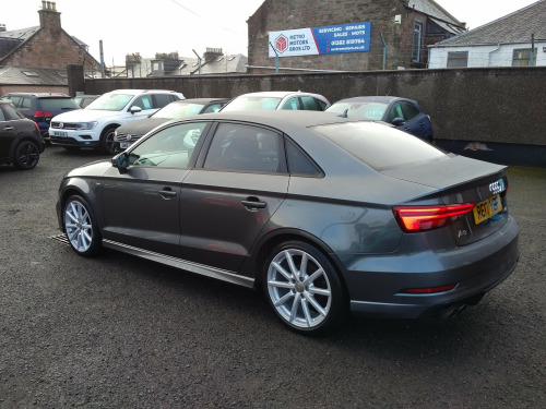 This 2017 Audi A3 TFSI Black Edition offers exceptional value with its comprehensive service history and a generous 6 months warranty for your peace of mind. This stylish saloon, featuring the sought after Black Edition trim, is powered by an efficient 1.4 litre petrol engine that meets Euro 6 emissions standards. With a low mileage of just 61,564 miles for its age, this A3 is in excellent condition. Notable features include rear parking sensors for easier manoeuvring, headlight washers, and an automatic light and rain sensor system. Inside, youll appreciate the dual zone electronic climate control and the advanced LED headlights with dynamic rear indicators. , The Audi A3 TFSI Black Edition stands out with its impressive fuel economy, achieving up to 59 miles per gallon, which is a significant advantage for keeping running costs down compared to many other vehicles in its class. Its low CO2 emissions further contribute to its economical profile. A 12 month MOT will be provided upon purchase, ensuring the vehicle is roadworthy and ready for your journeys. This combination of low mileage, excellent fuel efficiency, and a strong service record makes this Audi A3 a compelling choice. , 12 Months MOT, 6 Months Warranty, Privacy Glass, Leather Trim, 6 Speed, Sat Nav, Cruise Control, Sports Front Seats/Steering Wheel, Computer System. , Finance Example, , Price £ 13495	, Deposit £ 995, Amount of Credit £ 12500, Monthly Payment £ 268.02, Term 60 Months, APR 10.9%, Charge for Credit  £ 3582.20, Total Amount Payable £ 17,077.20, , Credit subject to status, , Thank you for viewing our car. Please contact us to arrange an appointment to view the car. All cars at Metro Motors come supplied with a minimum of 12 months MOT and 6 months warranty. An Experian Car Data Report can be produced on request. Part Exchanges are welcome. Nil deposit finance packages are available on all our vehicles and can be taken out over a term of up to 72 months. Subject to status. Please do not hesitate to contact us for more information. www.metromotors.co.uk or [email protected] or 01382 819764