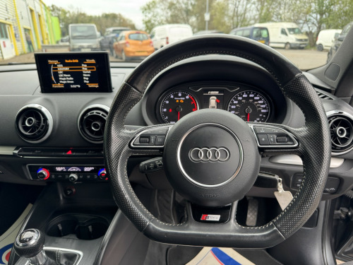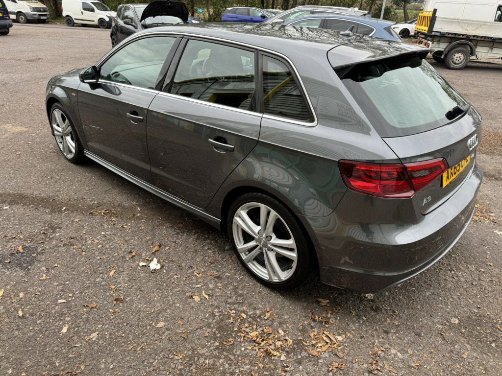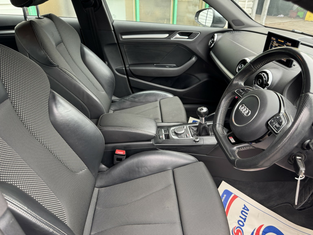 For sale a lovely looking Audi A3 S Line 1.4 TFSI , finished in grey . Just been fully serviced, New cambelt fitted , Comes with 2 keys ,  12 Months MOT & 3 Months warranty. Weekend viewings  available by appointment only, , Vehicle registered: 05/02/2016, , 2 x SDXC Card Readers, AMI - Audi Music Interface, Audio Output - 80 Watts, DAB Digital Radio, Display Screen Colour - 5.8in, Full European Map Data, Mobile Telephone Preparation - Bluetooth Interface, Satellite Navigation System - SD Card Based, Speakers x8, USB Connection, , Drivers Assistance, Audi Drive Select, Rest Recommendation System, Tyre Pressure Monitoring System, Voice Control, Voice Control - Navigation, , Exterior, 18in Alloy Wheels - 5-Parallel Spoke Design Partly Polished, Door Mirrors - Electrically Adjustable and Heated, Fog Lights - High Gloss Black Surrounds, Grey exterior colour, LED Rear Indicators, Model and Engine Technology Badges at Rear, S Line Badges on Front Wings, S Line Body Styling, S line Design Front Bumper-Rear Diffuser-Side Sills and Roof Spoiler, Window Surrounds - Aluminium, , Illumination, Front Fog Lights, Headlights - Automatic Dynamic Range Control, Headlights - Bi-Xenon Plus, Headlights Washers, , Interior, Aluminium Interior Elements, Car Jack, Cloth Headlining in Black, Door Sill Trims with S Line Logo, Dual-Zone Electronic Climate Control, Front Sports Seats, Gear Knob - Perforated Leather, Glovebox - Illuminated, Illuminated Vanity Mirrors, Inlays - Matt Brushed Aluminium, Interior Elements - Air Vents - Aluminium, Interior Elements - Frame Around the Inside Door Handle - Aluminium, Interior Elements - Glove Compartment - Aluminium, Interior Elements - Window Control Switches - Aluminium, Interior Lighting, Pollen Filter, Rear Parcel Shelf Removable, Seats - Adjustment for Cushion Depth, Seats - Extendable Thigh Support, Seats - Split Folding Rear - 60-40, Sun Visors - with Covered Vanity Mirrors, , Performance, EDL - Electronic Differential Lock, Sport Suspension, , Safety and Security, ASR - Anti Slip Regulation, Alarm - Thatcham Category 1, EBD - Electronic Brakeforce Distribution, ESP - Electronic Stability Programme, Electromechanical Parking Brake, First Aid Kit, Front Passenger Airbag Deactivation Switch, Immobiliser, Seat Belt Reminder for All Seats, Secondary Collision Brake Assist, Warning Triangle, Spec, , , Performance, 0-62mph, 8.2 seconds, Top speed, 136mph, Cylinders, 4, Valves, 16, Engine power, 148BHP, Engine torque, 249NM, Miles per gallon, 57.6mpg, , Size and dimensions, Height, 1,425mm, Length, 4,310mm, Width, 1,966mm, Wheelbase, 2,636mm, Seats, 5, Fuel tank capacity, 50L, Boot space (seats down), 1,220L, Boot space (seats up), 380L, Minimum kerb weight, 1,225kg