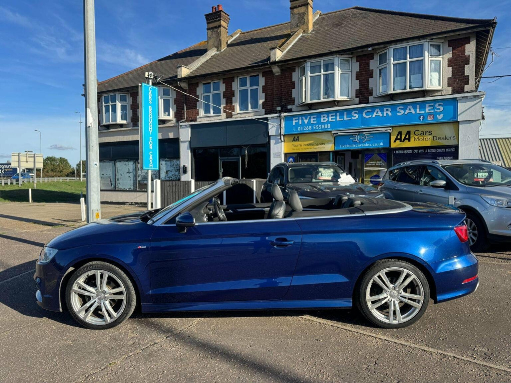 FIVE BELLS CAR SALES HAVE THE PLEASURE IN OFFERING THIS STUNNING AUDI A3 CABRIOLET 1.4 TFSI S-LINE WITH SERVICE HISTORY EURO 6 ULEZ COMPLIANT EXTRAS INCLUDE, SAT NAV, AIR CON, BLUETOOTH, FULL ELECTRIC ROOF, ELECTRIC WINDOWS, HALF BLACK LEATHER, ALLOY WHEELS, ELECTRIC HEATED WING MIRRORS, STUNNING COLOUR, VERY ECONOMICAL DRIVES FAULTLESS,JUST ARRIVED, ANY INSPECTION WELCOME, SUPERB VALUE, LOCATED IN BASILDON JUST OFF A13 PLEASE CALL 01268 555888 AT YOUR CONVENIENCE TO ARRANGE A VIEWING FINANCE AVAILABLE,PX WELCOME, OPEN 7 DAYS, £9475