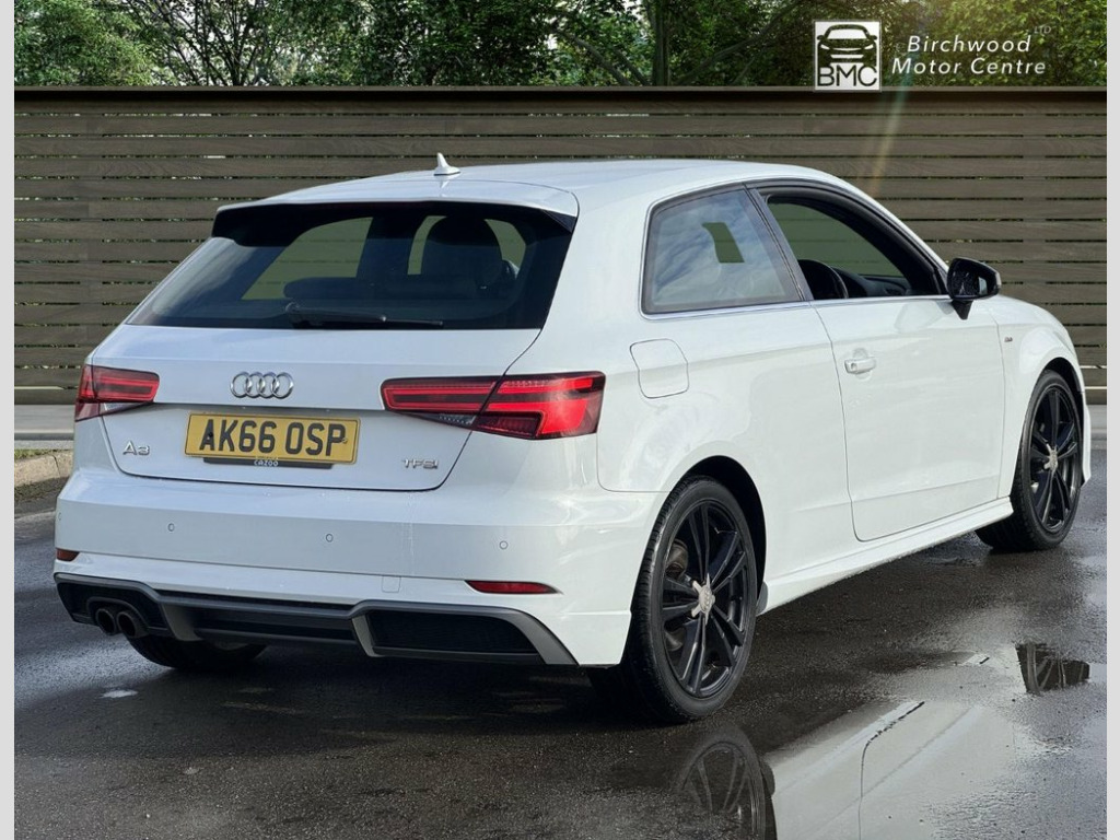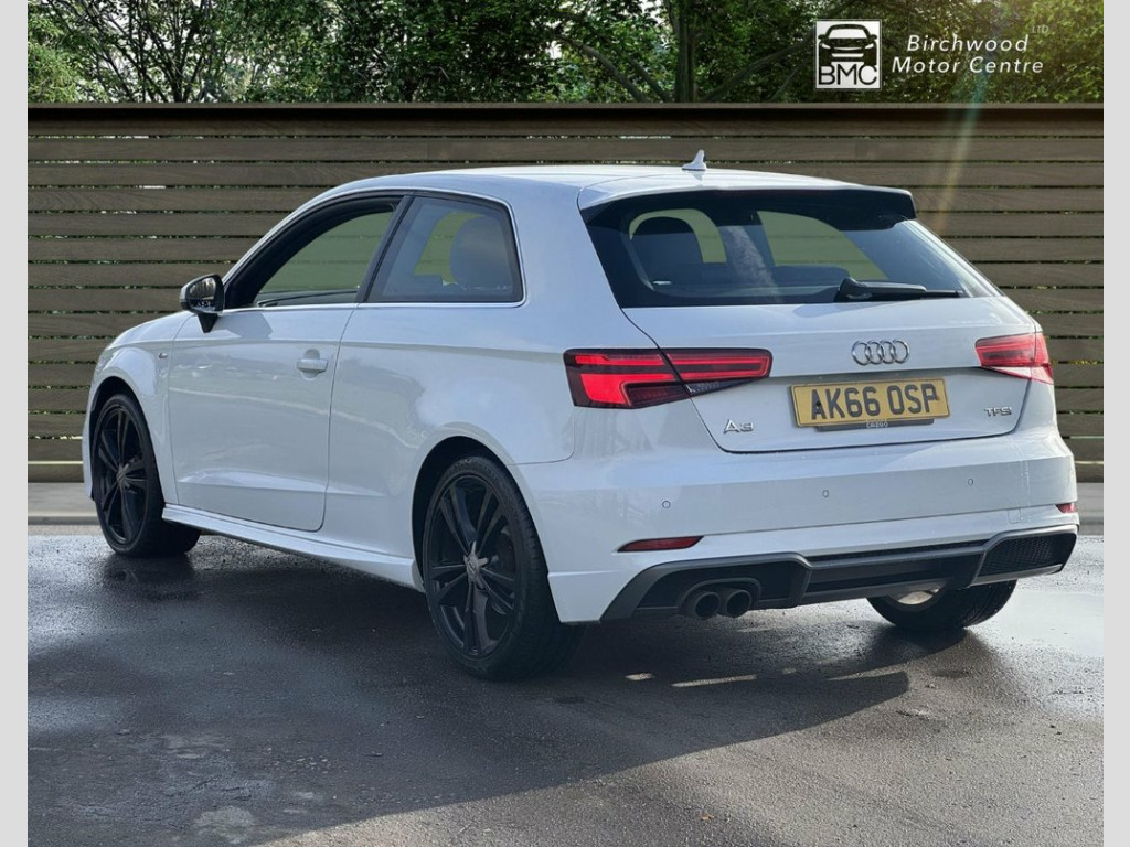 This 2017 Audi A3 TFSI S line is a superb example, having been cherished by only two owners from new. It boasts a responsive 1.4 litre petrol engine and meets the Euro 6 emission standards. Inside, you'll find the comfort of dual zone electronic climate control and the convenience of a Bluetooth interface for seamless connectivity. The S line trim enhances the driving experience, complemented by LED headlights with dynamic rear indicators, and automatic on headlights activated by a light and rain sensor. This Audi A3 offers an impressive fuel economy of 60 miles per gallon, making it an economical choice for your journeys. Its low CO2 emissions further contribute to its efficiency. For those who appreciate performance, it accelerates from 0 to 60 miles per hour in just 8.1 seconds. These highlights demonstrate how this particular A3 stands out, offering a compelling blend of efficiency, technology, and driving pleasure compared to other vehicles in its class. 18in Alloy Wheels - 5-Parallel Spoke Des, 2 x USB Charging Ports and 1 x AUX-IN, 6-Airbag System with Knee Airbag for Dri, 8 Passive Speakers, Aluminium Interior Elements, Aluminium Window Trims, Anti Theft Locking Wheel Bolts, Anti-Theft Alarm, Audi Connect Infotainment Services - 3 M, Audi Drive Select, Audi Smartphone Interface, Bluetooth Interface, Body Coloured Door Mirrors, CD Drive, Chrome-Plated Exhaust Tailpipe Trim, Cloth Headlining in Black, Colour Drivers Information System - DIS, Cruise Control, DAB Digital Radio, Door Mirrors - Electrically Adjustable a, Dual-Zone Electronic Climate Control, Electric Windows - Front, Electromechanical Parking Brake, Electromechanical Power Stee