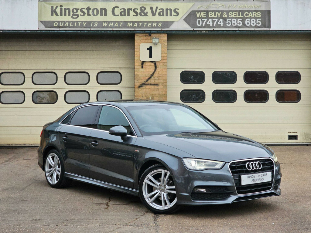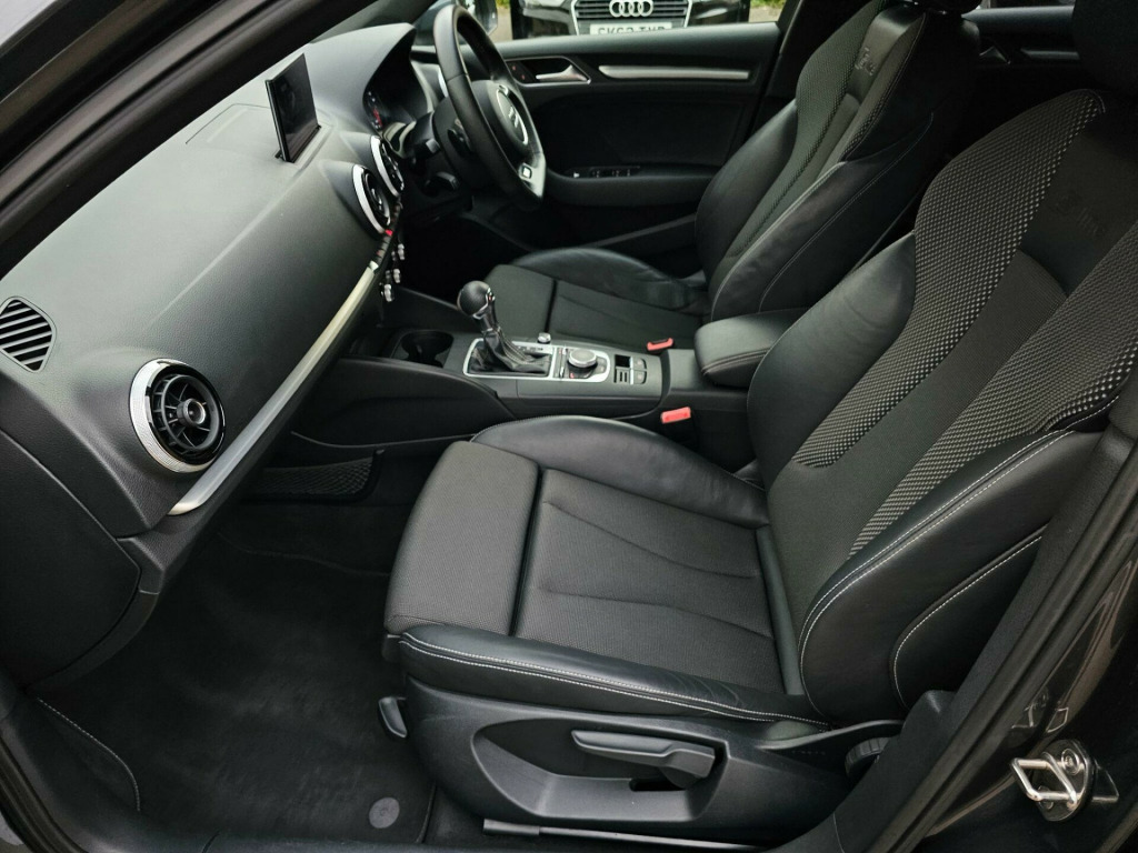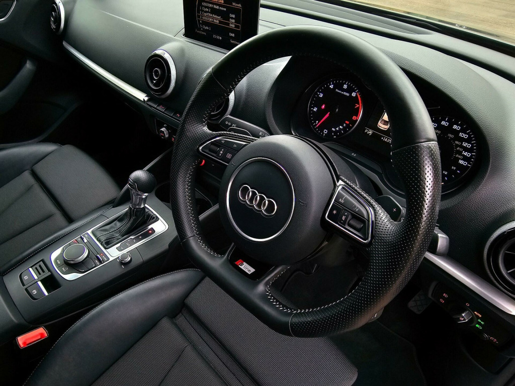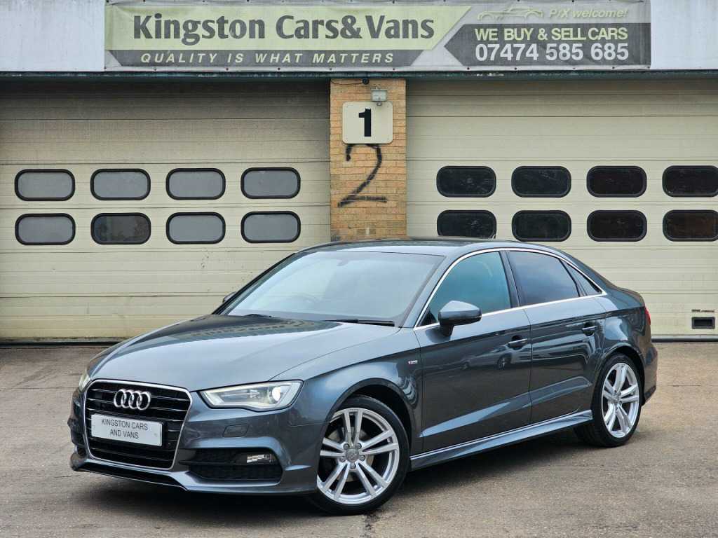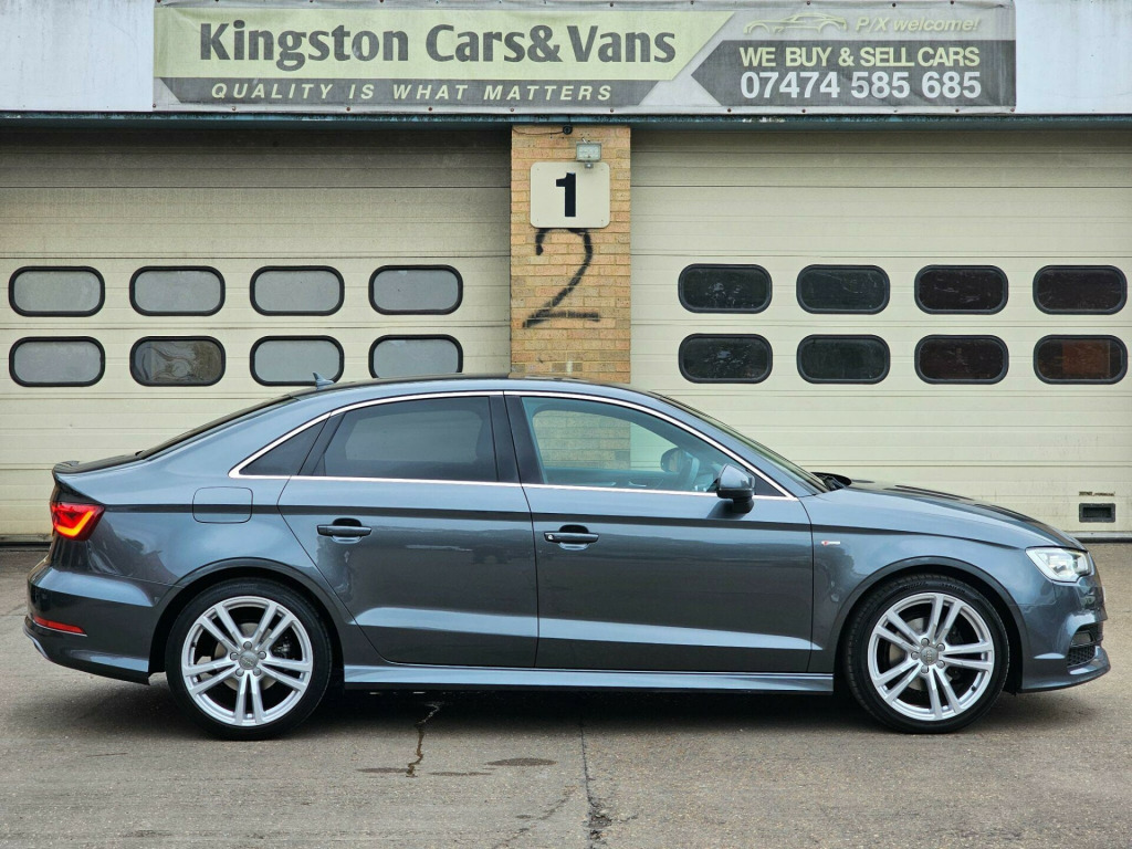 Kingston Cars and Vans present this nice clean Audi A3 1.4 TFSI CoD S line  S Tronic Euro 6 (s/s) 4dr in one of the best colour combo and Huge Spec of options ,Genuine Mileage and Excellent 1.4l petrol engine,Finance available please call for more information , Full Service History , Last Full Service done 50 miles ago ,( New Timing Belt Kit ,Oil ,Oil Filter Air Filter,Cabin Filter ,Front and Rear Disc And Pads And Automatic Gearbox Service we present invoices for the pars and labour) ,MOT until May/2026, Very stylish A3 1.4 l with wonderful colour , Fantastic Engine and Nice and Smooth 7 Speed Automatic Gearbox with Paddle shifts. Finished in stunning Daytona  Grey Metallic with Half Black Sports Leather Seats and Aluminium dashboard trim, Sport spec includes: Unmarked 18'' 5 Double  Arm Design Alloy wheels with Four Nearly  New Tires, Multifunction leather steering ,Xenon Headlights ,Front and Rear Parking Sensors, Rear Parking Camera,Audi Infotainment & Music Interface,DAB Radio, Bluetooth connectivity,Cruise Control, Sports front seats with height adjustment, Audi Navigation MMI System, Xenon Headlights,Day running Lights , Stability and traction control,Audi anti theft alarm and immobiliser,Electric windows, Automatic Air Condition ,Electrically /Adjustable/ Folding Heated door mirrors,Remote central locking,Tool kit, Spare Wheel, All documents and User handbooks, Set of 2 remote keys etc. Covered just 75k genuine miles with Service History ,The vehicle is Completely Original and Unmodified, Excellent exterior condition, very nice and clean non smoking interior, Powerful and economical 1.4l petrol engine with 150 Bhp,Vehicle can return 65 MPG on a long run and drives superbly,HPI Checked and clear with certificate ,Road tax is £35 per year and can be purchase online,3 months parts and labour Warranty by Autoguard Warranty included in the price, P/X welcome,Viewing by appointment so please call or mail us, for more stock please visit our website-www.kingstoncarsandvans.co.uk athlon cloth-pearl nappa leather - black, auto-dimming rear-view mirror with light and rain sensor package, black styling package, door mirrors - heated-electrically adjustable-folding, light and rain sensor package, privacy glass, headlights - adaptive with xenon plus, rear side airbags, speed limit display, audi parking system plus, audi sound system, cruise control, satellite navigation system - sd card based, rear-view camera, audi parking system rear with acoustic indicators, audi hill hold assist, suspension - s line, 12v power socket - centre console, 12v power socket - luggage compartment, 12v power socket - rear, 18in alloy wheels - 5-parallel spoke design partly polished, 50 station memory with dynamic station list, abs - anti-lock braking system, ami - audi music interface, asr - anti slip regulation, active bonnet, adaptive brake lights, air vent sleeves - aluminium look, airbags - driver, airbags - drivers knee, airbags - front passenger, airbags - front side, airbags - head level side for front and rear, alarm - thatcham category 1, aluminium interior elements, anti theft locking wheel bolts, audi drive select, bluetooth audio streaming, brake lights - led, bumpers - s line front, car jack, child locks - manual, chrome-plated exhaust tailpipe trim, cloth headlining in black, coat hooks - b pillar - both sides, colour drivers information system - dis, cup holders - rear x2, cup holders - x2 in centre console, dab digital radio, display screen colour - 5.8in, door mirrors - body coloured with integrated led indicators, door mirrors - electrically adjustable and heated, door sill trims, door sill trims with s line logo, dual-zone electronic climate control, ebd - electronic brakeforce distribution, edl - electronic differential lock, esp - electronic stability programme, efficiency program in the drivers information system - dis, electric windows - front and rear, electromechanical parking brake, electromechanical power steering, exhaust tailpipe - twin, fm-am radio, first aid kit, fog lights - high gloss black surrounds, front centre armrest, front fog lights, front passenger airbag deactivation switch, front sports seats, front and rear floor mats, gear knob - perforated leather, glovebox - illuminated, headlights - automatic dynamic range control, headlights - bi-xenon plus, headlights washers, heated windscreen washer jets, high mounted third brake light, high-visibility jackets x2, hydraulic brake assist, isofix child seat mounting for front passenger and rear outer seats, illuminated vanity mirrors, immobiliser, inlays - matt brushed aluminium, interior lighting, led daytime running lights, led rear indicators, led rear lights, luggage compartment - lashing points x4, luggage compartment - side net, mmi control panel, mmi radio, mp3 and wma compatible cd player, mobile telephone preparation - bluetooth interface, model and engine technology badges at rear, pollen filter, preparation for sd card-based navigation system, radiator grille - high gloss black, rear diffuser - s line design, remote central locking with 2 fold away keys, rest recommendation system, s line badges on front wings, s line design body styling, sd card reader, seat belt reminder for all seats, seats - front height adjustment, seats - split folding rear - 60-40, secondary collision brake assist, side sills - s line, smoking package, space saver spare wheel, speakers x8, speed-dependant volume control, sport suspension, steering wheel - 3-spoke leather-multifunction-flat bottomed-shift paddles, steering wheel - height and reach adjustable, steering wheel - multi-function, storage compartment under rear seat, storage compartments in the door side trims-centre console-under front passenger seat, storage net in front passenger footwell and front seat backrests, storage and luggage package, sun visors - with covered vanity mirrors, tp memo - automatically saves traffic news, tool kit, tyre pressure monitoring system, voice control 