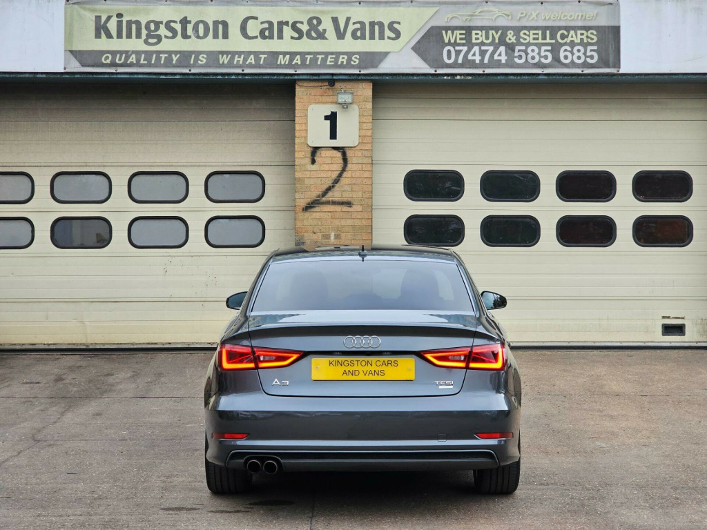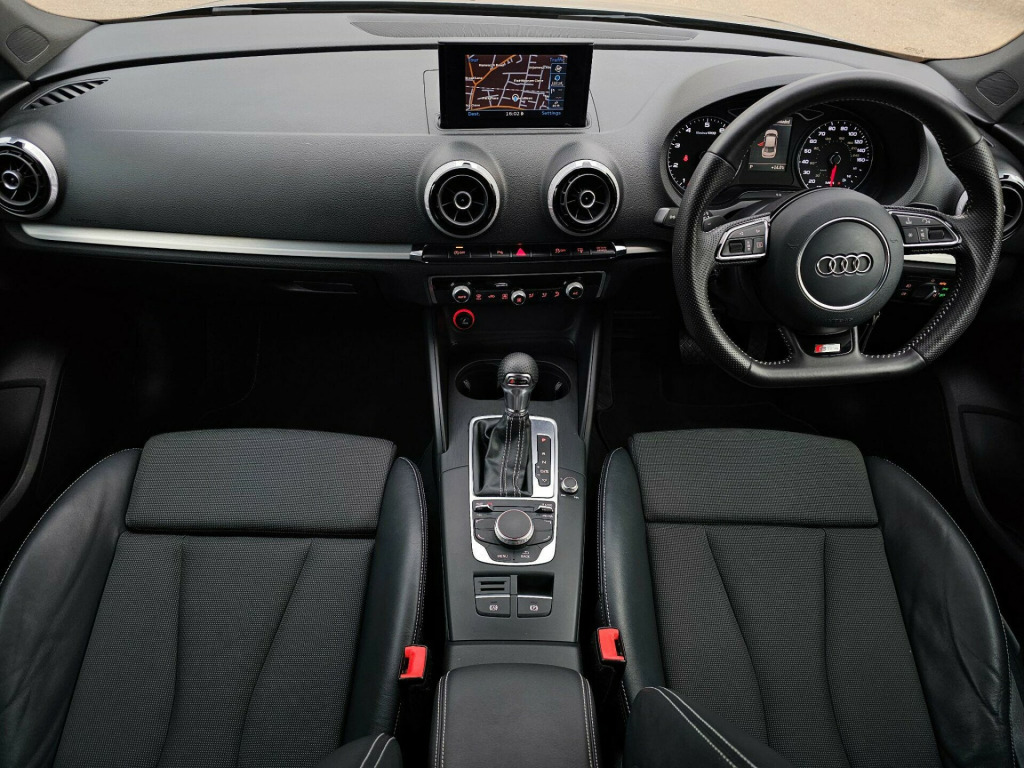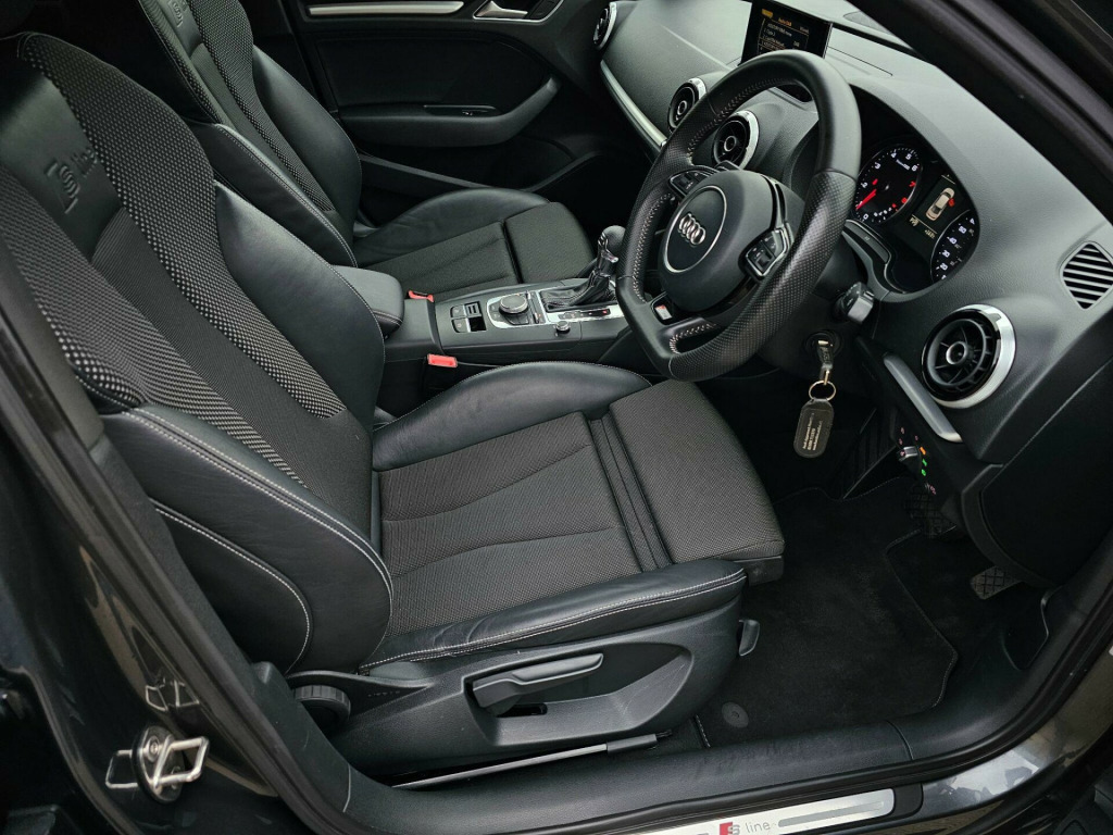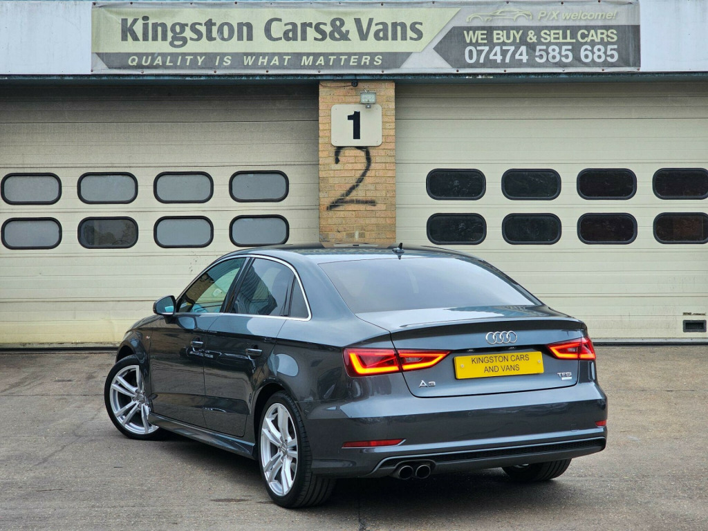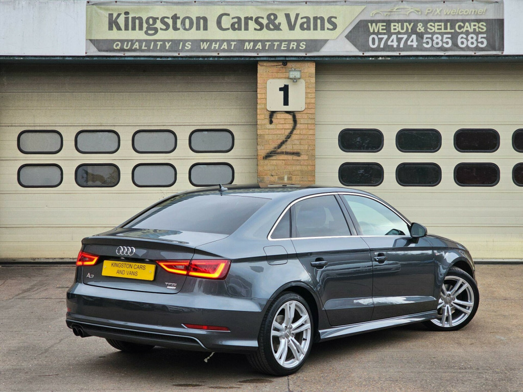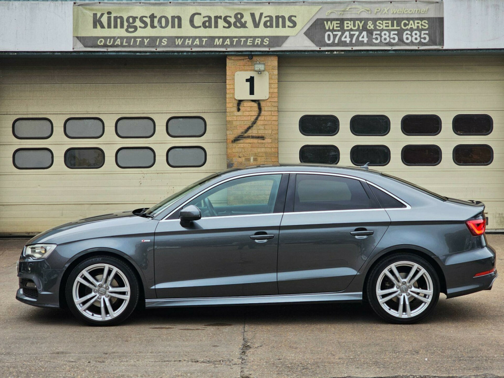 Kingston Cars and Vans present this nice clean Audi A3 1.4 TFSI CoD S line  S Tronic Euro 6 (s/s) 4dr in one of the best colour combo and Huge Spec of options ,Genuine Mileage and Excellent 1.4l petrol engine,Finance available please call for more information , Full Service History , Last Full Service done 50 miles ago ,( New Timing Belt Kit ,Oil ,Oil Filter Air Filter,Cabin Filter ,Front and Rear Disc And Pads And Automatic Gearbox Service we present invoices for the pars and labour) ,MOT until May/2026, Very stylish A3 1.4 l with wonderful colour , Fantastic Engine and Nice and Smooth 7 Speed Automatic Gearbox with Paddle shifts. Finished in stunning Daytona  Grey Metallic with Half Black Sports Leather Seats and Aluminium dashboard trim, Sport spec includes: Unmarked 18'' 5 Double  Arm Design Alloy wheels with Four Nearly  New Tires, Multifunction leather steering ,Xenon Headlights ,Front and Rear Parking Sensors, Rear Parking Camera,Audi Infotainment & Music Interface,DAB Radio, Bluetooth connectivity,Cruise Control, Sports front seats with height adjustment, Audi Navigation MMI System, Xenon Headlights,Day running Lights , Stability and traction control,Audi anti theft alarm and immobiliser,Electric windows, Automatic Air Condition ,Electrically /Adjustable/ Folding Heated door mirrors,Remote central locking,Tool kit, Spare Wheel, All documents and User handbooks, Set of 2 remote keys etc. Covered just 75k genuine miles with Service History ,The vehicle is Completely Original and Unmodified, Excellent exterior condition, very nice and clean non smoking interior, Powerful and economical 1.4l petrol engine with 150 Bhp,Vehicle can return 65 MPG on a long run and drives superbly,HPI Checked and clear with certificate ,Road tax is £35 per year and can be purchase online,3 months parts and labour Warranty by Autoguard Warranty included in the price, P/X welcome,Viewing by appointment so please call or mail us, for more stock please visit our website-www.kingstoncarsandvans.co.uk athlon cloth-pearl nappa leather - black, auto-dimming rear-view mirror with light and rain sensor package, black styling package, door mirrors - heated-electrically adjustable-folding, light and rain sensor package, privacy glass, headlights - adaptive with xenon plus, rear side airbags, speed limit display, audi parking system plus, audi sound system, cruise control, satellite navigation system - sd card based, rear-view camera, audi parking system rear with acoustic indicators, audi hill hold assist, suspension - s line, 12v power socket - centre console, 12v power socket - luggage compartment, 12v power socket - rear, 18in alloy wheels - 5-parallel spoke design partly polished, 50 station memory with dynamic station list, abs - anti-lock braking system, ami - audi music interface, asr - anti slip regulation, active bonnet, adaptive brake lights, air vent sleeves - aluminium look, airbags - driver, airbags - drivers knee, airbags - front passenger, airbags - front side, airbags - head level side for front and rear, alarm - thatcham category 1, aluminium interior elements, anti theft locking wheel bolts, audi drive select, bluetooth audio streaming, brake lights - led, bumpers - s line front, car jack, child locks - manual, chrome-plated exhaust tailpipe trim, cloth headlining in black, coat hooks - b pillar - both sides, colour drivers information system - dis, cup holders - rear x2, cup holders - x2 in centre console, dab digital radio, display screen colour - 5.8in, door mirrors - body coloured with integrated led indicators, door mirrors - electrically adjustable and heated, door sill trims, door sill trims with s line logo, dual-zone electronic climate control, ebd - electronic brakeforce distribution, edl - electronic differential lock, esp - electronic stability programme, efficiency program in the drivers information system - dis, electric windows - front and rear, electromechanical parking brake, electromechanical power steering, exhaust tailpipe - twin, fm-am radio, first aid kit, fog lights - high gloss black surrounds, front centre armrest, front fog lights, front passenger airbag deactivation switch, front sports seats, front and rear floor mats, gear knob - perforated leather, glovebox - illuminated, headlights - automatic dynamic range control, headlights - bi-xenon plus, headlights washers, heated windscreen washer jets, high mounted third brake light, high-visibility jackets x2, hydraulic brake assist, isofix child seat mounting for front passenger and rear outer seats, illuminated vanity mirrors, immobiliser, inlays - matt brushed aluminium, interior lighting, led daytime running lights, led rear indicators, led rear lights, luggage compartment - lashing points x4, luggage compartment - side net, mmi control panel, mmi radio, mp3 and wma compatible cd player, mobile telephone preparation - bluetooth interface, model and engine technology badges at rear, pollen filter, preparation for sd card-based navigation system, radiator grille - high gloss black, rear diffuser - s line design, remote central locking with 2 fold away keys, rest recommendation system, s line badges on front wings, s line design body styling, sd card reader, seat belt reminder for all seats, seats - front height adjustment, seats - split folding rear - 60-40, secondary collision brake assist, side sills - s line, smoking package, space saver spare wheel, speakers x8, speed-dependant volume control, sport suspension, steering wheel - 3-spoke leather-multifunction-flat bottomed-shift paddles, steering wheel - height and reach adjustable, steering wheel - multi-function, storage compartment under rear seat, storage compartments in the door side trims-centre console-under front passenger seat, storage net in front passenger footwell and front seat backrests, storage and luggage package, sun visors - with covered vanity mirrors, tp memo - automatically saves traffic news, tool kit, tyre pressure monitoring system, voice control 