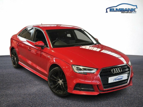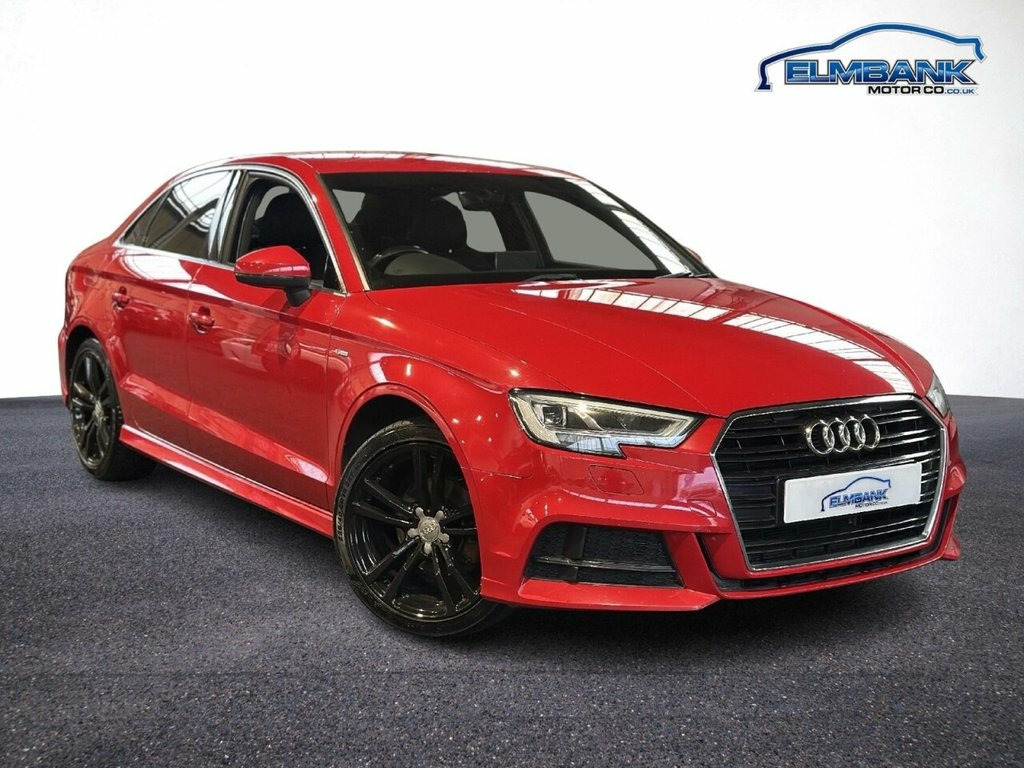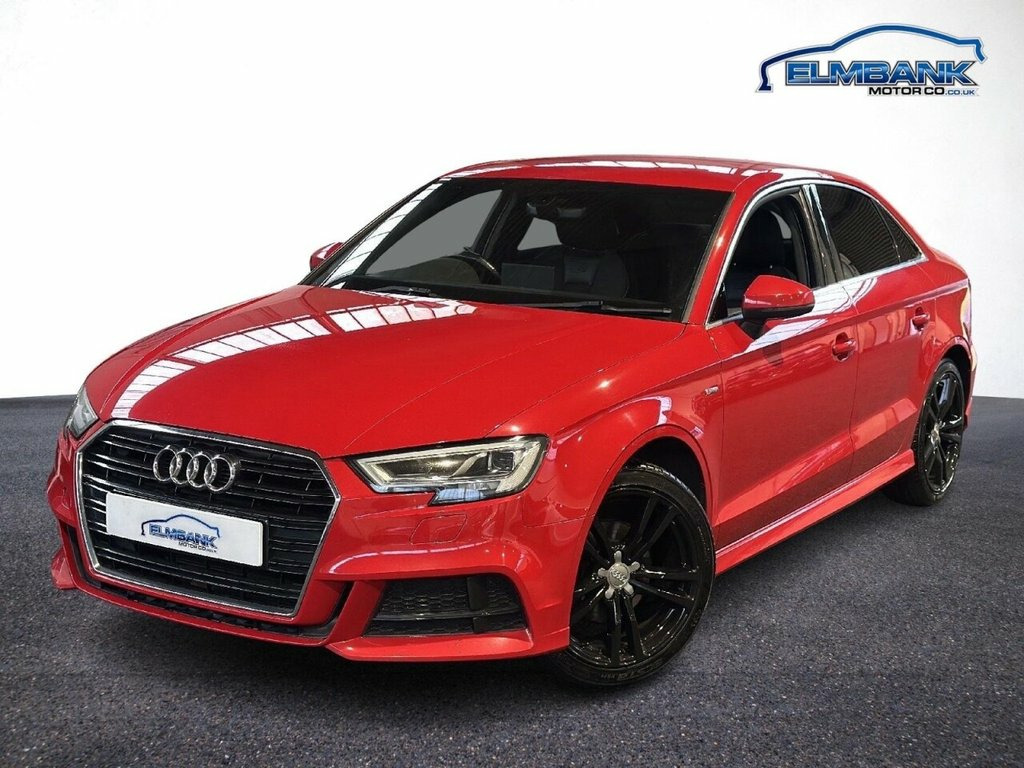 2016 66 AUDI A3 1.4 TFSI COD S LINE SALOON 150 PS EURO 6 - ULEZ COMPLIANT. WHAT A LOVELY CAR IN STUNNING TANGO RED METALLIC WITH THE USUAL S LINE REFINEMENTS, A 5 STAMP SERVICE HISTORY AND 2 KEYS. SPECIFICATIONS INCLUDE PART LEATHER INTERIOR, SATELLITE NAVIGATION, DIGITAL CLIMATE CONTROL, BLUETOOTH, DAB RADIO, AUTO WIPERS, AUTO LIGHTS, CRUISE CONTROL, FRESHLY REFURBISHED ALLOY WHEELS AND REAR PRIVACY GLASS. SUPPLIED WITH 12 MONTHS MOT INCLUDING PRE DELIVERY SERVICE AND INSPECTION. WE CAN OFFER BESPOKE FINANCE PACKAGES AND PART EXCHANGE FACILITIES. FOR MORE INFORMATION PLEASE CONTACT ELMBANK MOTOR COMPANY IRVINE. Privacy Glass, Tango Red, 18in Alloy Wheels - 5-Parallel Spoke Des, 2 x USB Charging Ports and 1 x AUX-IN, 6-Airbag System with Knee Airbag for Dri, 8 Passive Speakers, Aluminium Interior Elements, Anti Theft Locking Wheel Bolts, Anti-Theft Alarm, Audi Connect Infotainment Services - 3 M, Audi Drive Select, Audi Smartphone Interface, Bluetooth Interface, Body Coloured Door Mirrors, CD Drive, Child Locks - Manual, Chrome-Plated Exhaust Tailpipe Trim, Cloth Headlining in Black, Colour Drivers Information System - DIS, Cruise Control, DAB Digital Radio, Door Mirrors - Electrically Adjustable a, Dual-Zone Electronic Climate Control, ESC - Electronic Stabilisation Control i, Electric Windows - Fr