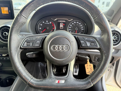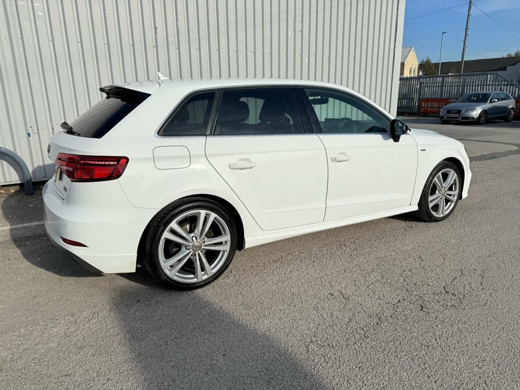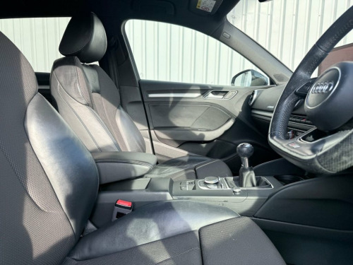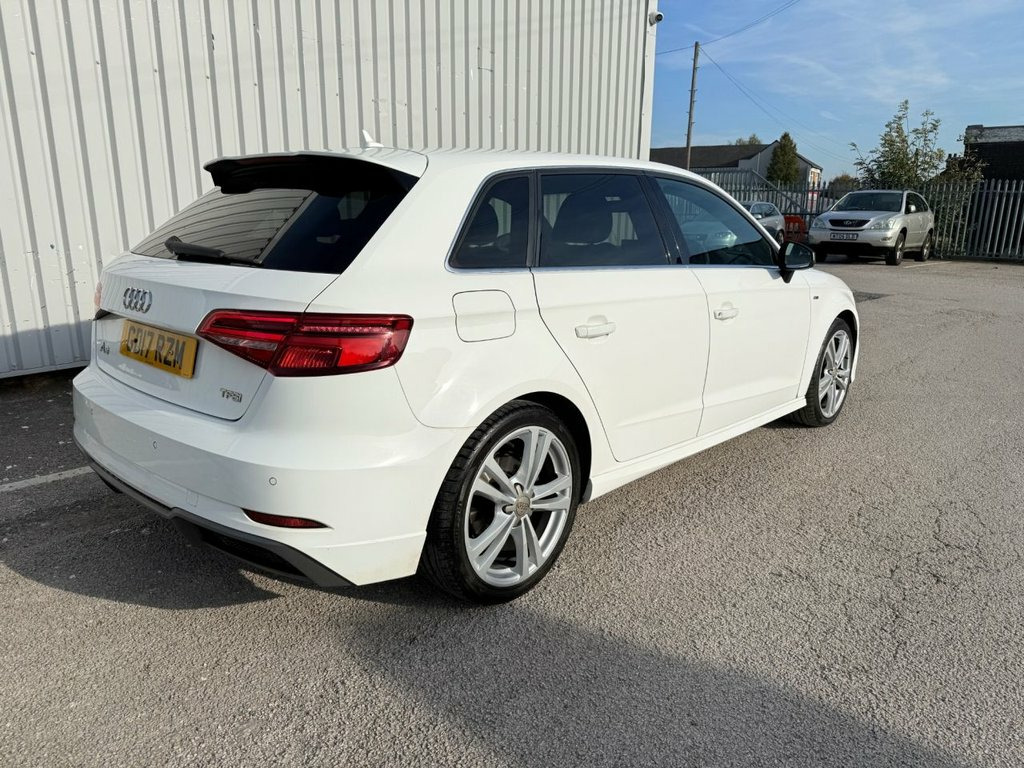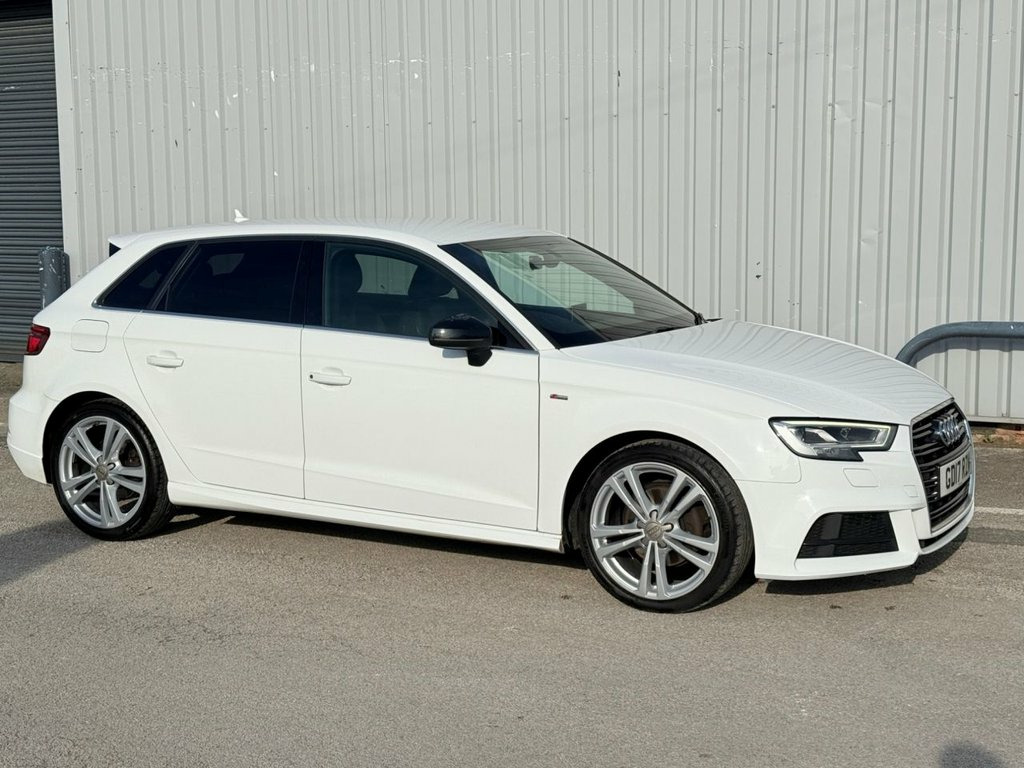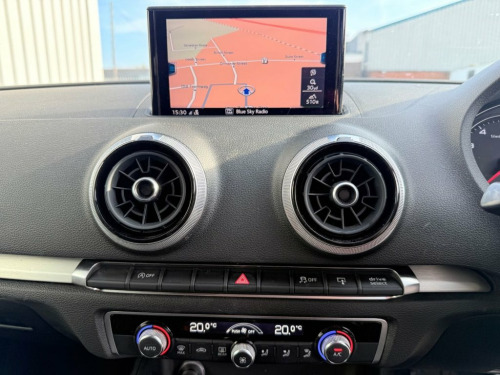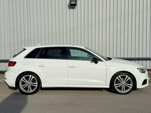 AUDI A3 1.4 TFSI CoD S line Sportback with Half Black Leather / Cloth Seats with Rock Grey Stitching S-line Sport Seats, Full Colour Satellite Navigation, Bluetooth Phone Connectivity with Music Streaming. DAB Digital Radio, Multi - Function Flat Bottom Steering Wheel with Cruise Control, Auto Dimming Rear View Mirror. To the Exterior there is Heated Electric Door Mirrors, S-line Styling, Acoustic Colour Coded Parking Sensors and sits on 18" Silver Double Spoke Alloy Wheels. Complemented with Great Service History - Last Service May 2025, 12 Month MOT, 2 Keys and 3 Month Warranty. ***** We have over 650 Five Star Reviews on Auto Trader ***** and Highly Rated Award Winner for the 6th Year Running for Customer Service. Call Adrian on 07831 695 637 Sequence Cloth-Leather - S Embossed Spor, Ibis White, 18in Alloy Wheels - 10-Spoke Design Matt, 18in Alloy Wheels - 5-Parallel Spoke Des, 2 x USB Charging Ports and 1 x AUX-IN, 6-Airbag System with Knee Airbag for Dri, 8 Passive Speakers, Aluminium Interior Elements, Aluminium Window Trims, Anti Theft Locking Wheel Bolts, Anti-Theft Alarm, Audi Connect Infotainment Services - 3 M, Audi Drive Select, Audi Smartphone Interface, Bluetooth Interface, Body Coloured Door Mirrors, CD Drive, Chrome-Plated Exhaust Tailpipe Trim, Cloth Headlining in Black, Colour Drivers Information System - DIS, Cruise Control, DAB Digital Radio, Door Mirrors - Electrically Adjustable a, Dual-Zone Electronic Climate