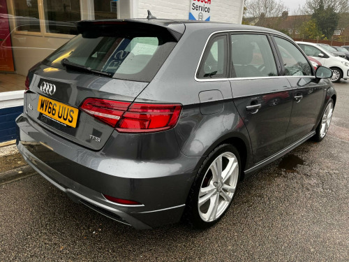 This 2016 Audi A3 TFSI S line boasts exceptionally low mileage for its age, having covered just 49,000 miles. This well maintained example comes with a clear vehicle history check and has had only two owners. It features a 1.4 litre petrol engine, meeting Euro 6 emissions standards, and is supplied with a 6 month warranty and a full 12 months MOT. The S line trim enhances its sporty appeal, complemented by S Line Sports Suspension for a dynamic driving experience. Notable features include LED headlights and rear lights with dynamic rear indicators, a Bluetooth interface for seamless connectivity, and dual zone electronic climate control to ensure comfort for all occupants. The light and rain sensor automatically adjusts headlights and wipers, adding to the convenience.This Audi A3 offers impressive performance with a 0-62mph acceleration time of just 8.2 seconds, while also delivering excellent fuel economy of 59 mpg, making it an economical choice. Its low CO2 emissions further contribute to its cost effectiveness. The generous boot space provides ample practicality for everyday needs and longer journeys. These highlights demonstrate how this particular Audi A3 stands out from similar vehicles, offering a compelling combination of performance, efficiency, and comfort.RESERVE ONLINE TODAY + ULEZ COMPLIANT +0% DEPOSIT FINANCE AVAILABLE + PLEASE MAKE YOUR APPOINTMENT TO VIEW TODAY + Our family owned business was founded in 1992 and our aim is to offer a friendly and efficient service and to make our customer's buying experience as easy and enjoyable as possible. Our experienced staff will offer advice, if required, to help ensure our customers find the most suitable car to match their motoring needs. Part Exchange welcome. Although every effort is made to ensure the accuracy of these details please contact the dealer to verify any particular details prior to making a purchase. + All our cars are HPi checked to offer our customers peace of mind and therefore ensuring there is no outstanding finance or insurance write offs listed against them+ *Finance subject. 18in Alloy Wheels - 5-Parallel Spoke Design with Diamond Cut Finish, 2 x USB Charging Ports and 1 x AUX-IN, 6-Airbag System with Knee Airbag for Driver, 8 Passive Speakers, Aluminium Interior Elements, Aluminium Window Trims, Anti Theft Locking Wheel Bolts, Anti-Theft Alarm, Audi Connect Infotainment Services - 3 Month Trial, Audi Drive Select, Audi Smartphone Interface, Bluetooth Interface, Body Coloured Door Mirrors, CD Drive, Chrome-Plated Exhaust Tailpipe Trim, Cloth Headlining in Black, Colour Drivers Information System - DIS, Cruise Control, DAB Digital Radio, Door Mirrors - Electrically Adjustable and Heated, Dual-Zone Electronic Climate Control, ESC - Electronic Stabilisation Control inc ABS - ASR and EDL, Electric Windows - Front and Rear, Electromechanical Parking Brake, Electromechanical Power Steering, First Aid Kit, Front Centre Armrest, Front and Rear Floor Mats, ISOFIX Child Seat Mounting and Top Tether for Front Passenger and Outer Rear Seats, Illuminated Door Sill Trims with S Logo, Immobiliser, Inlays - Matt Brushed Aluminium, LED Headlights with LED Rear Lights and Dynamic Rear Indicators, LED Interior Light Package, Light and Rain Sensor, Luggage Compartment - Lashing Points x4, MMI Navigation - SD Card Based, MMI Radio Plus with 7in Electrically Retractable Colour MMI Screen, Manual Front Seat Adjustment, Non-Smoking Package, Pedals in Stainless Steel, Pollen Filter, Remote Central Locking with 2 Fold Away Keys, S Line Design Body Styling, S Line Roof Spoiler, Seat Belt Monitoring, Seats - Split Folding Rear - 60-40, Space Saver Spare Wheel, Sport Suspension, Steering Wheel - 3-Spoke Leather-Multifunction-Flat Bottomed, Storage Compartments in the Door Side Trims-Centre Console-Under Drivers Seat, Storage Package, Tool Kit and Car Jack, Tyre Pressure Monitoring System, Voice Control, Warning Triangle, S Line Sports Suspension. Part service history